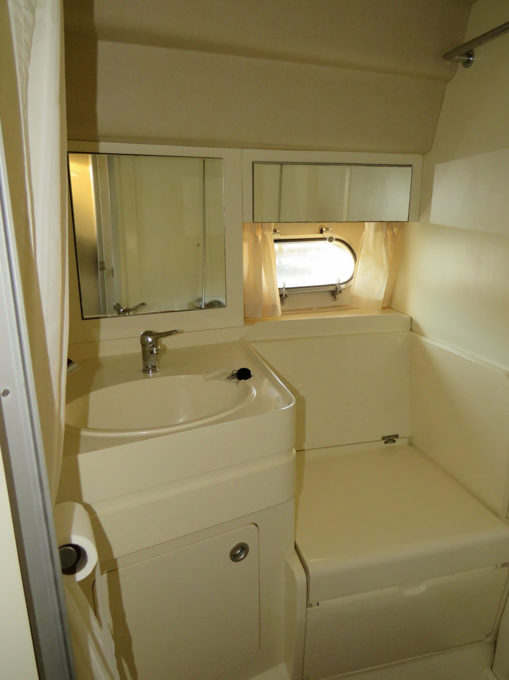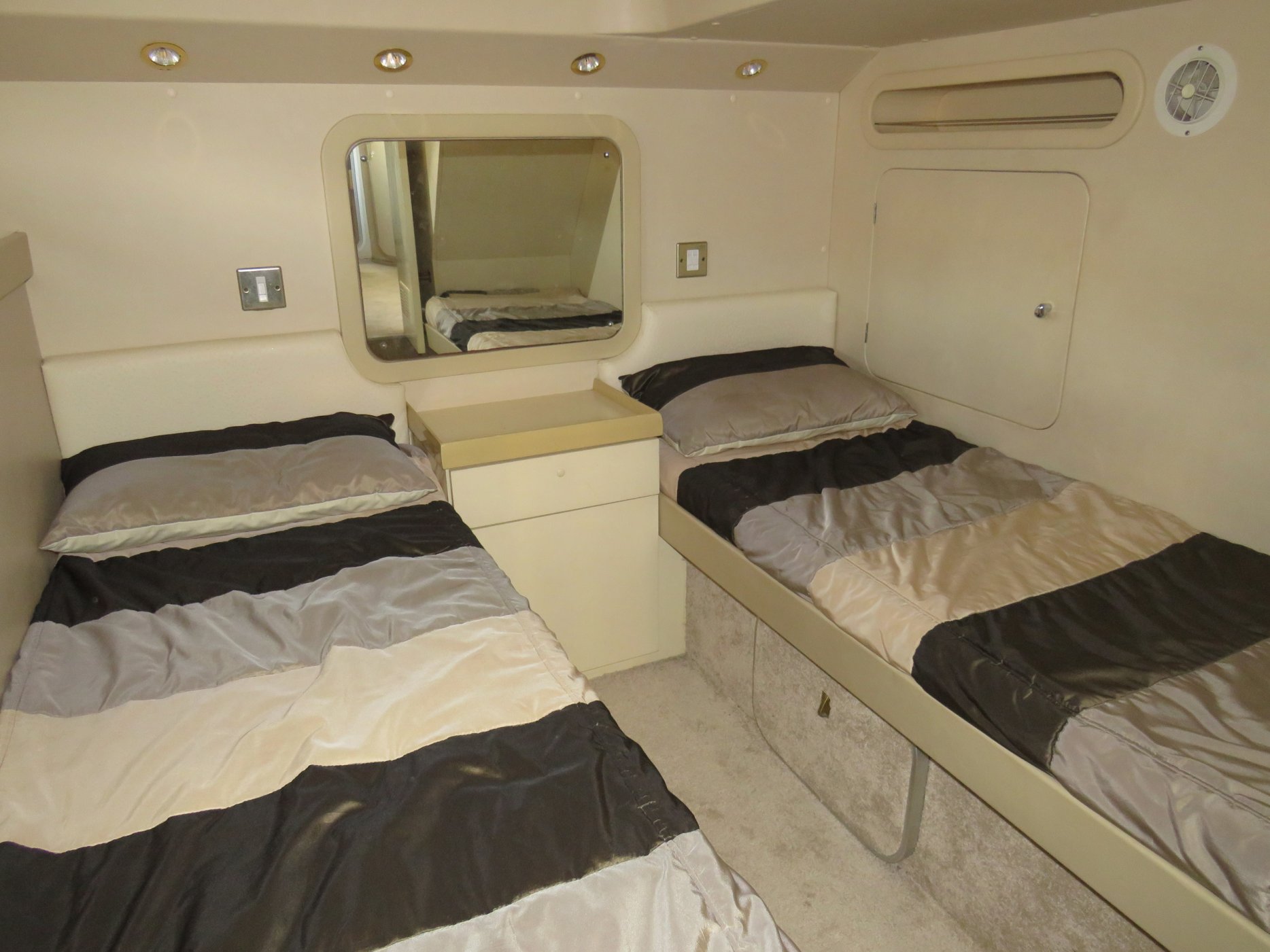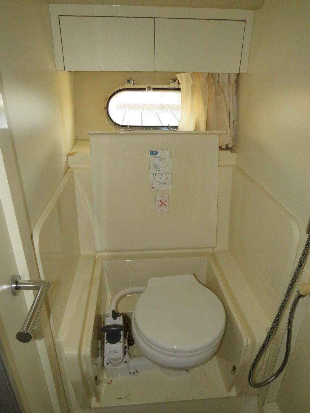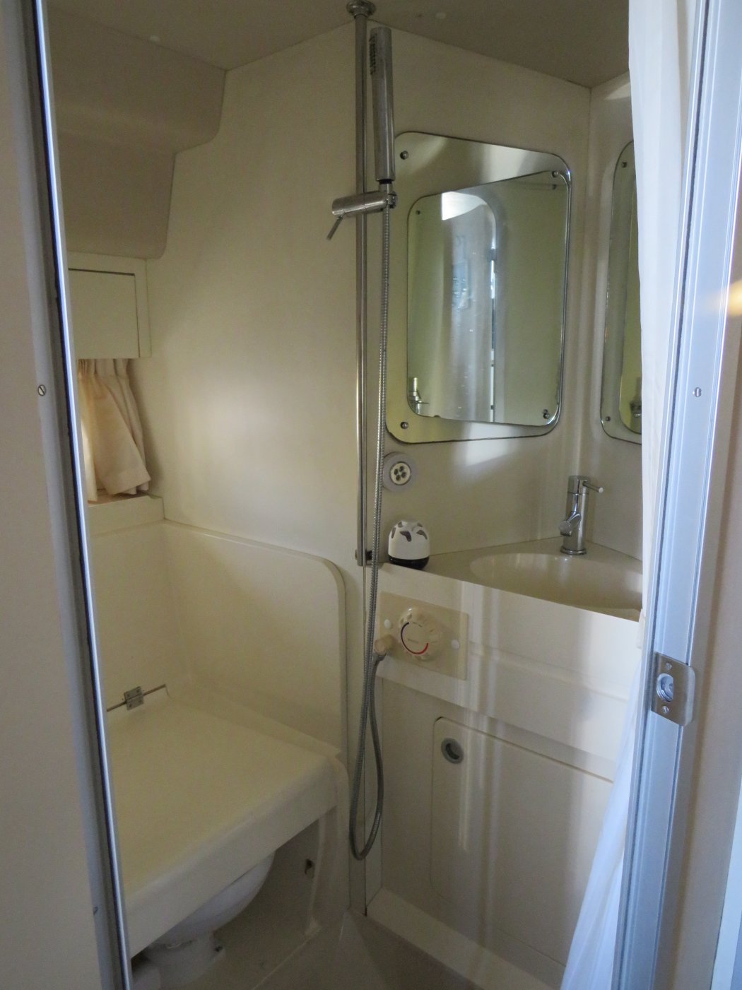 Voorhut met dubbel bed , salon, zijhut met 2x eenpersoonsbed, open kuip, 2x toiletruimte