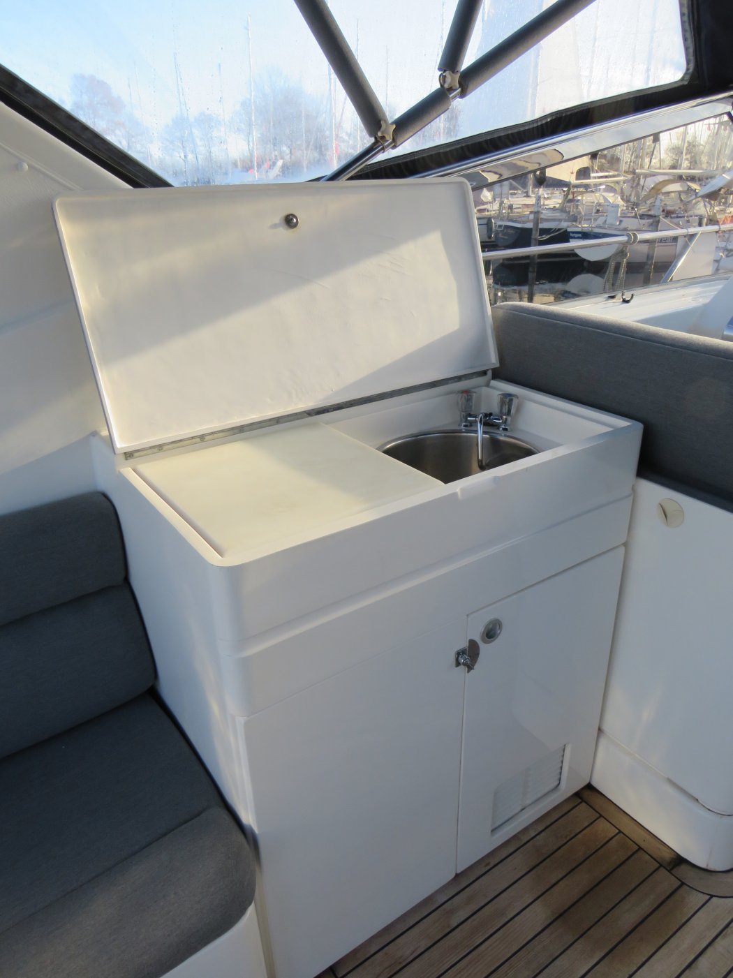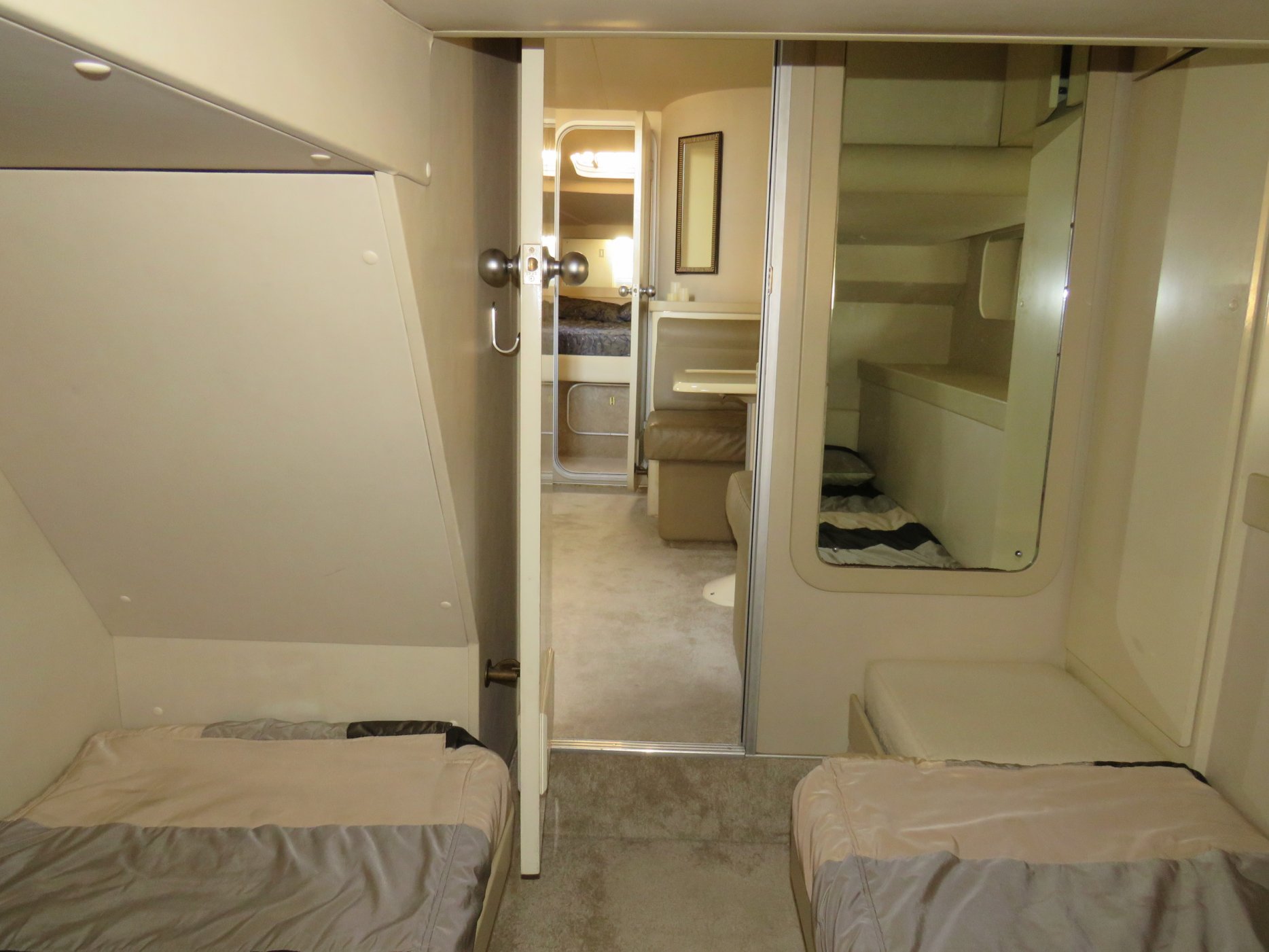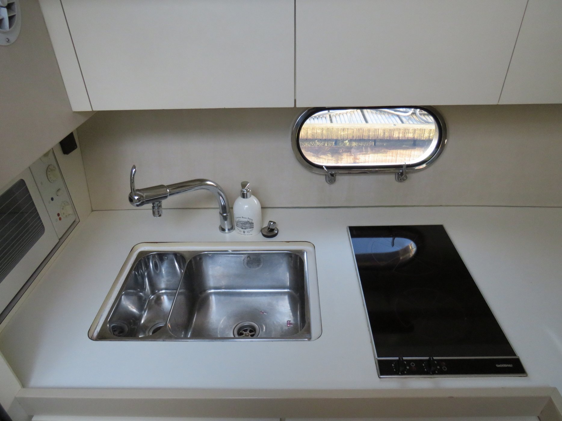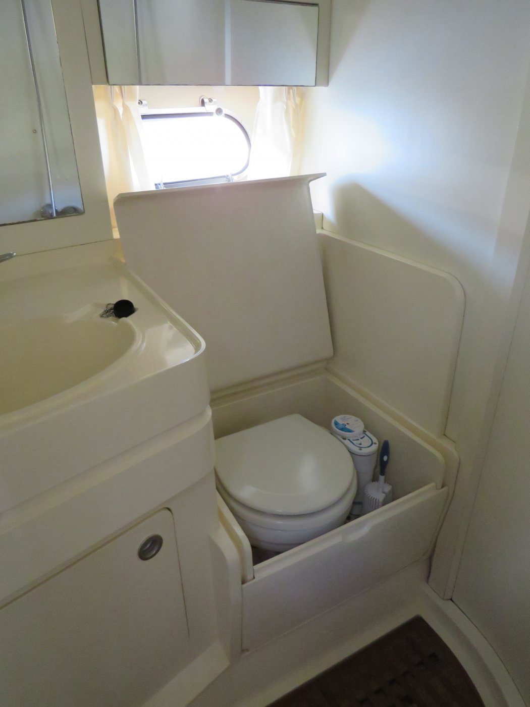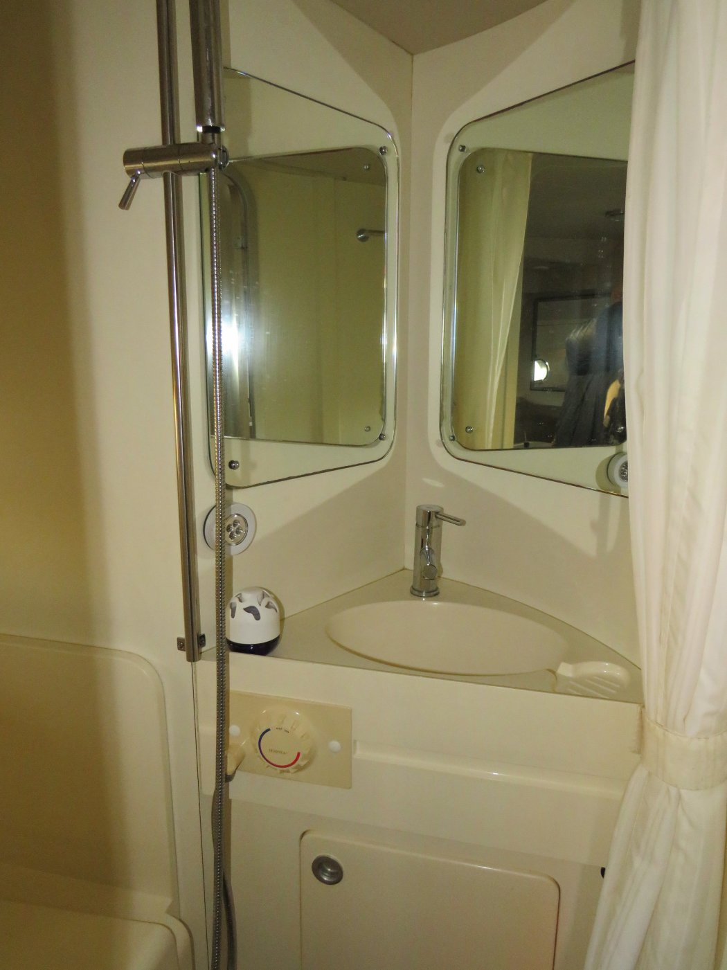 Voorhut met dubbel bed , salon, zijhut met 2x eenpersoonsbed, open kuip, 2x toiletruimte