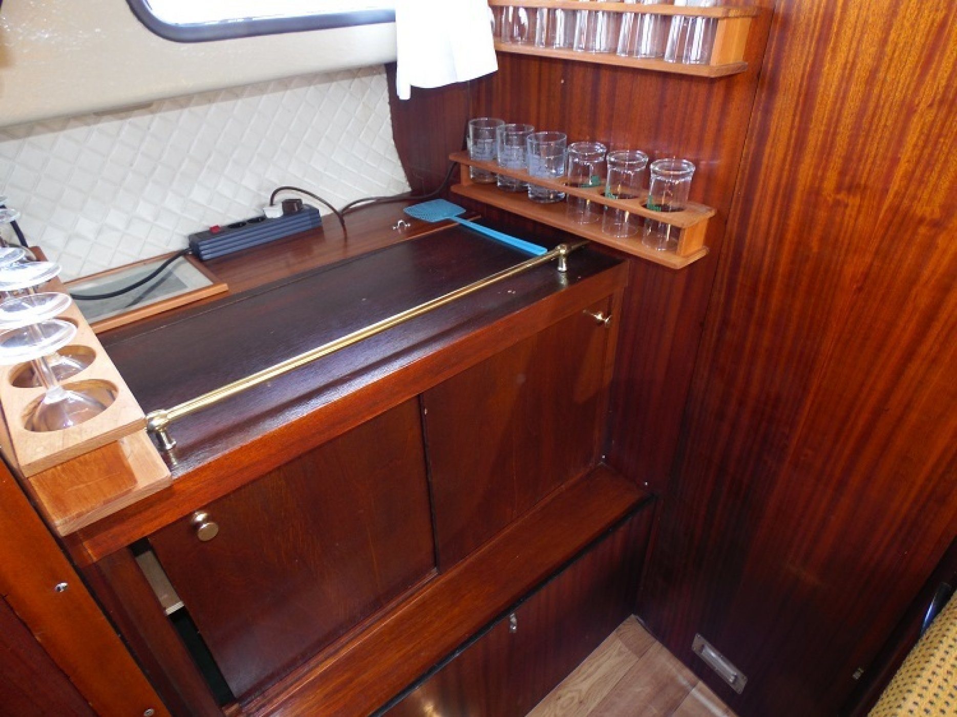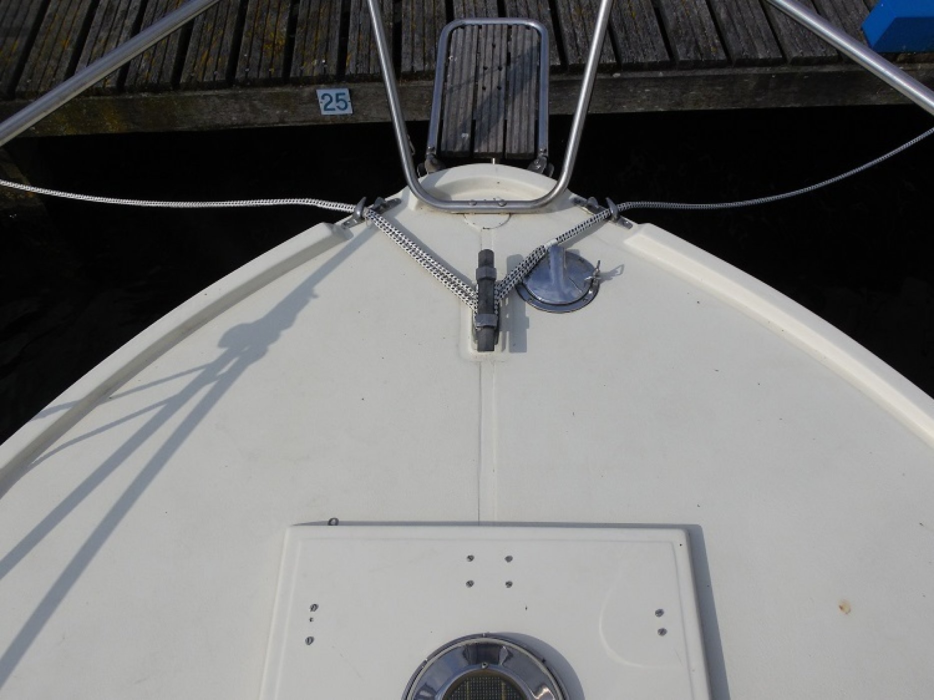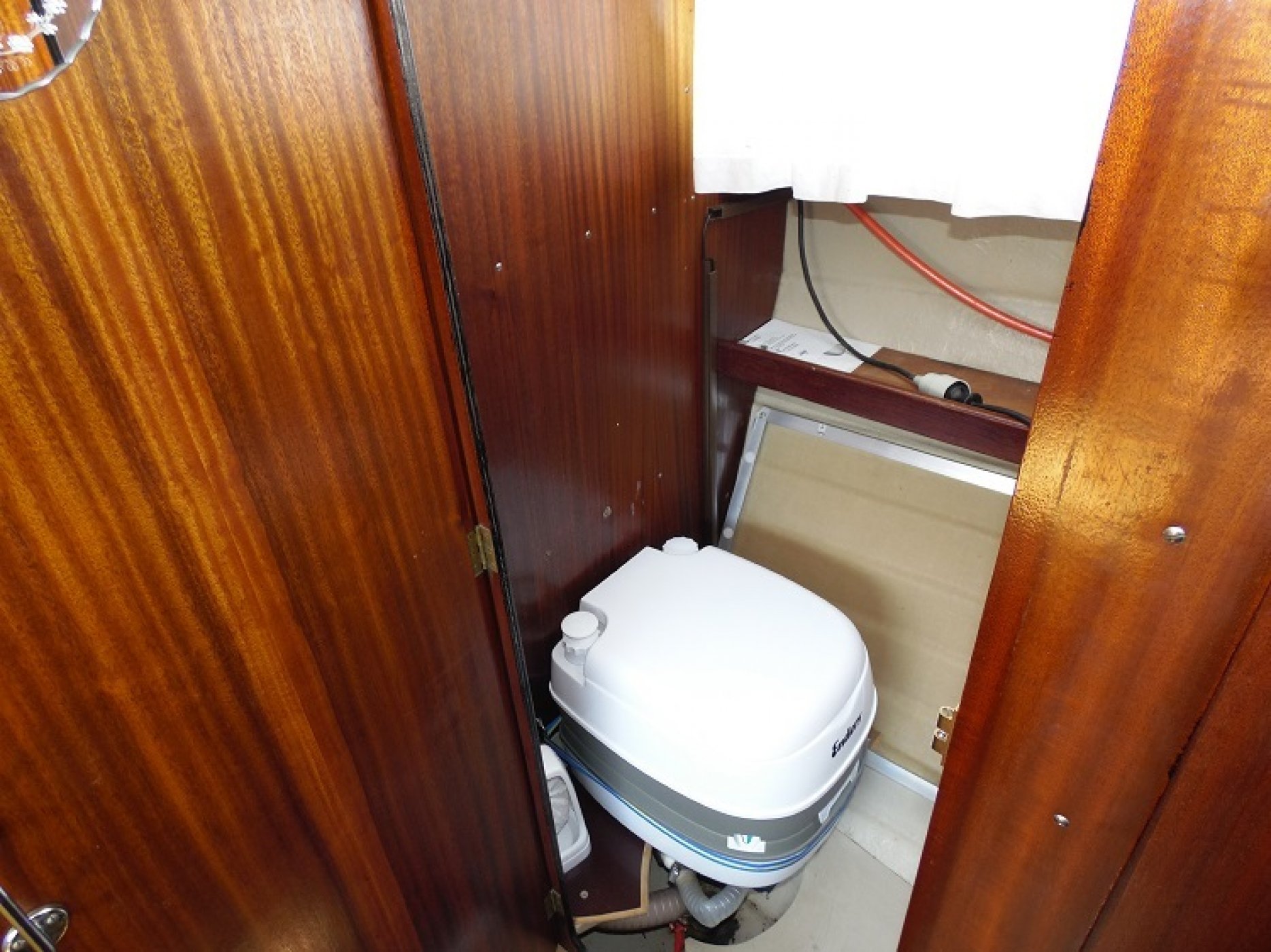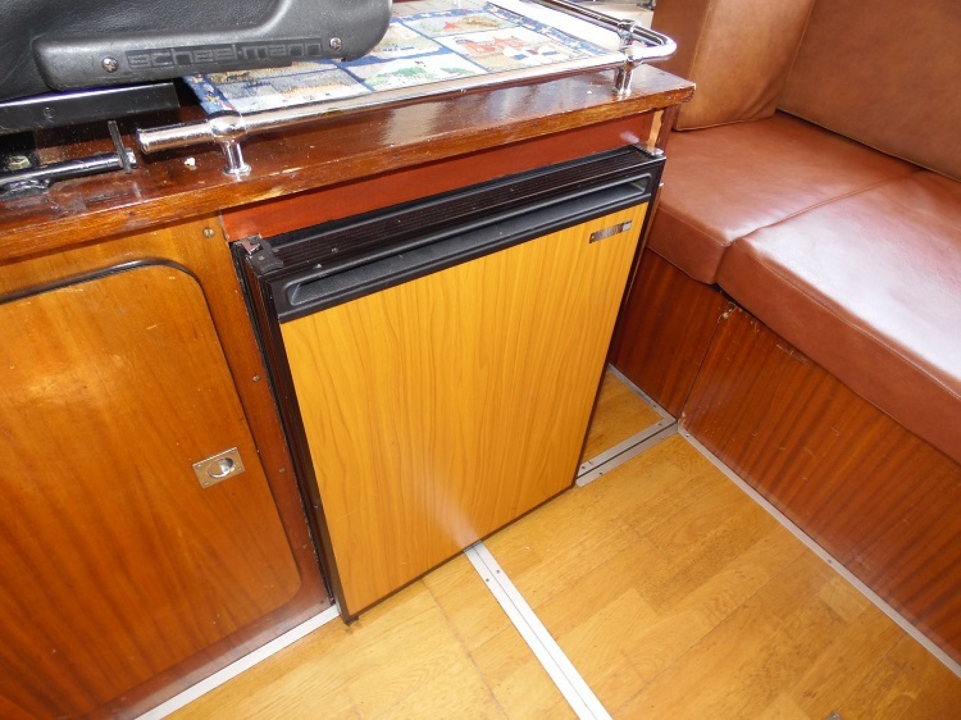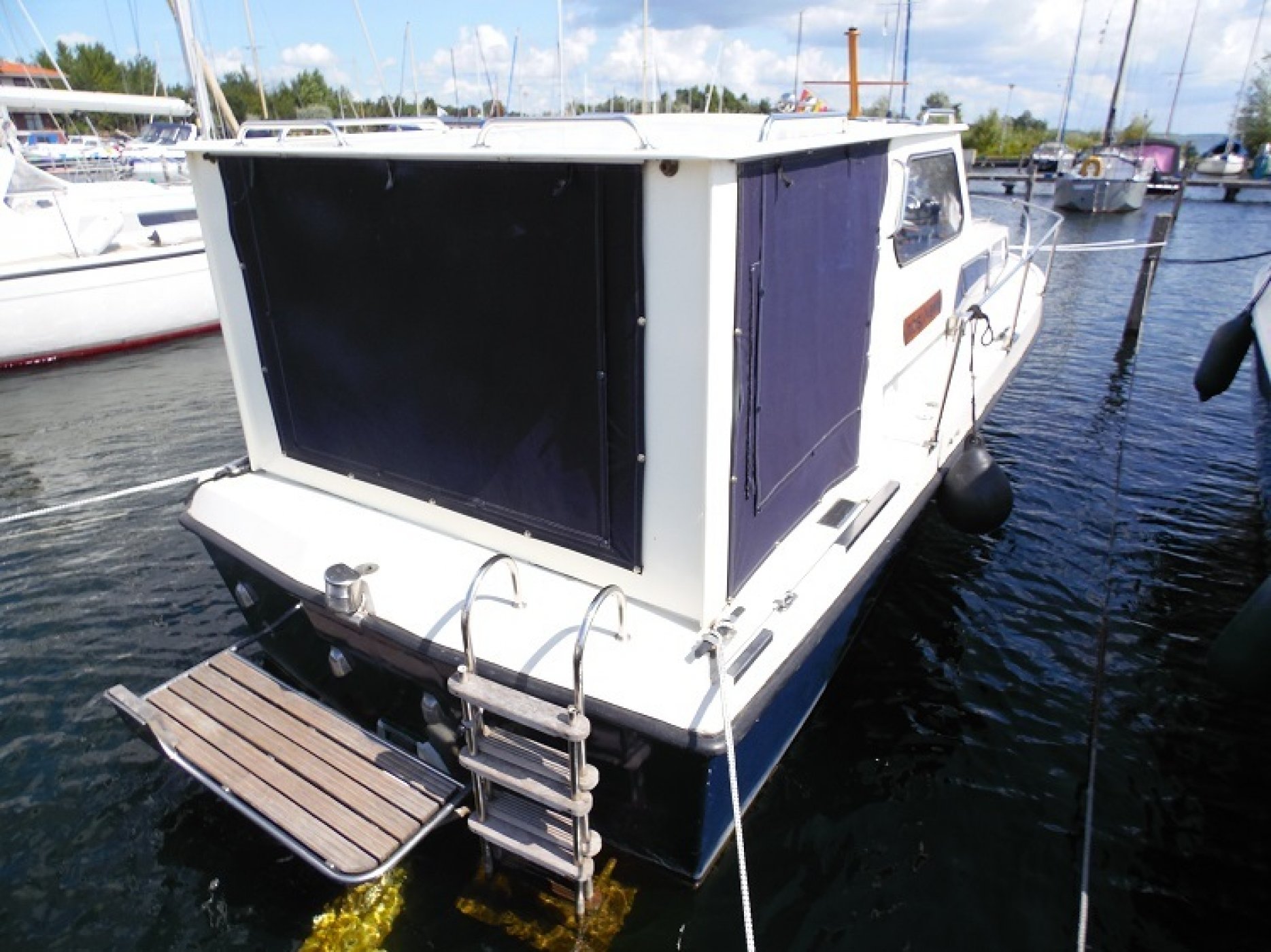 Achterkuip met keuken en sturen, salon met dinette en toilet ruimte, voorpiek afsluitbaar.