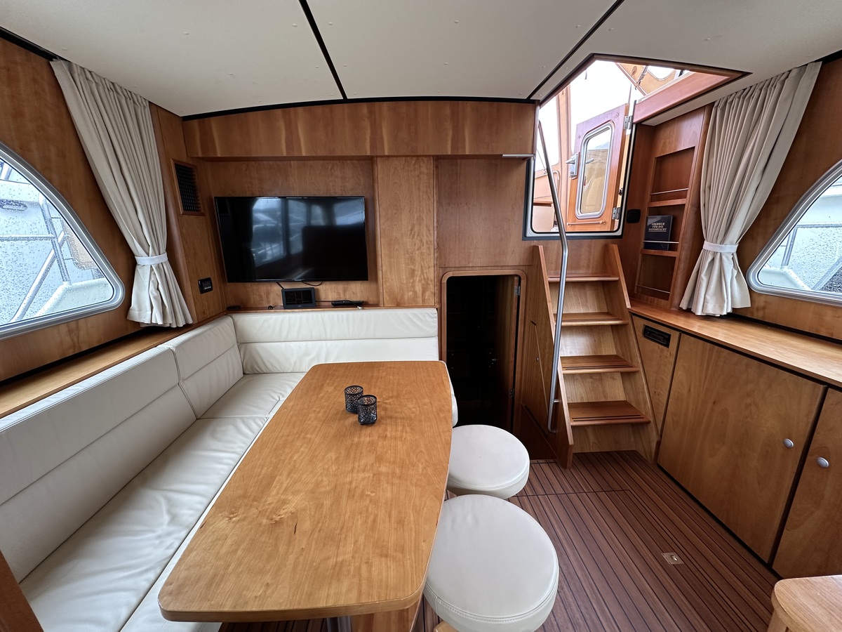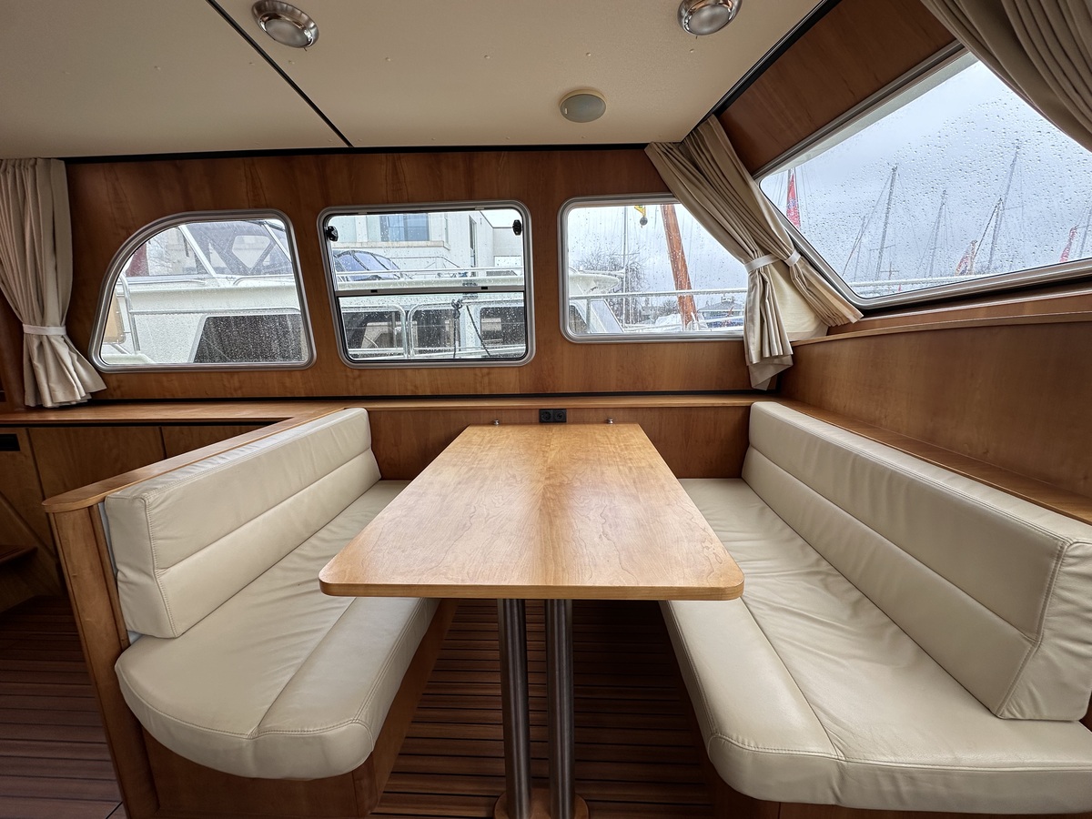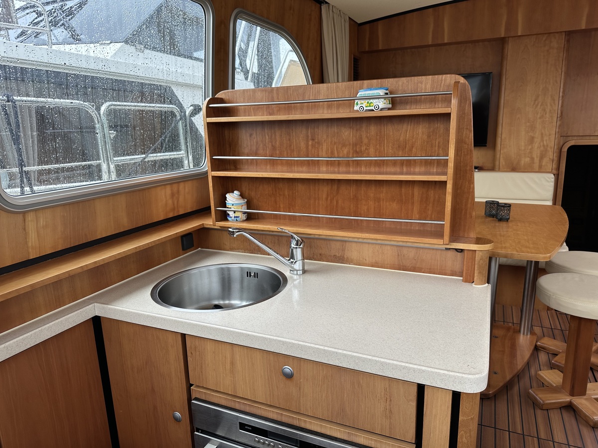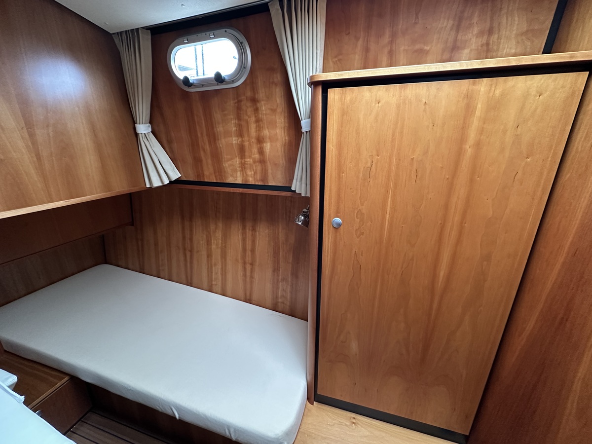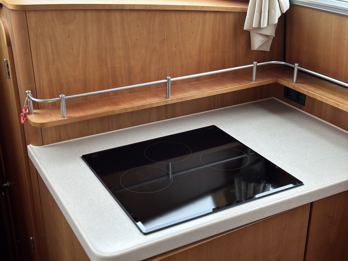 Dometic Crusair . in de salon en eigenaars hut Kwh Naast de vele opbergruimte is in de salon een uitschuifbare barkast met selectie Linssen glazen