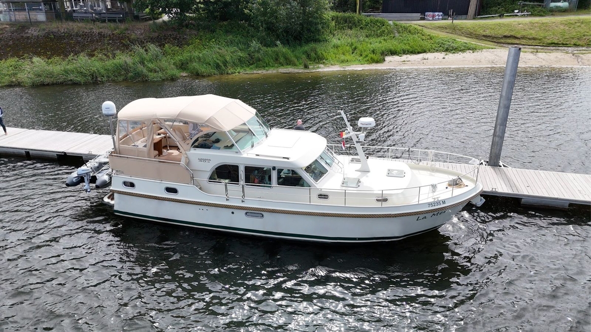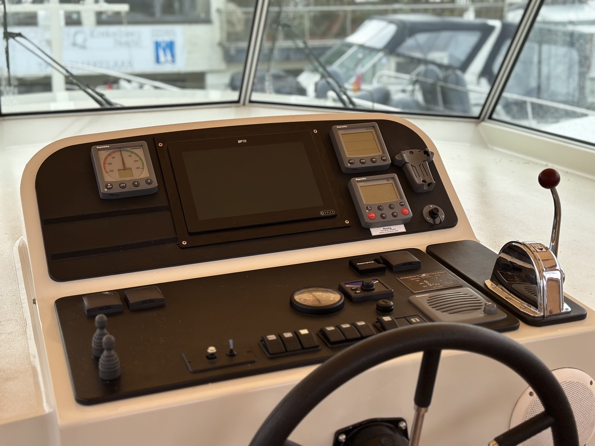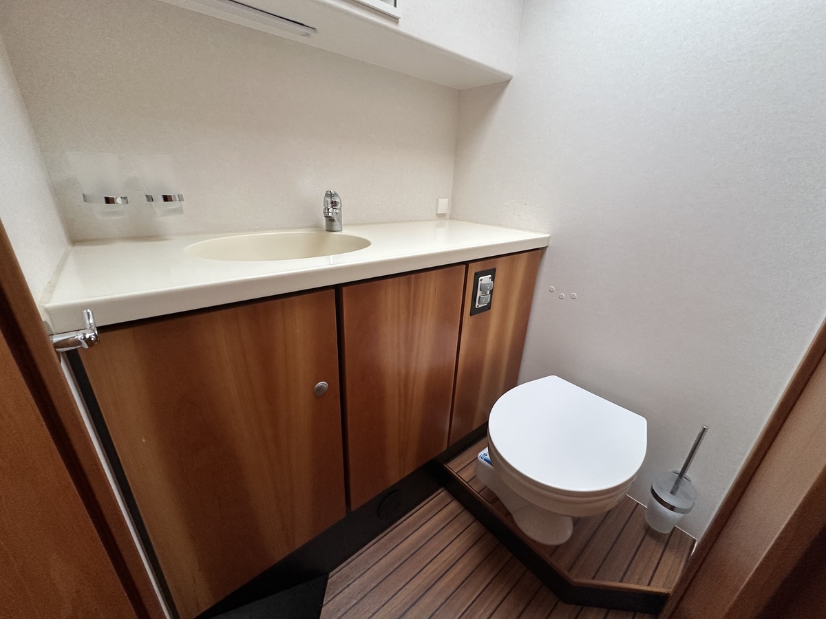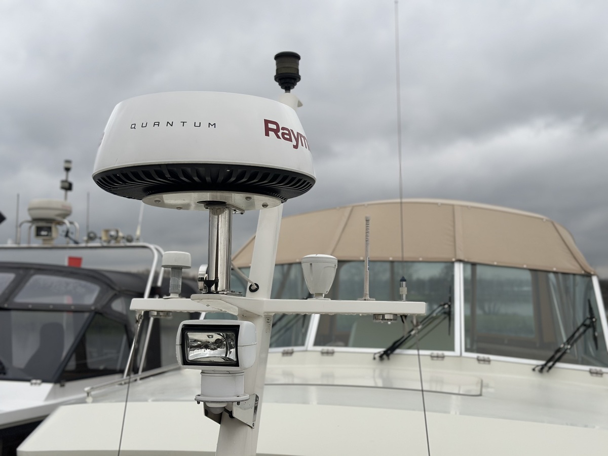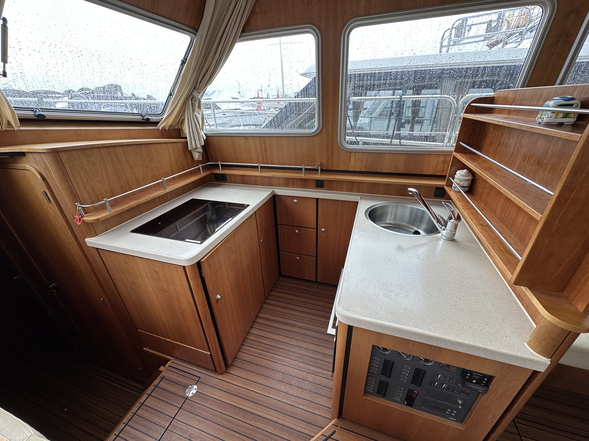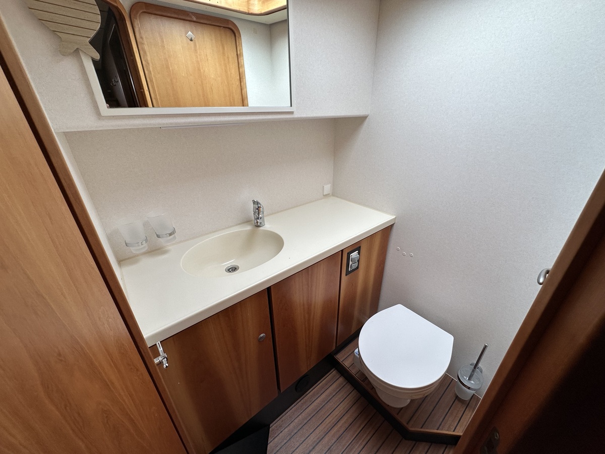 Dometic Crusair . in de salon en eigenaars hut Kwh Naast de vele opbergruimte is in de salon een uitschuifbare barkast met selectie Linssen glazen