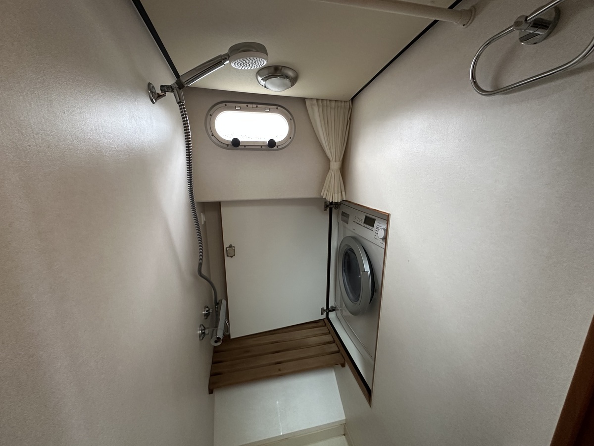 Wasmachine met droger eenvoudig te bereiken via de douche