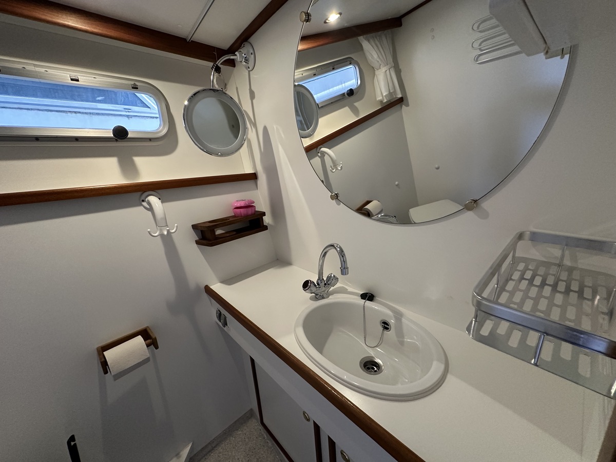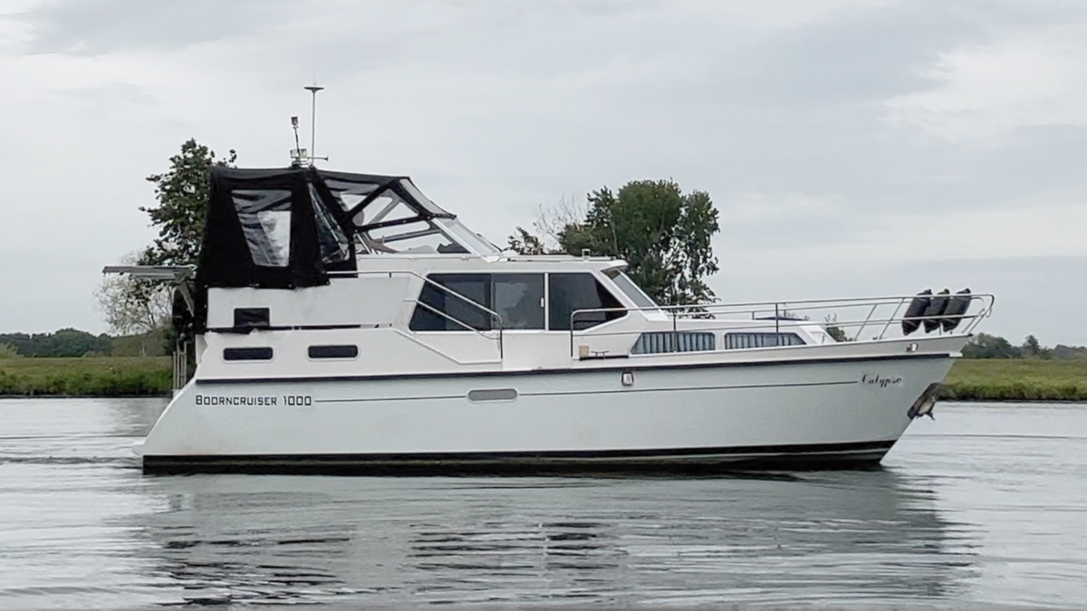Boarncruiser 1000 wordt verkocht door de tweede eigenaar, Boegschroef, hete lucht verwarming, douche, elektrisch toilet en royale rondzit