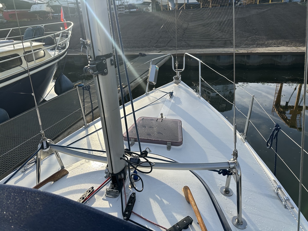 met traveler in kuip, nieuwe grootzeilhoes