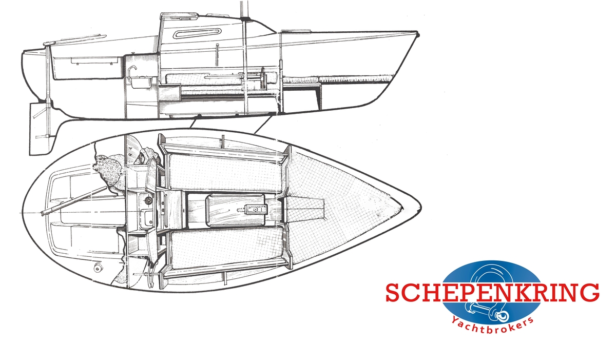 Zeer nette LM 22 voorzien van nieuwe bekleding binnen, motor met schroefas, wasbak en marifoon.