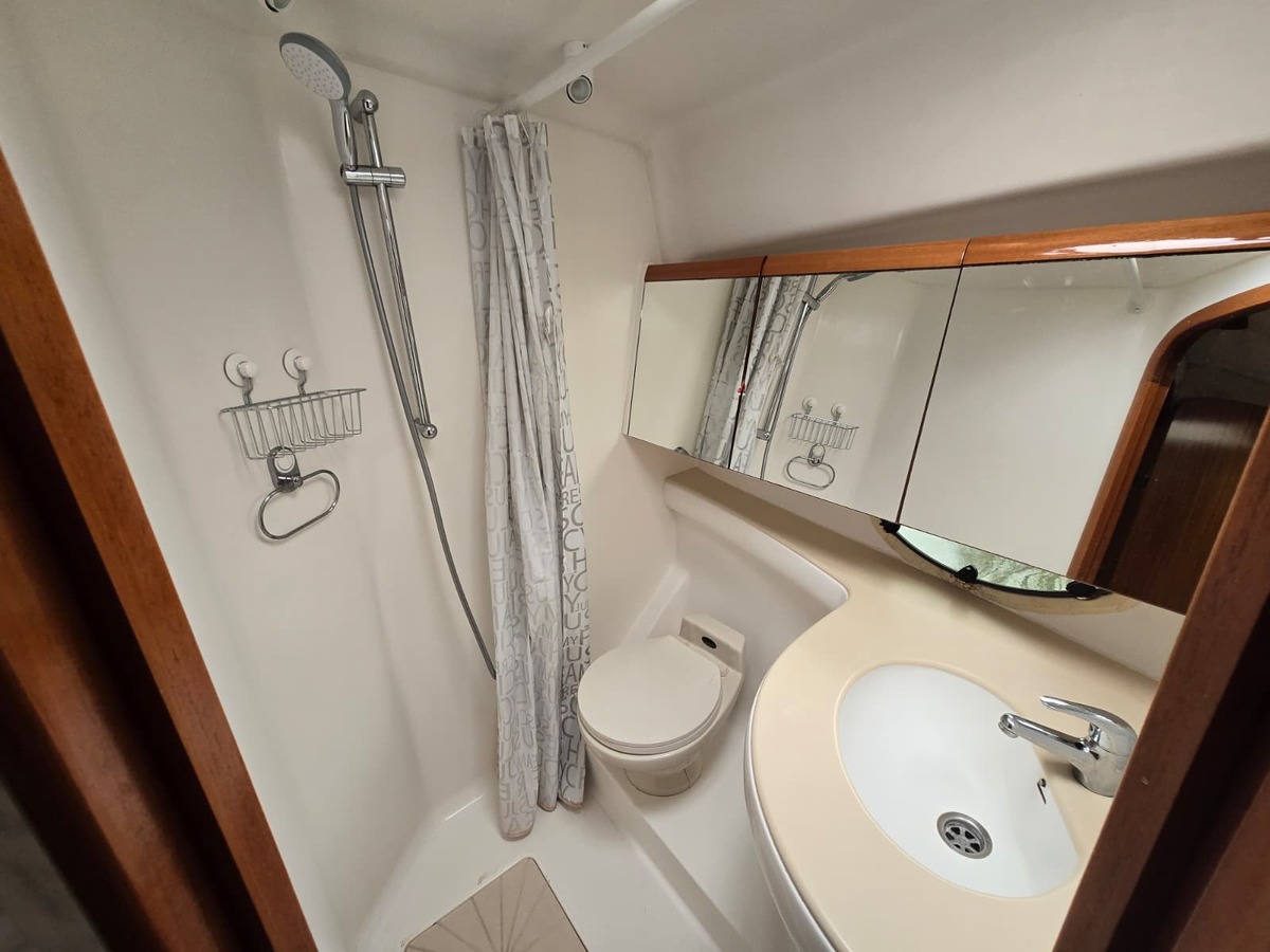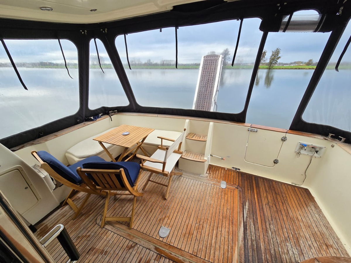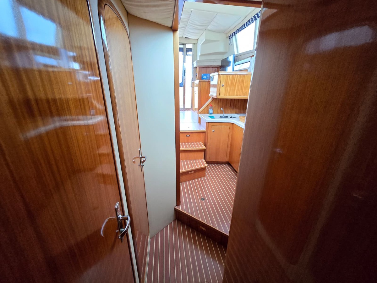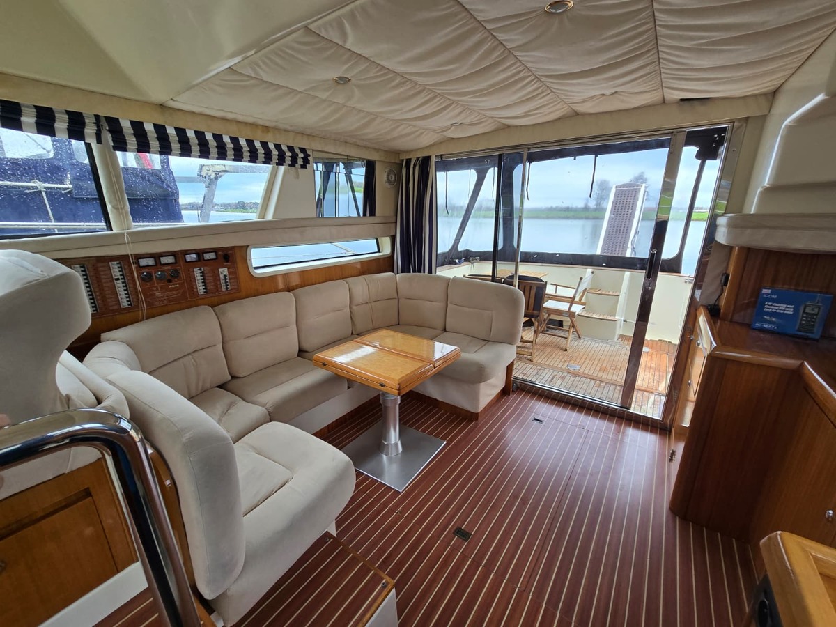 Ruim schip voorzien van alle gemakken, met twee hutten, twee natte cellen, ruime flybridge.