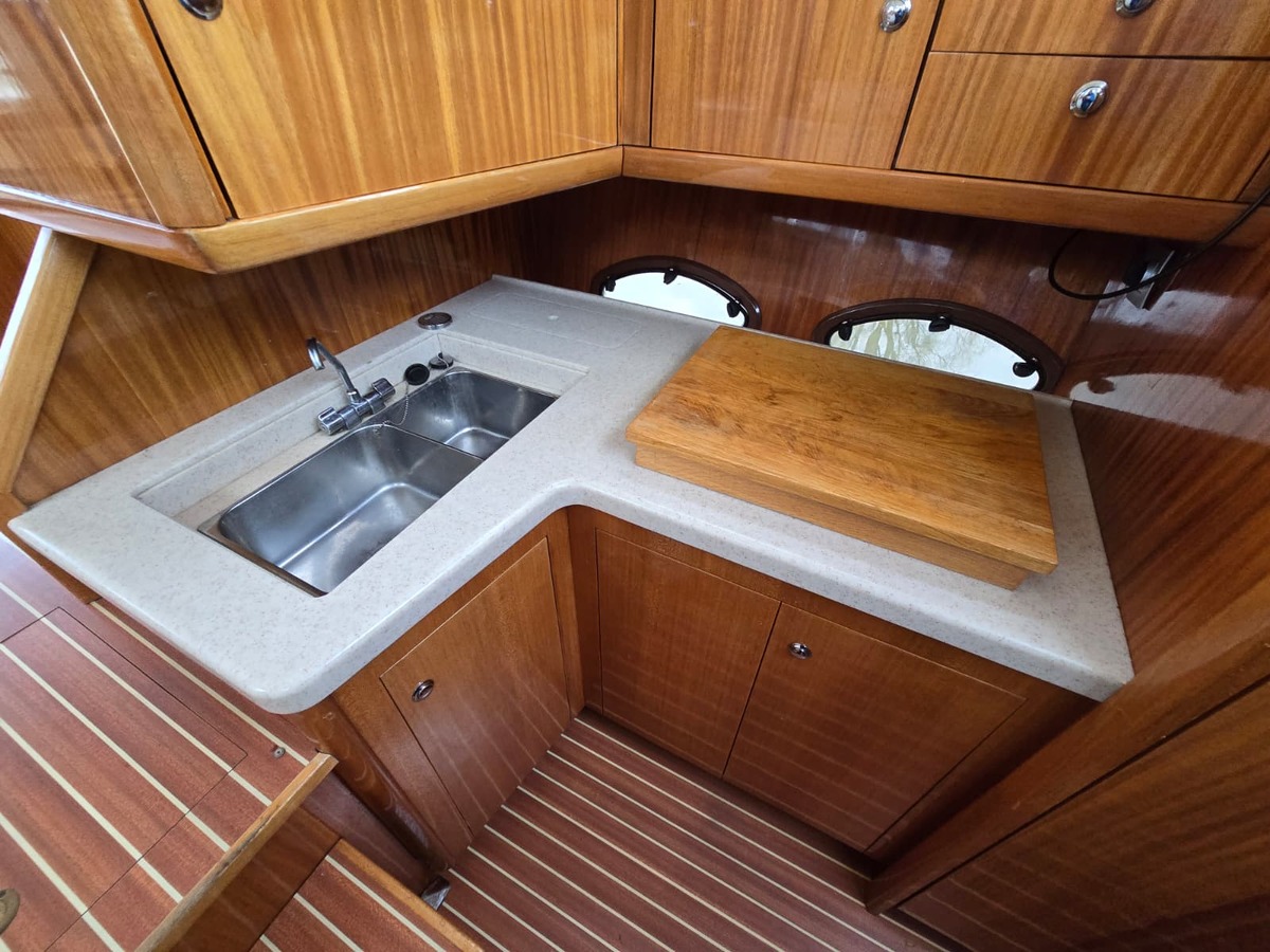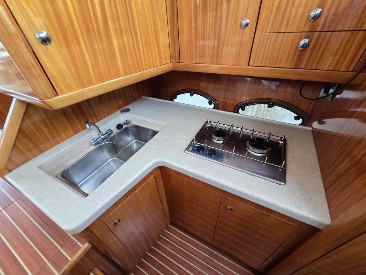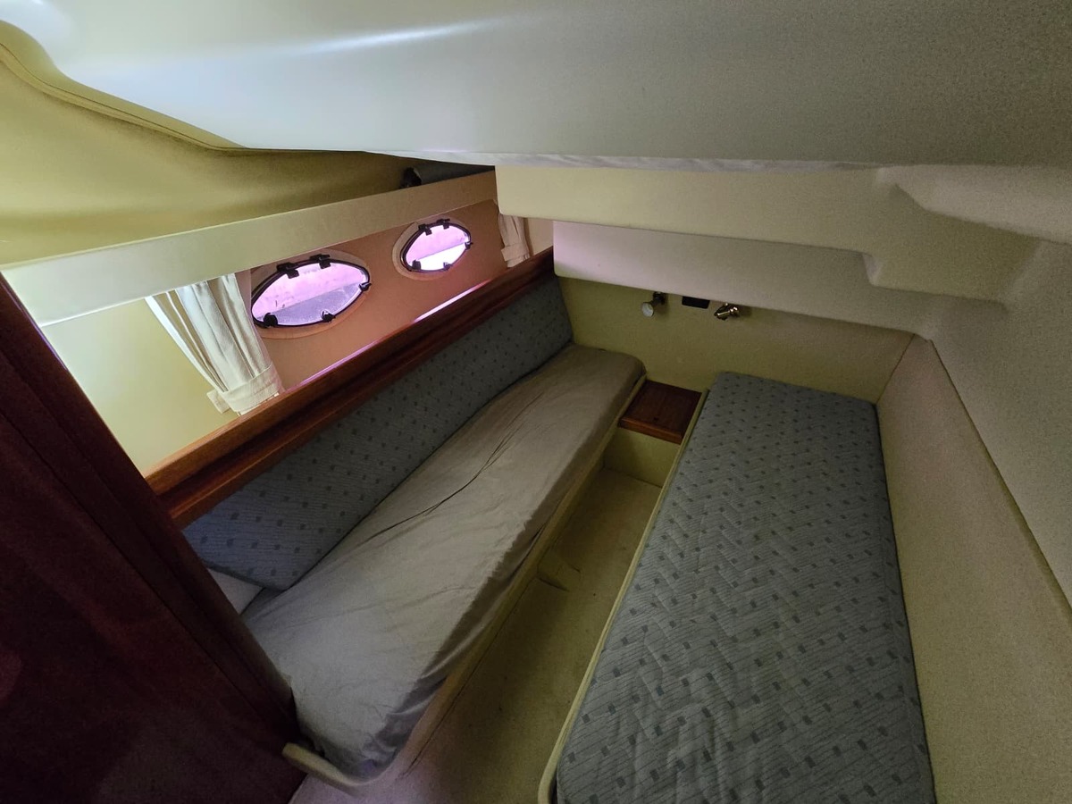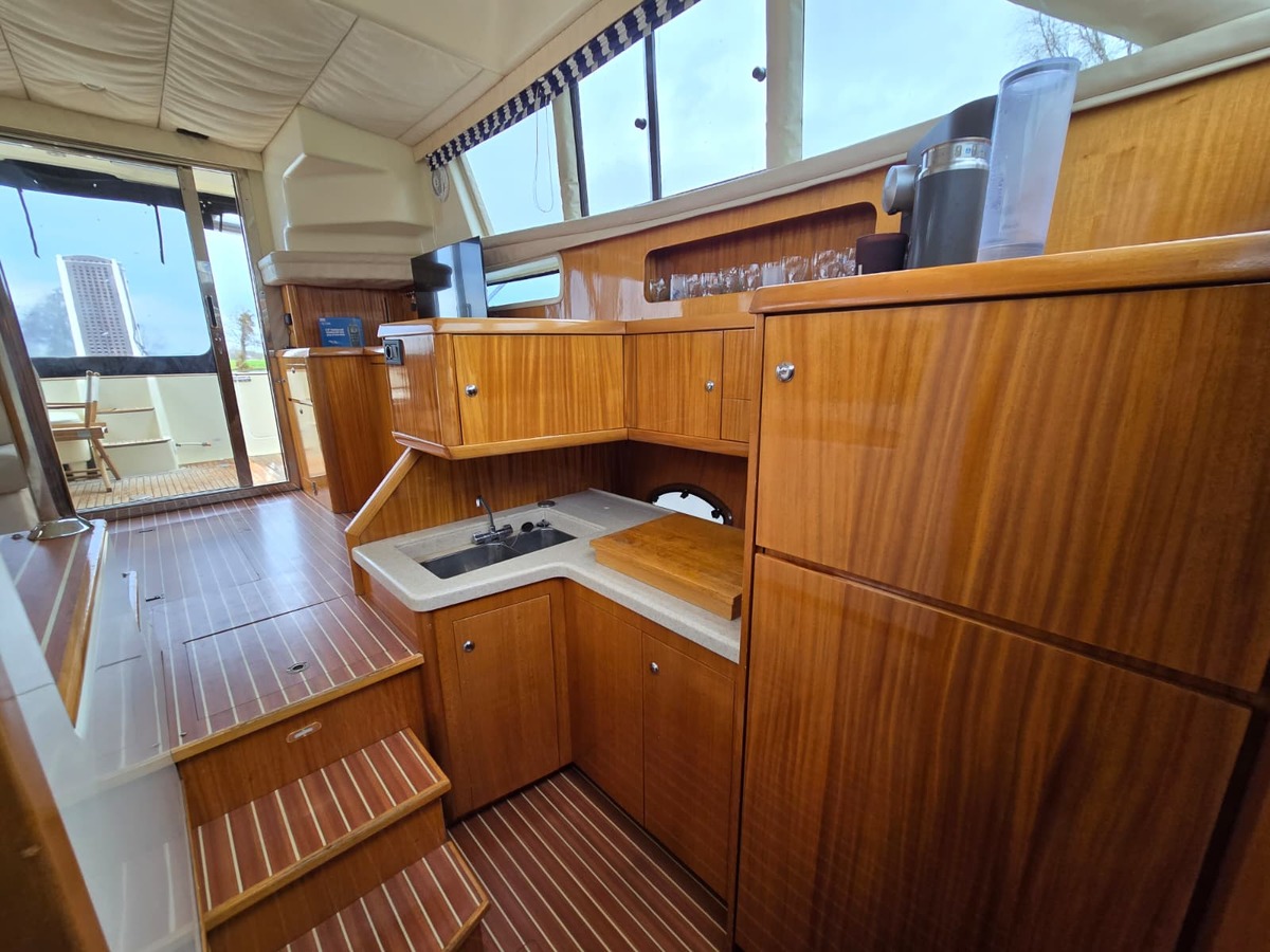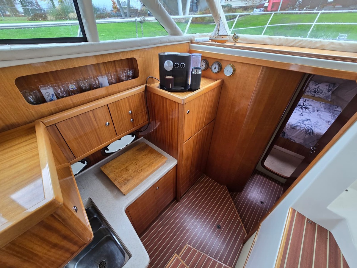 Ruim schip voorzien van alle gemakken, met twee hutten, twee natte cellen, ruime flybridge.