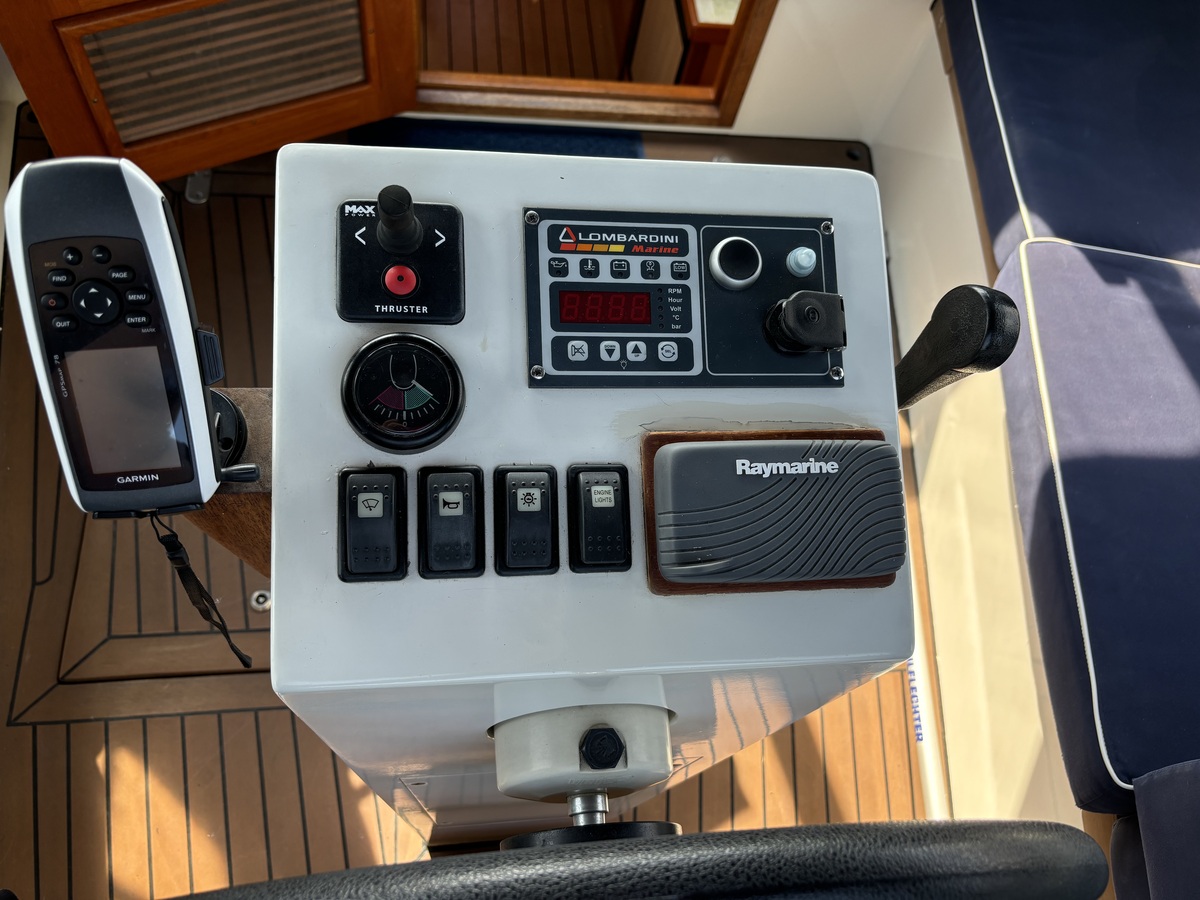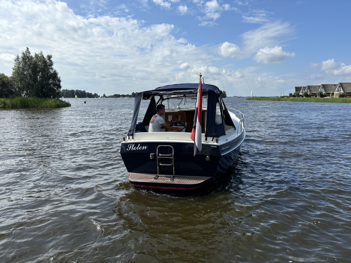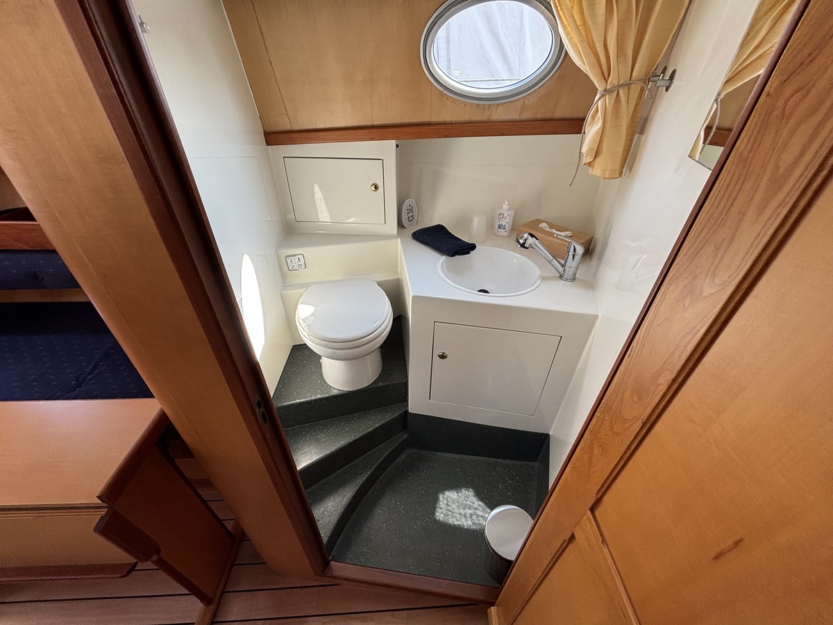 Deze motorboot is zeer compleet uitgerust voor lange tochten en een prettig verblijf aan boord. Douche, toilet, heet water, een heteluchtkachel en een omvormer voor 230V behoren tot de standaard uitrusting. Overal stahoogte, een ruim dubbel bed in de voorpiek en twee brede banken in de salon bieden verblijfsgemak voor max. 4 personen.