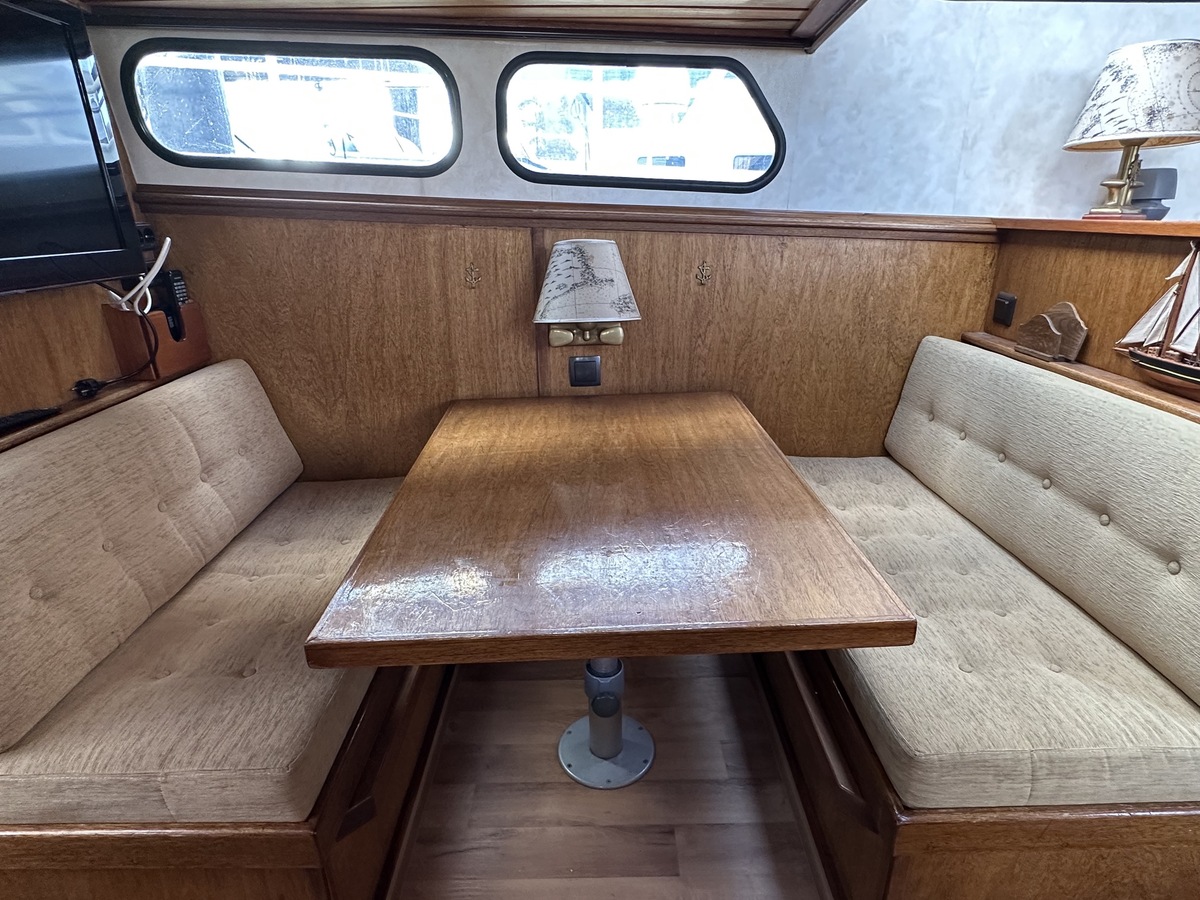 Een ruim schip met 2 afgesloten hutten en 4 vaste slaapplaatsen, toilet en douche. Nieuwe ramen in salon, waarvan 2 schuiframen met hor en klapraam.