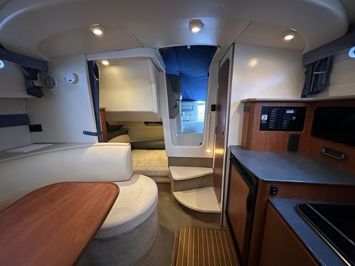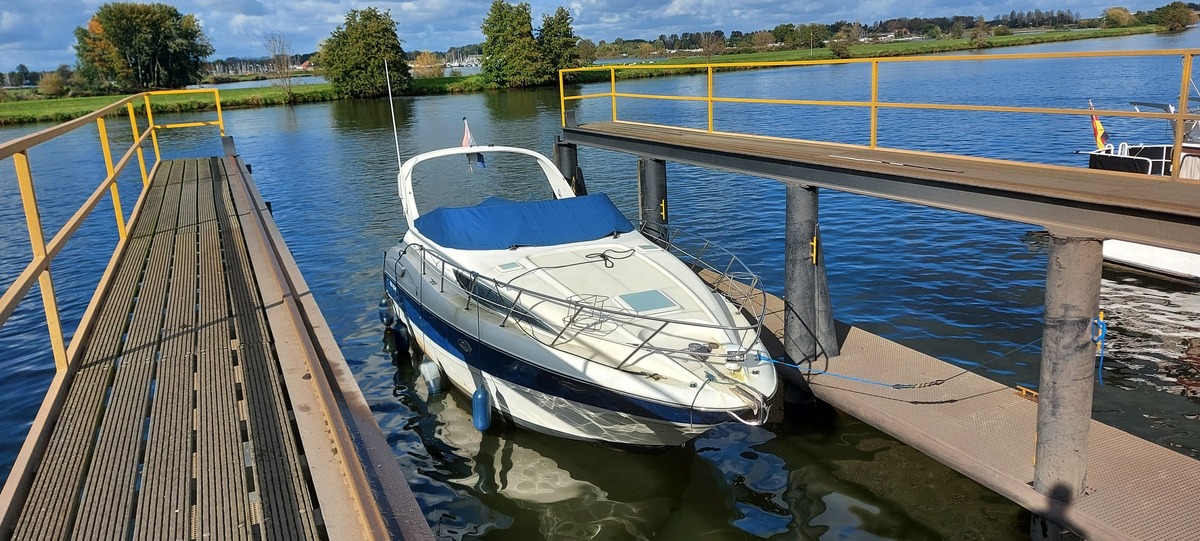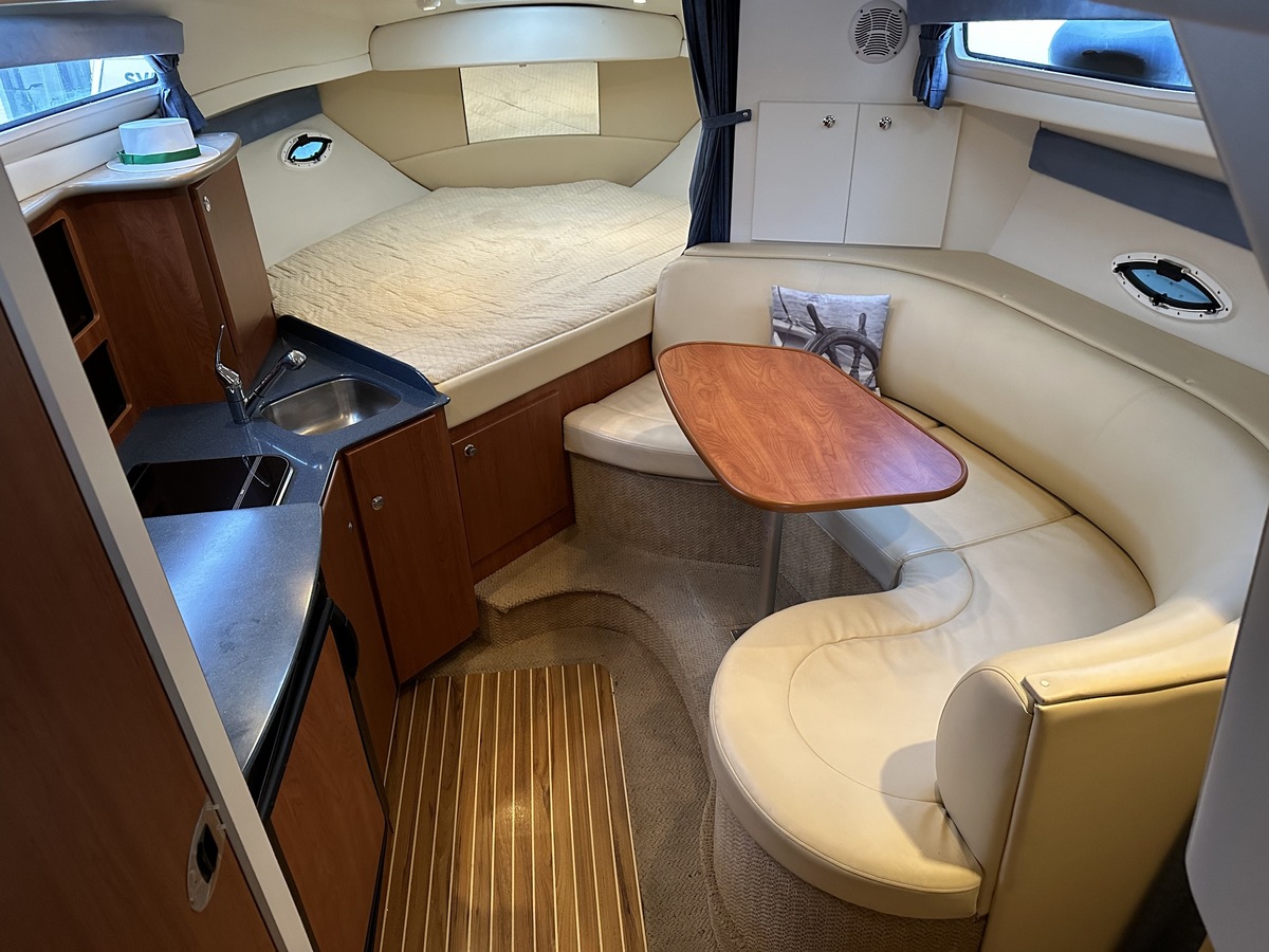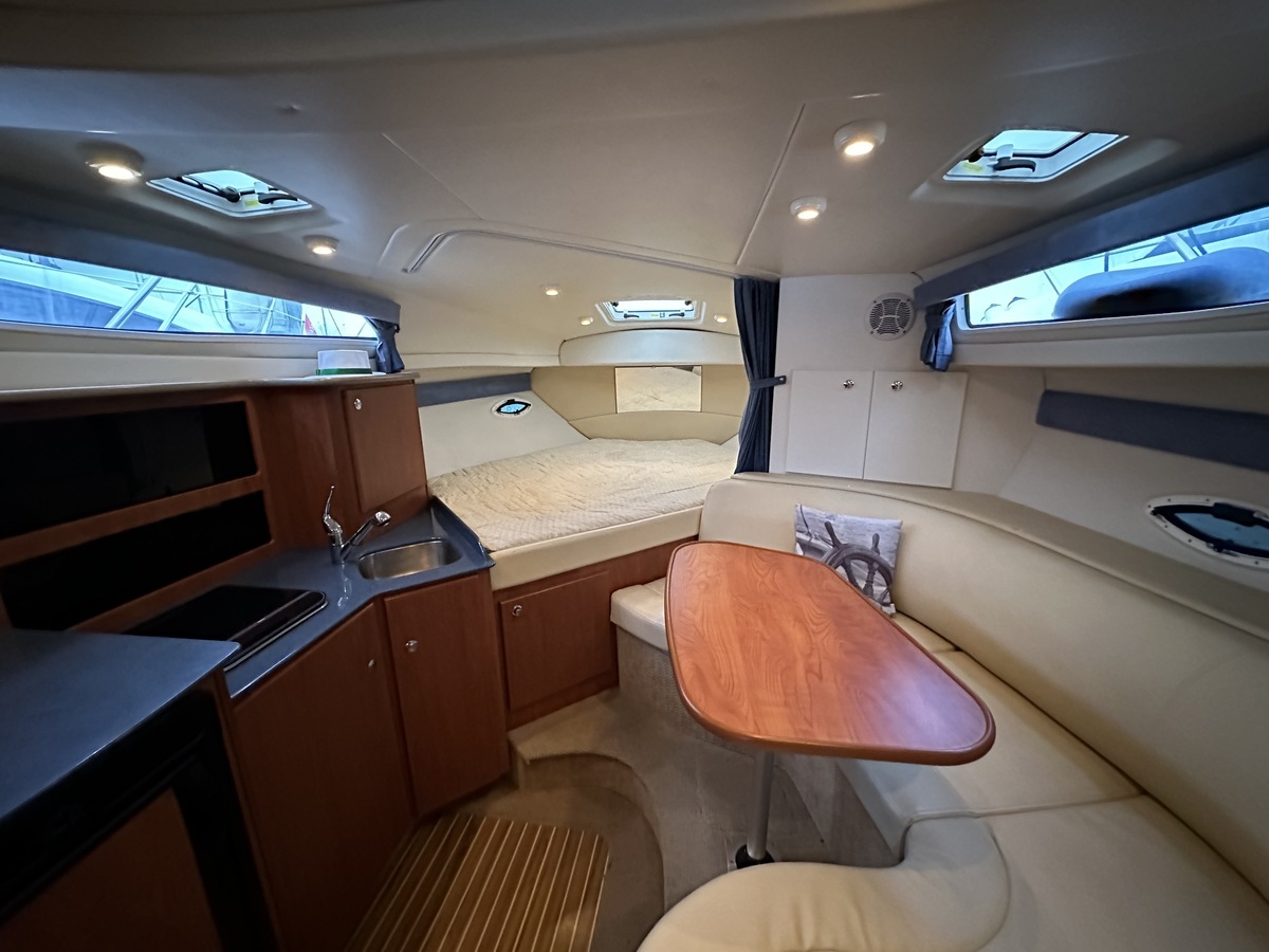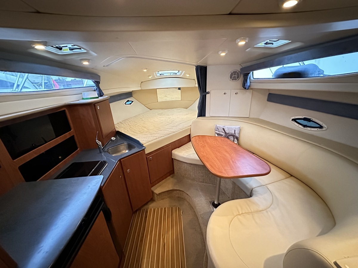 Deze sportieve Bayliner 305 heeft 4 vaste slaapplaatsen met mogelijkheid tot 2 extra. Voorzien van verwarming, airconditioning en boegschroef.