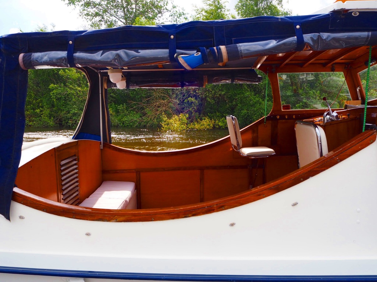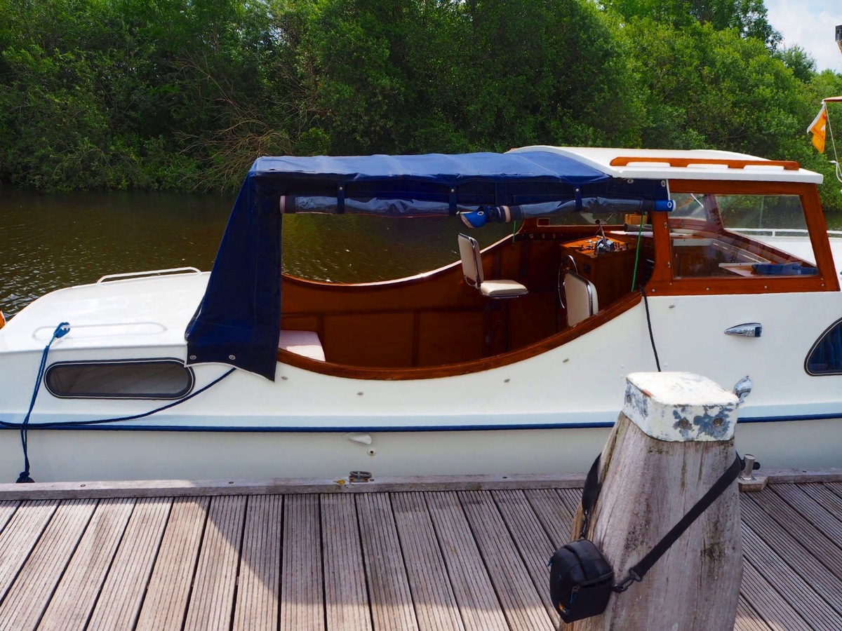 Prachtige gelijnde klassieke motorboot. Gezellig interieur en een nieuwe motor inclusief keerkoppeling en schroef (2023).