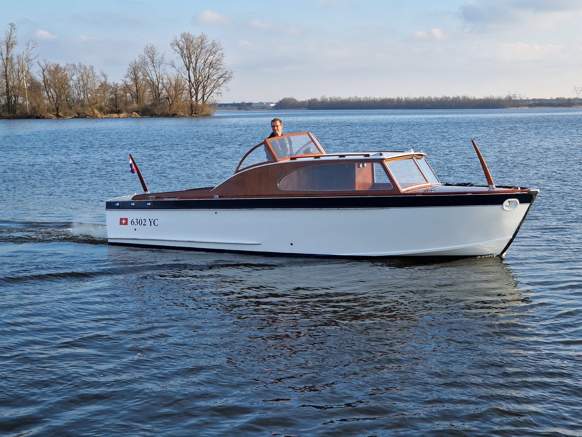Een unieke werfgebouwde speedcruiser uit 1955. De boot is in Zwitserland gebouwd op de Portier werf. Recent geheel gerestaureerd door de huidige eigenaar, alle foto's beschikbaar. Voorzien van een Volvo Penta motor met 100pk dus deze klassieker komt ook goed vooruit. De topsnelheid is 55km per uur.