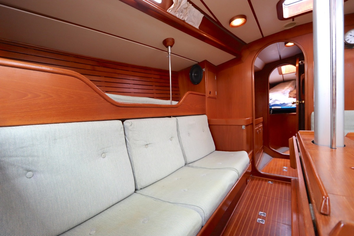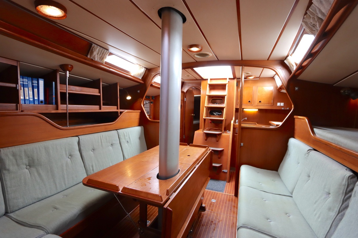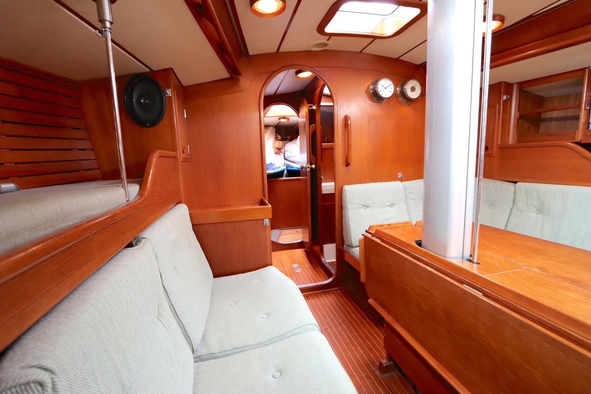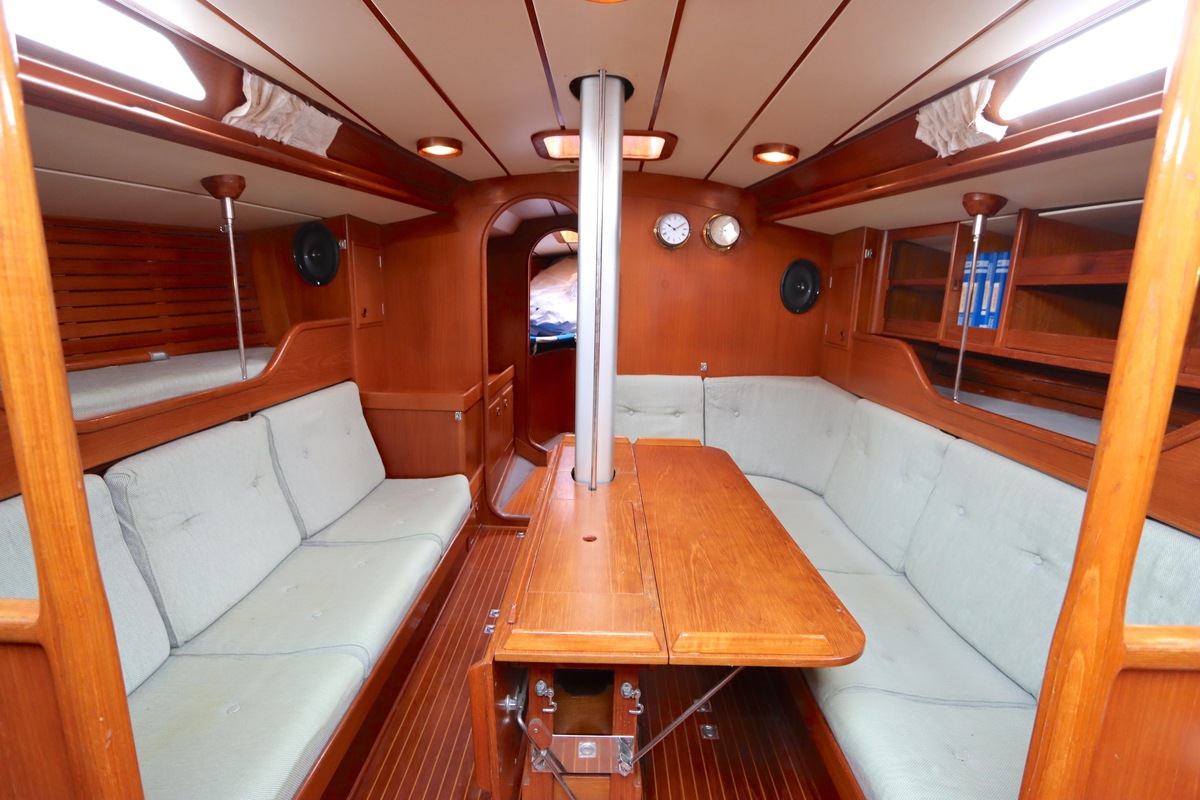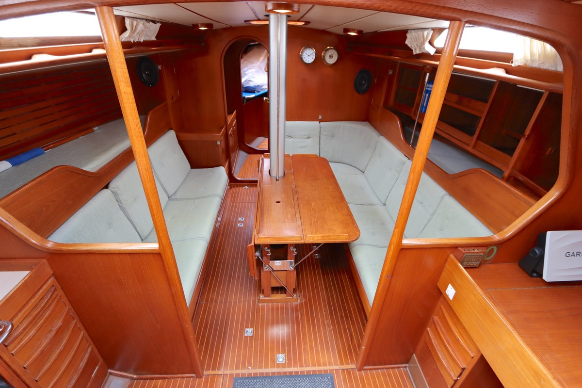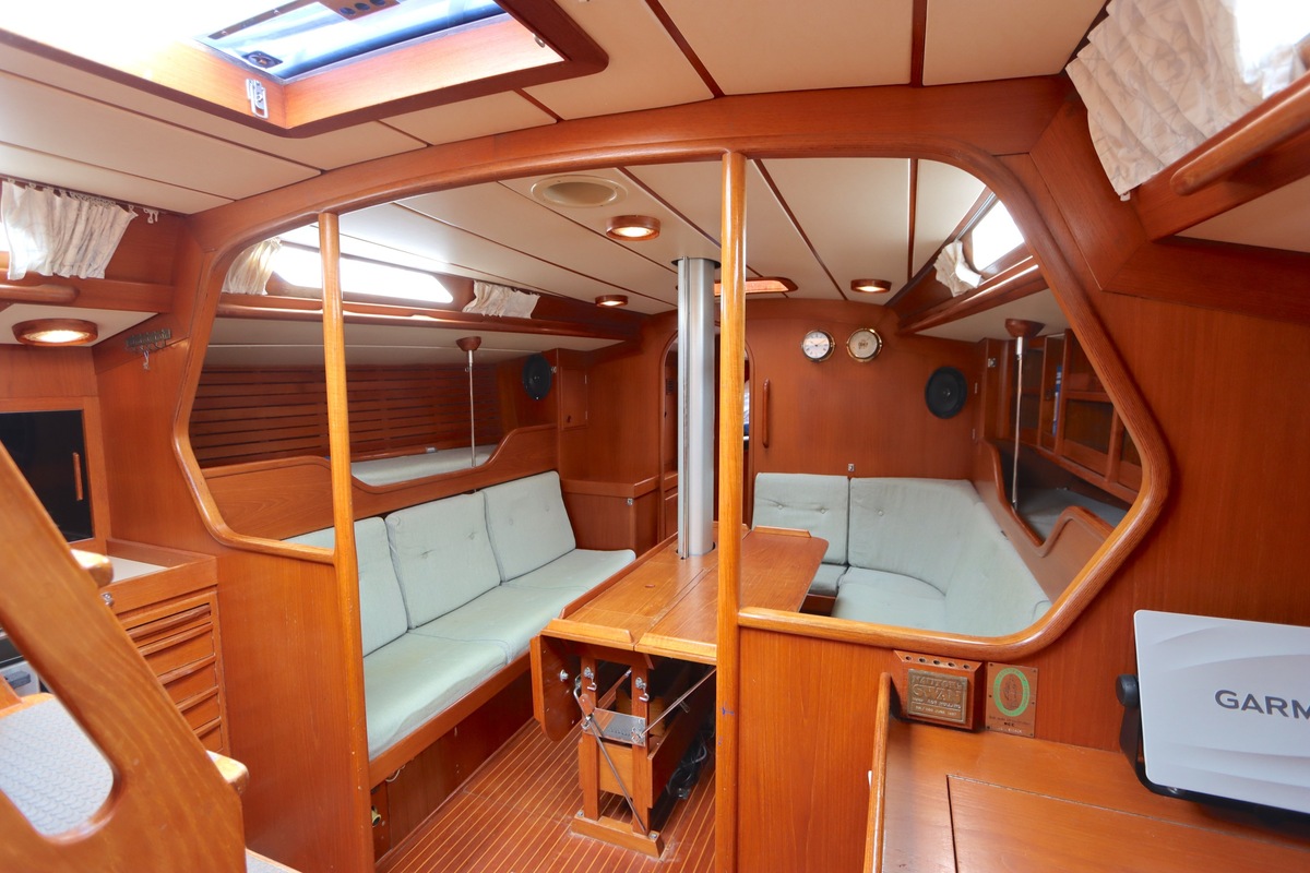 De Swan 391 Tao, ontworpen door de wereldberoemde jachtontwerper Ron Holland en vervaardigd bij Nautor Swan in Finland, beschikt over een met de hand vervaardigd teak interieur dat in uitstekende staat verkeert.