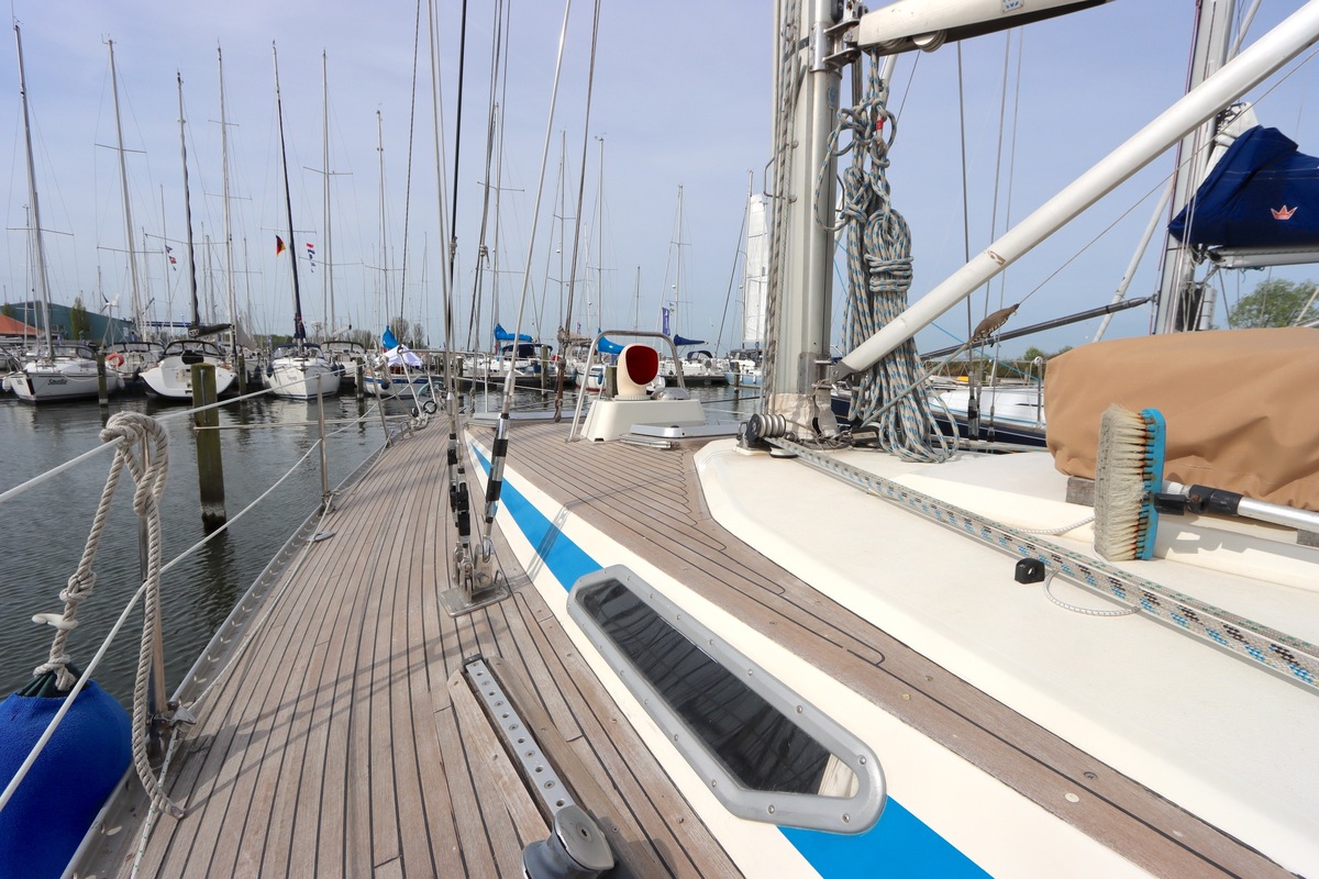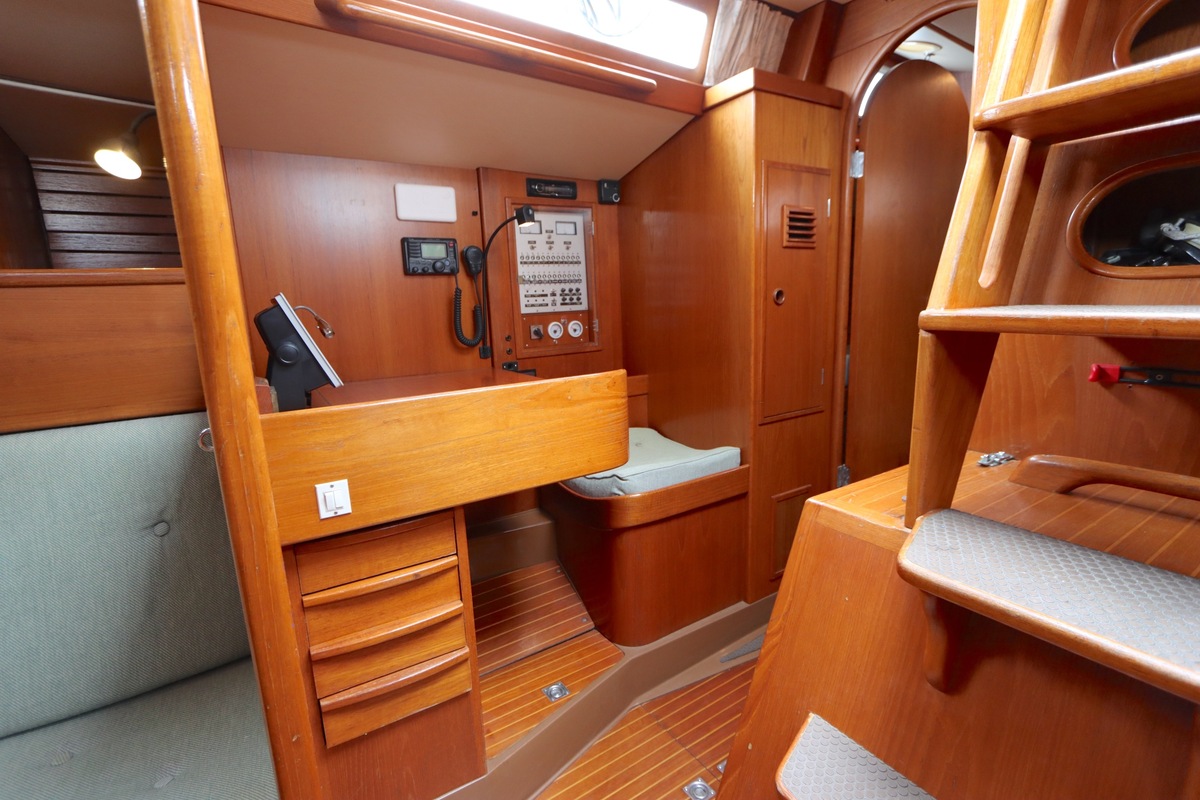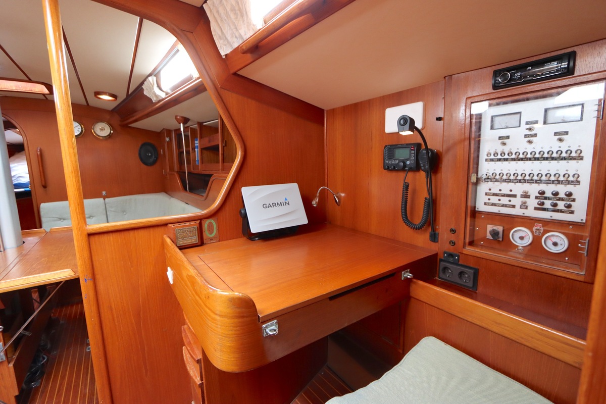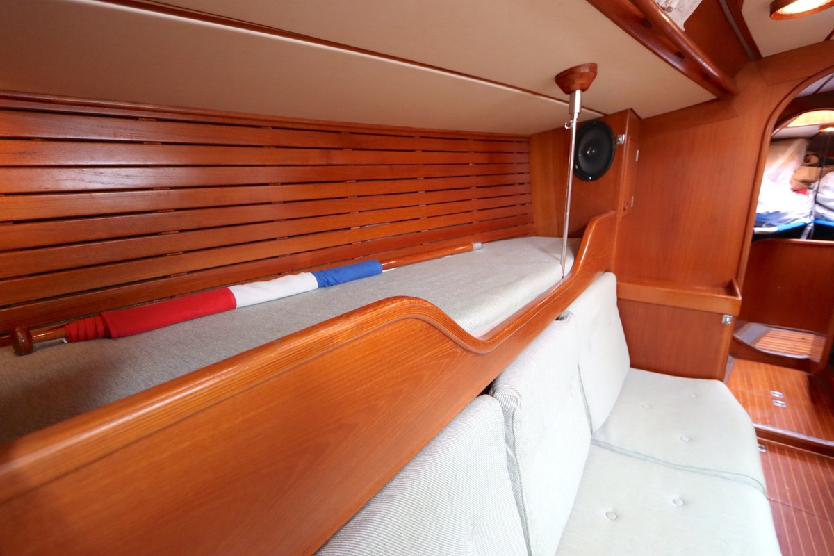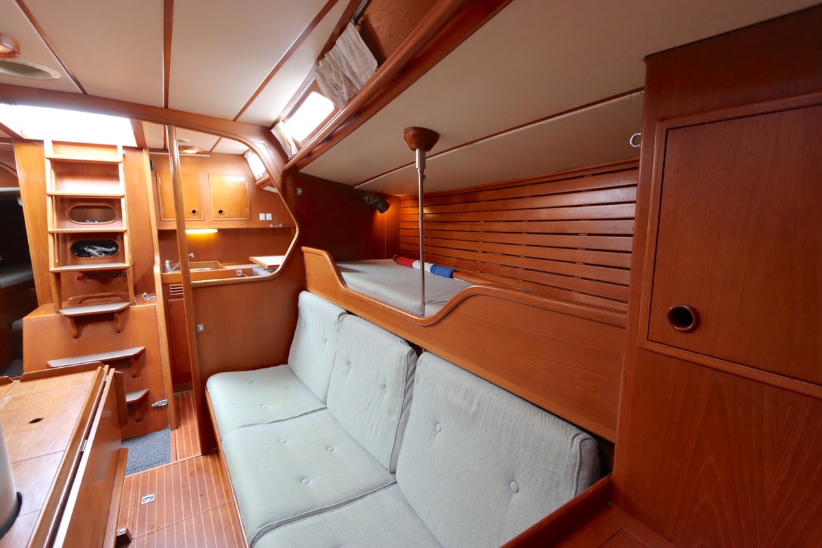 De Swan 391 Tao, ontworpen door de wereldberoemde jachtontwerper Ron Holland en vervaardigd bij Nautor Swan in Finland, beschikt over een met de hand vervaardigd teak interieur dat in uitstekende staat verkeert.