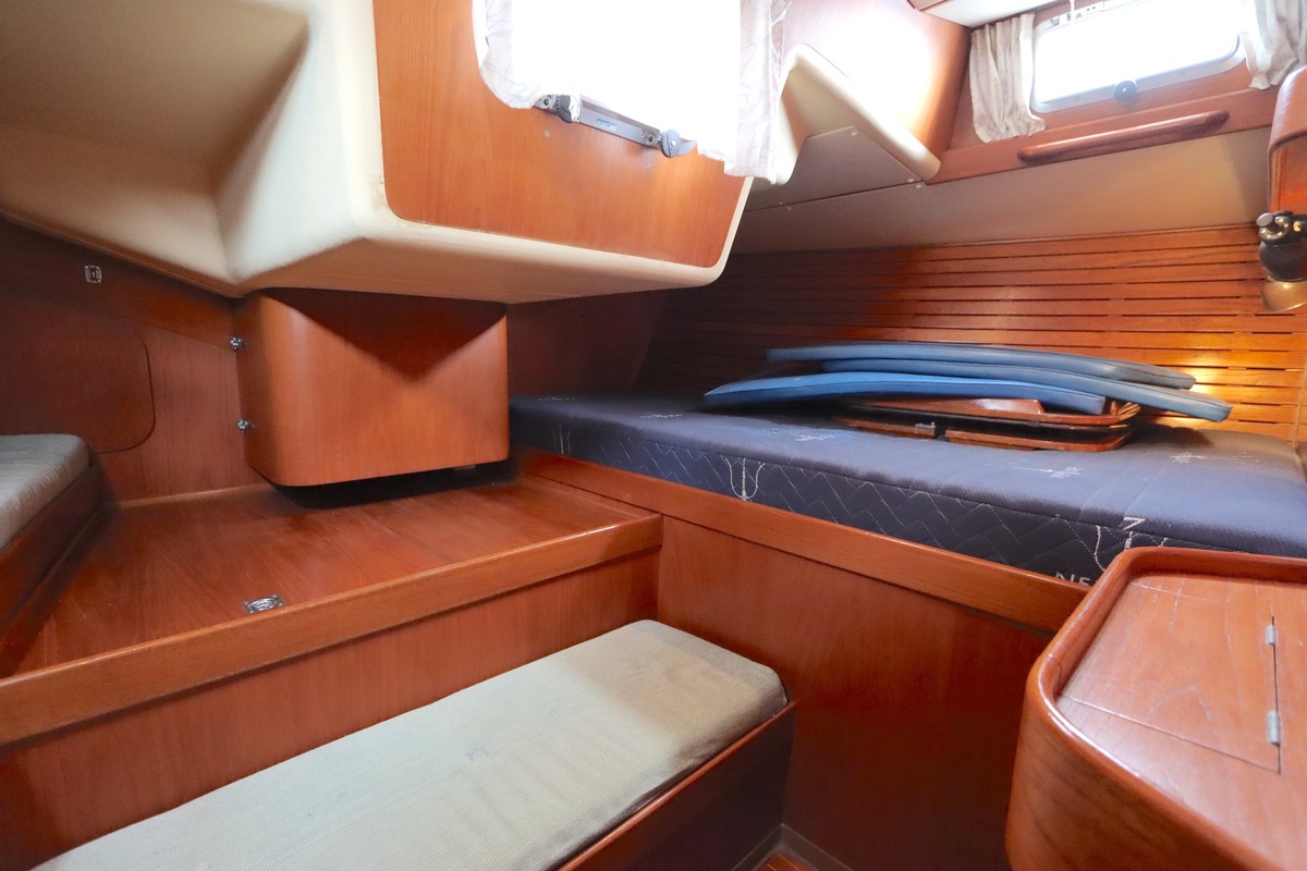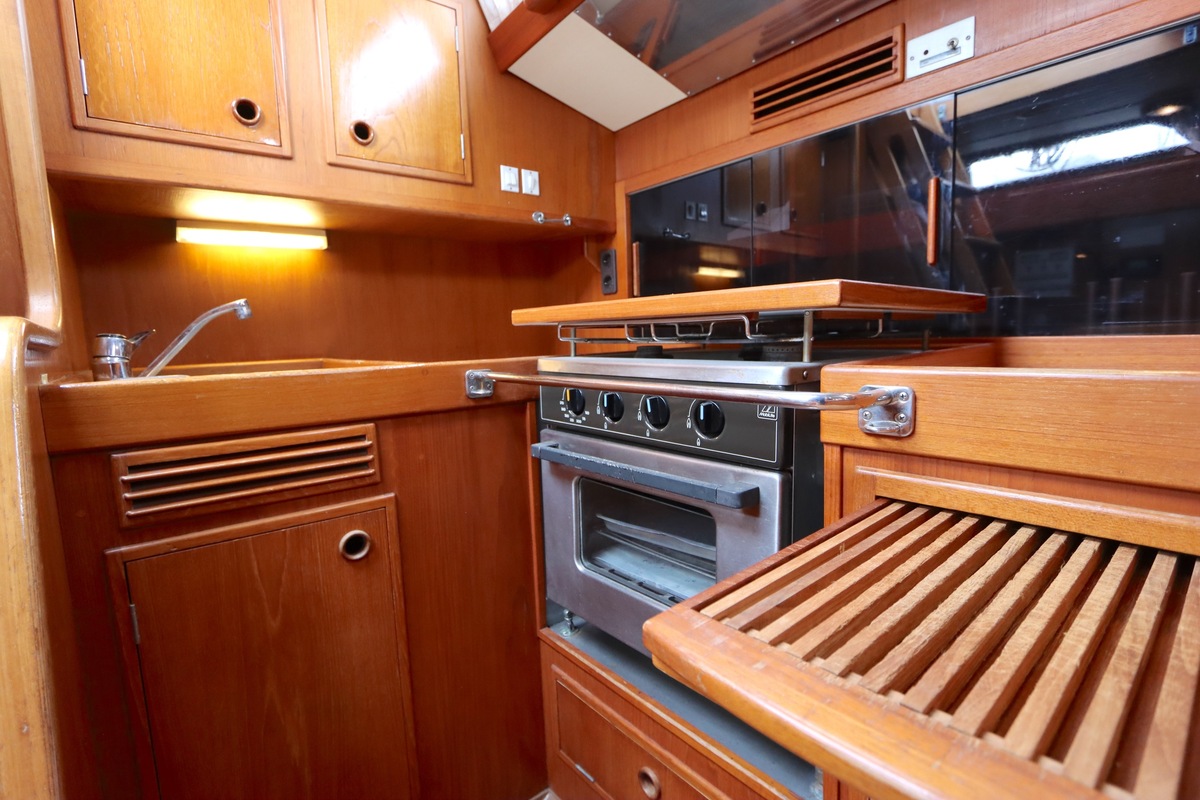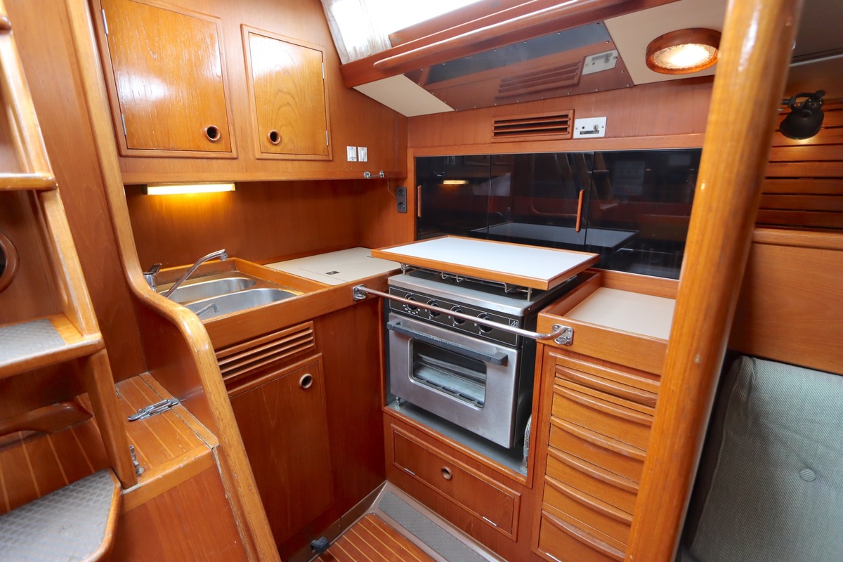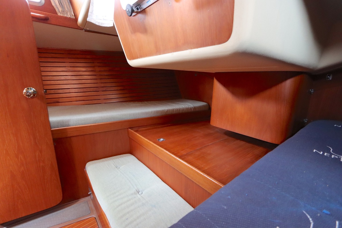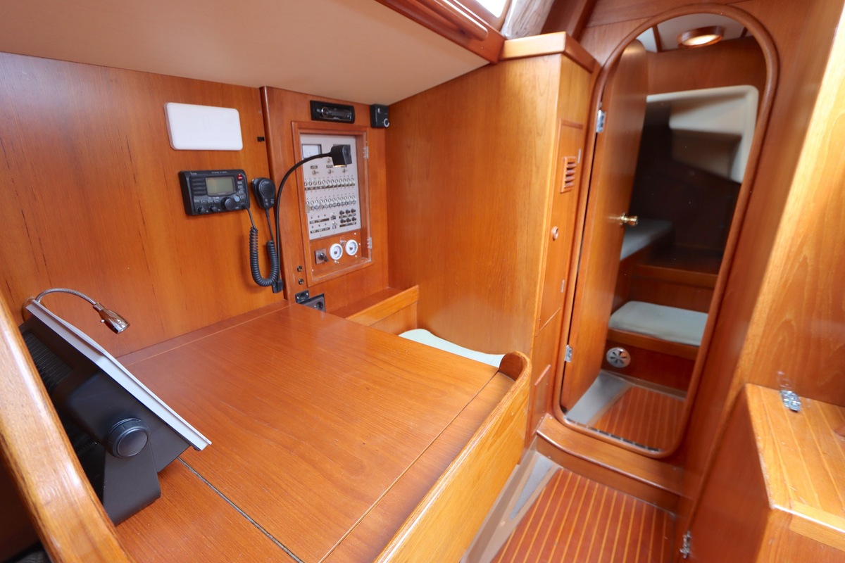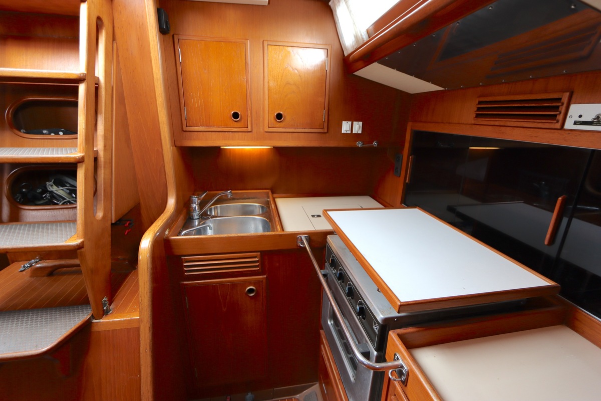 De Swan 391 Tao, ontworpen door de wereldberoemde jachtontwerper Ron Holland en vervaardigd bij Nautor Swan in Finland, beschikt over een met de hand vervaardigd teak interieur dat in uitstekende staat verkeert.