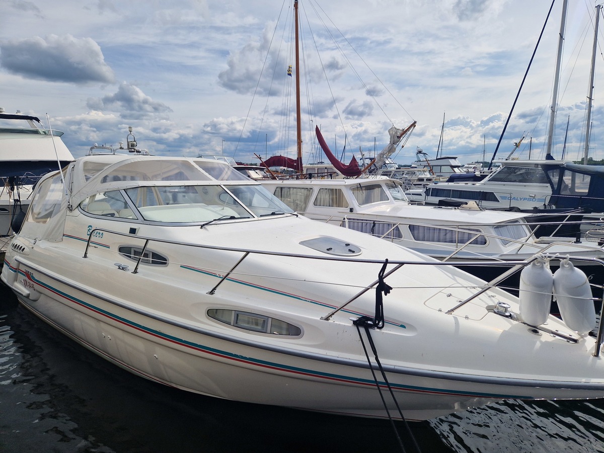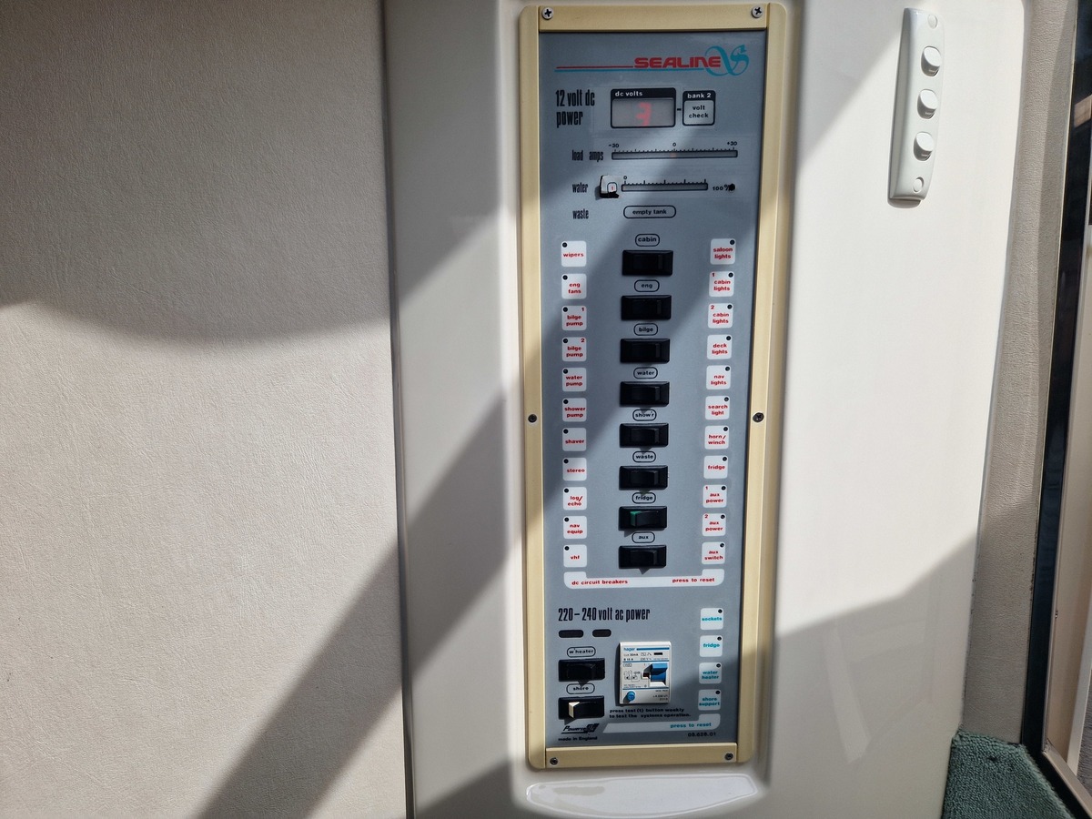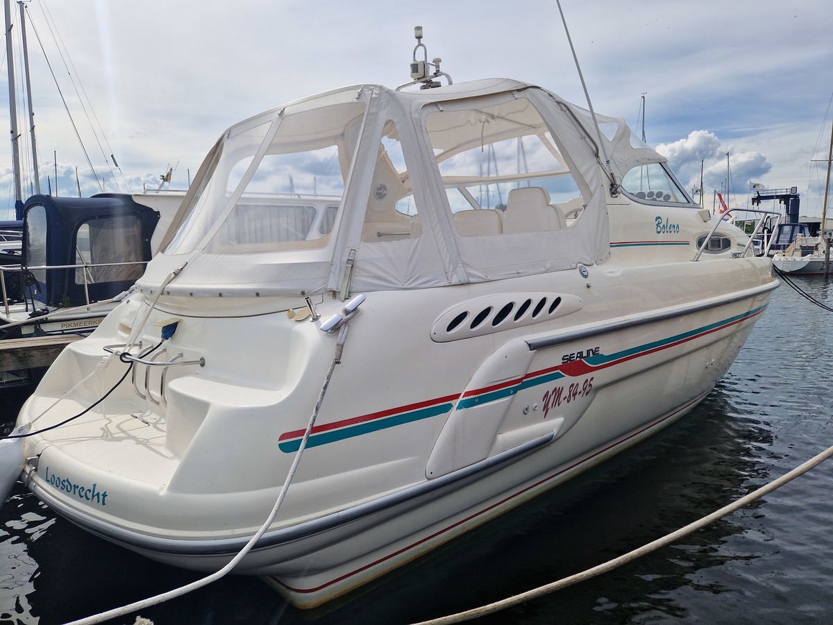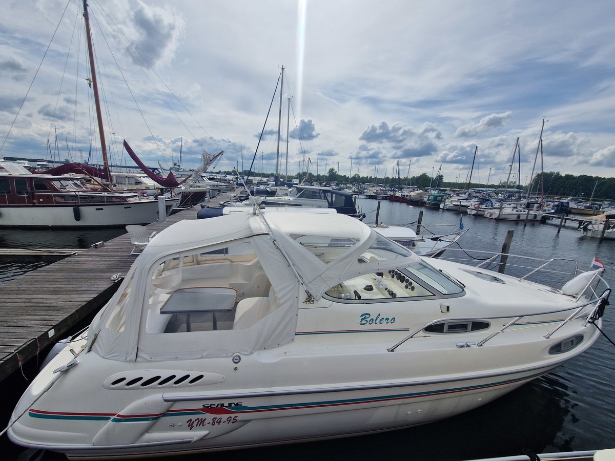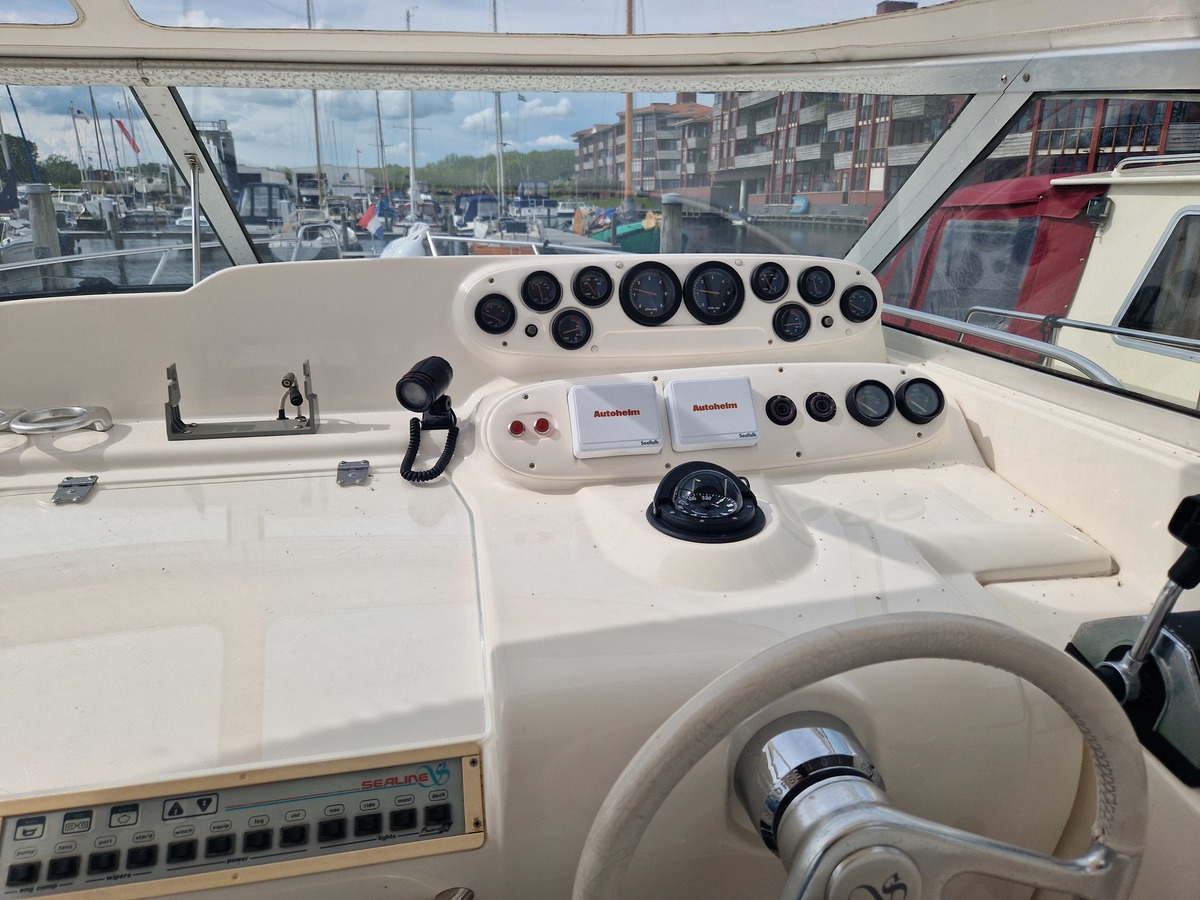Deze zeer nette Sealine is uitgerust met 2 Mercruiser 3.0LX benzinemotoren. Inrichting compleet en netjes. Douche- en toiletruimte. Aparte hut met twee slaapplaatsen. Voorzien van een geluidsinstallatie, kooktoestel, oven en koelkast. De huidige eigenaar heeft de boot al weer 25 jaar in bezit en heeft in die tijd zeer goed zorggedragen voor de algehele staat van de boot. Dit valt meteen op bij het betreden van de boot.