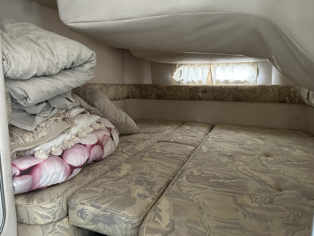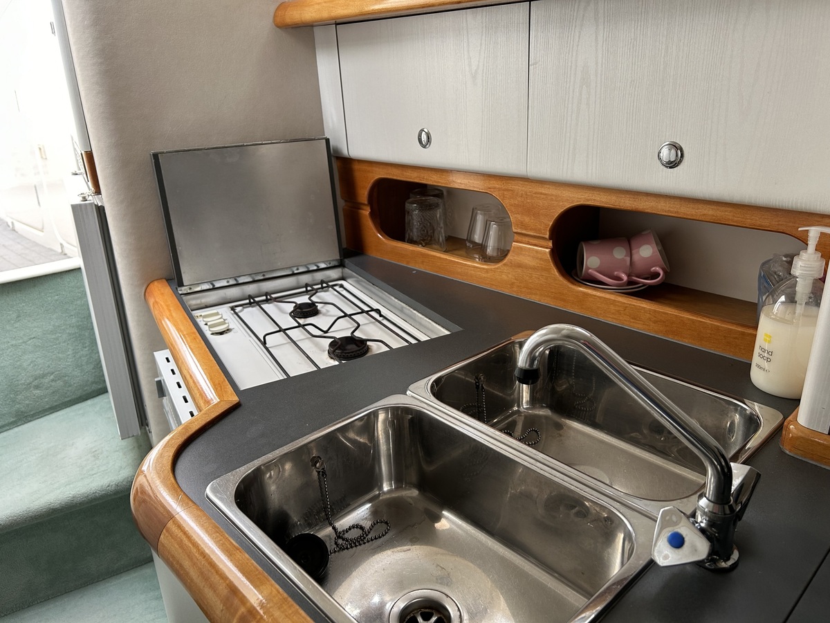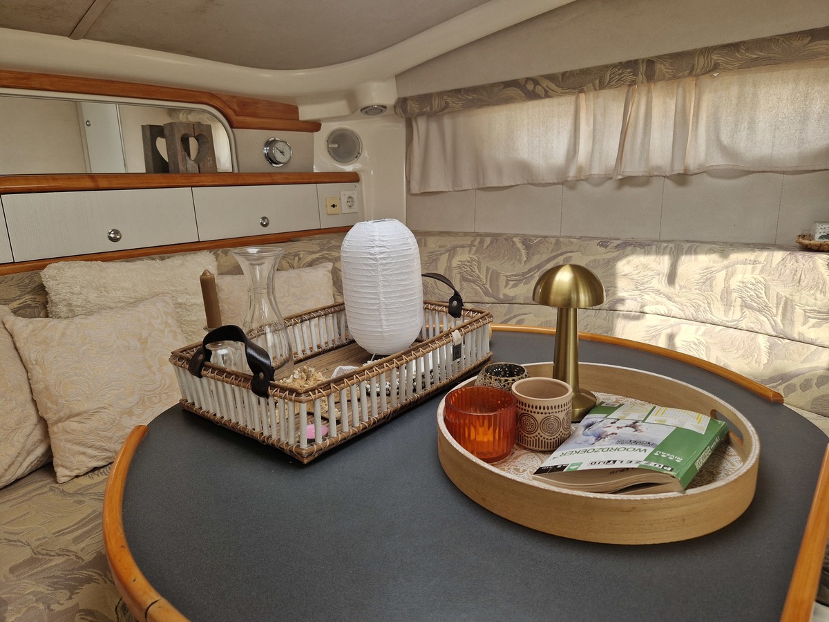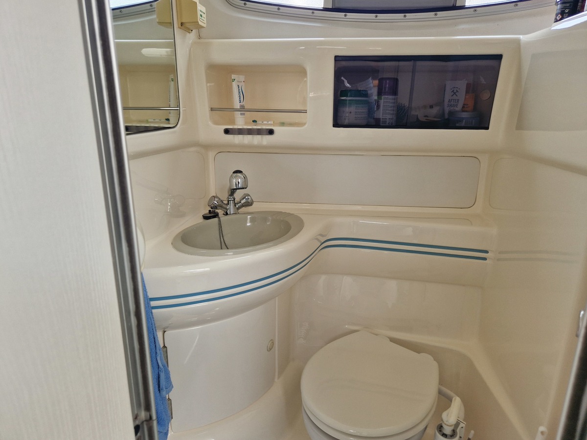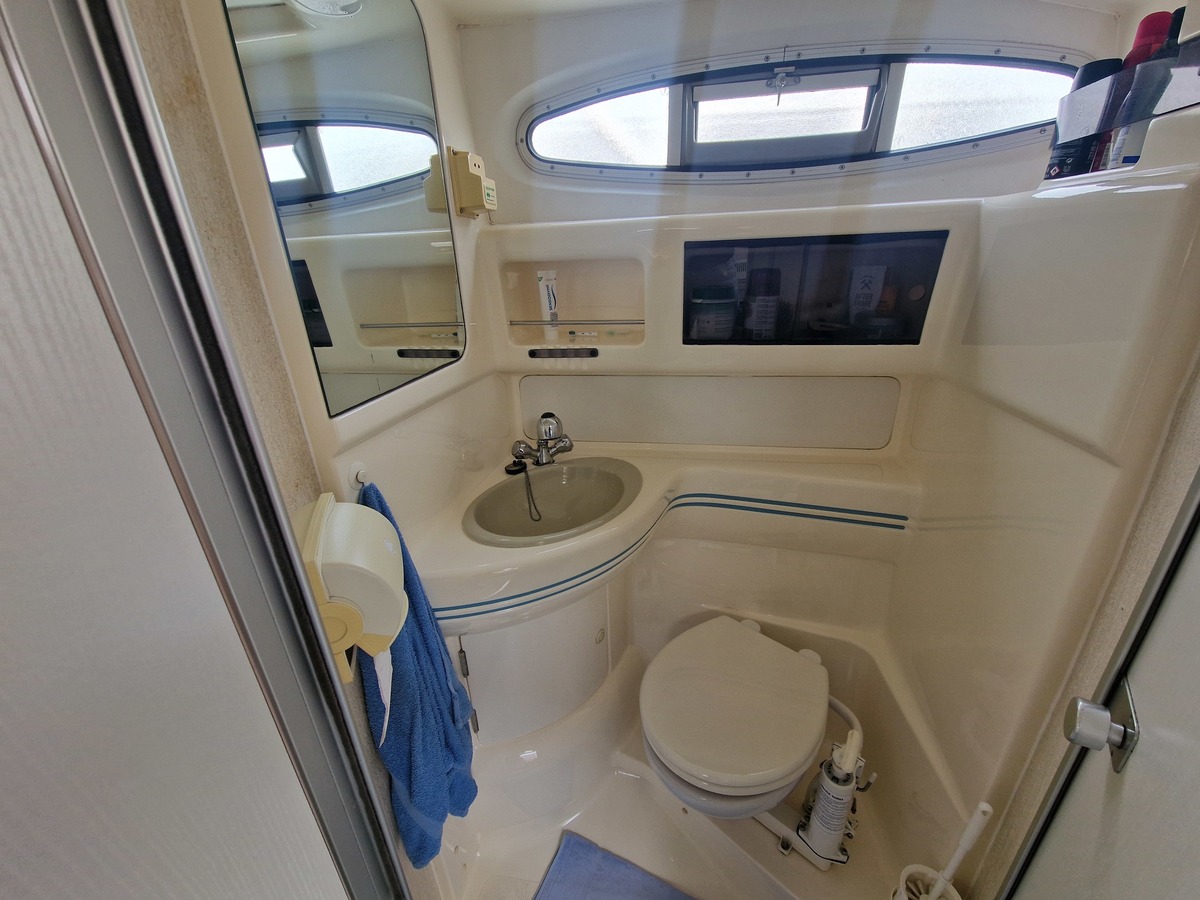 Deze zeer nette Sealine is uitgerust met 2 Mercruiser 3.0LX benzinemotoren. Inrichting compleet en netjes. Douche- en toiletruimte. Aparte hut met twee slaapplaatsen. Voorzien van een geluidsinstallatie, kooktoestel, oven en koelkast. De huidige eigenaar heeft de boot al weer 25 jaar in bezit en heeft in die tijd zeer goed zorggedragen voor de algehele staat van de boot. Dit valt meteen op bij het betreden van de boot.
