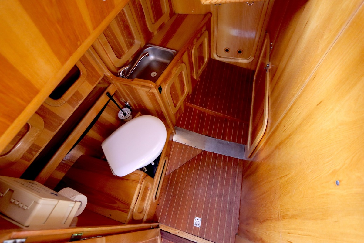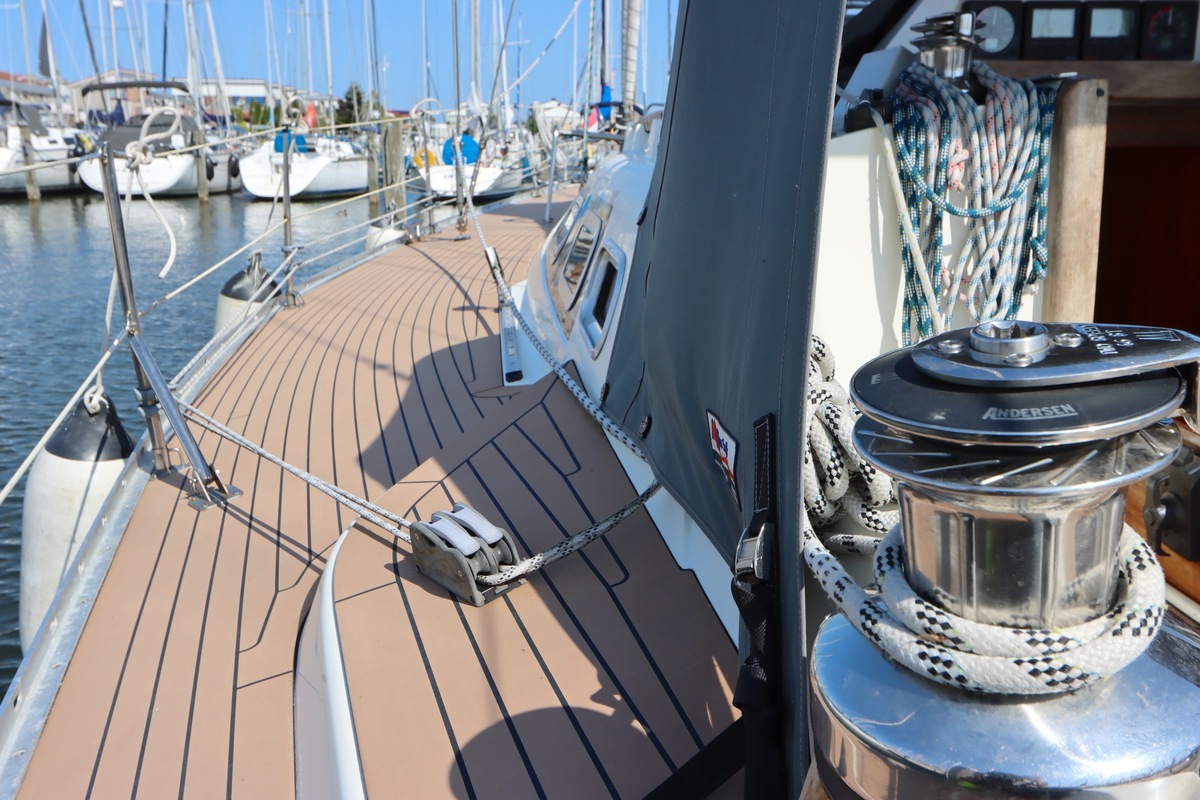 Fijne ruime boot met 2 rolvoorzeilen. Met kleine aanpassingen is het schip nu rolstoelvriendelijk, maar erg makkelijk om te bouwen.