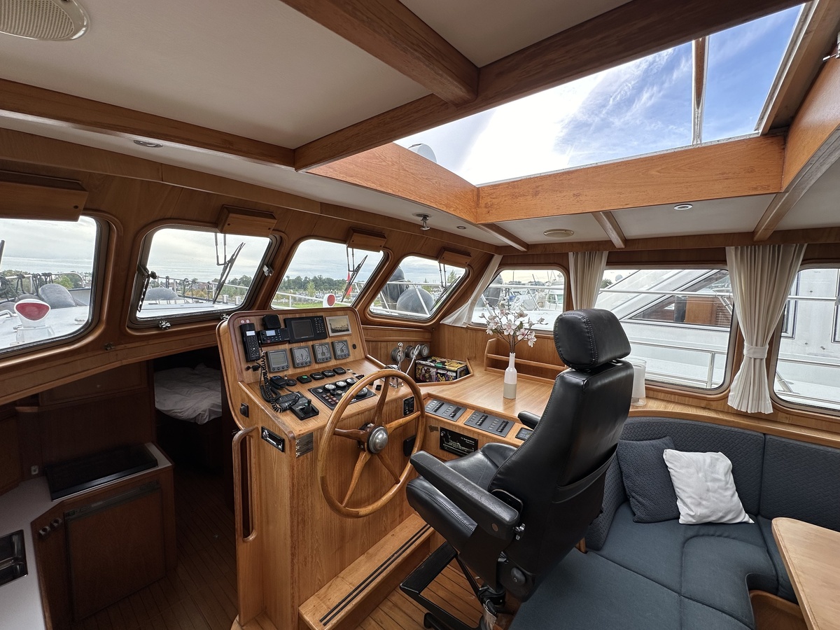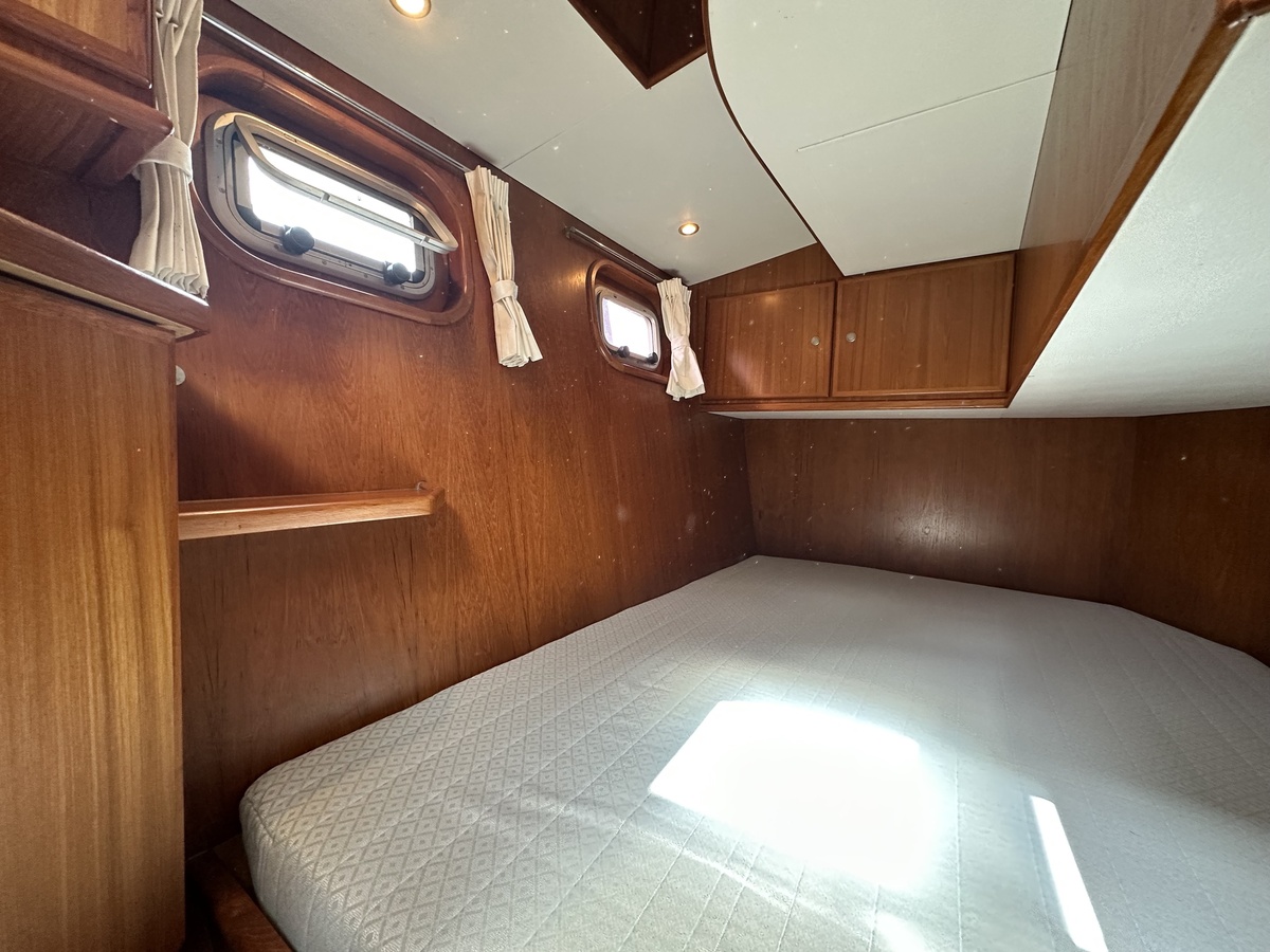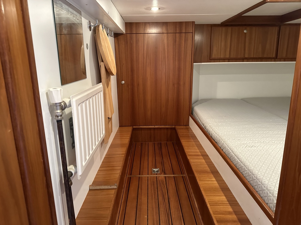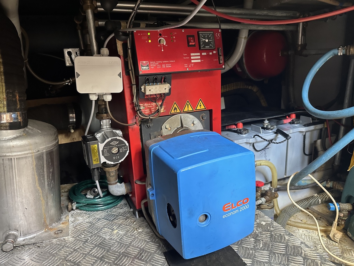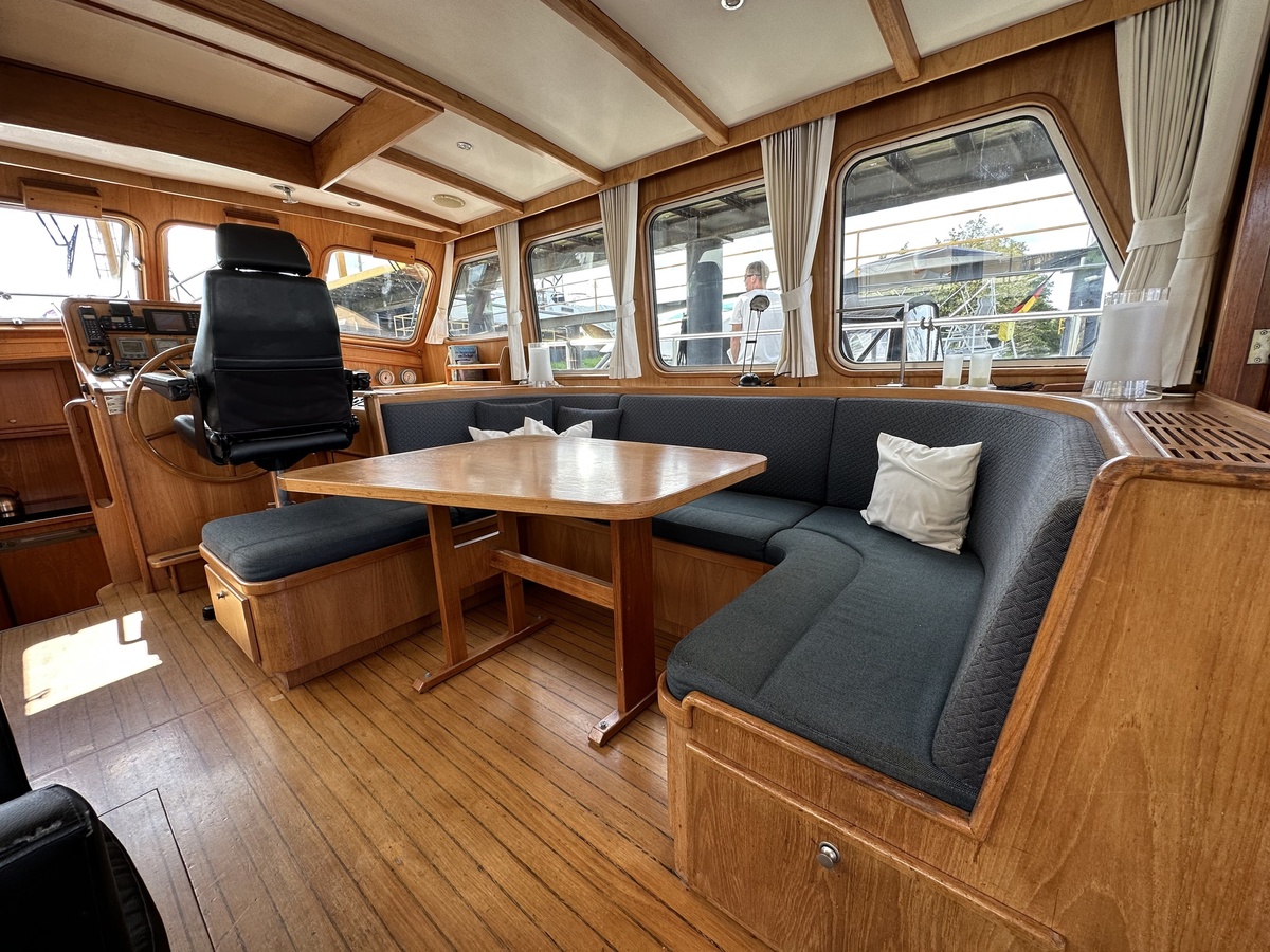Stuurwiel HydraulischRuime Spiegelkotter ideaal om langere tijd op te verblijven vanwege de warm water verwarming en dubbele beglazing. Door de speciale ligging van de motor zijn drie ruime hutten ontstaan. Het schip wordt verkocht door de eerste eigenaar.
