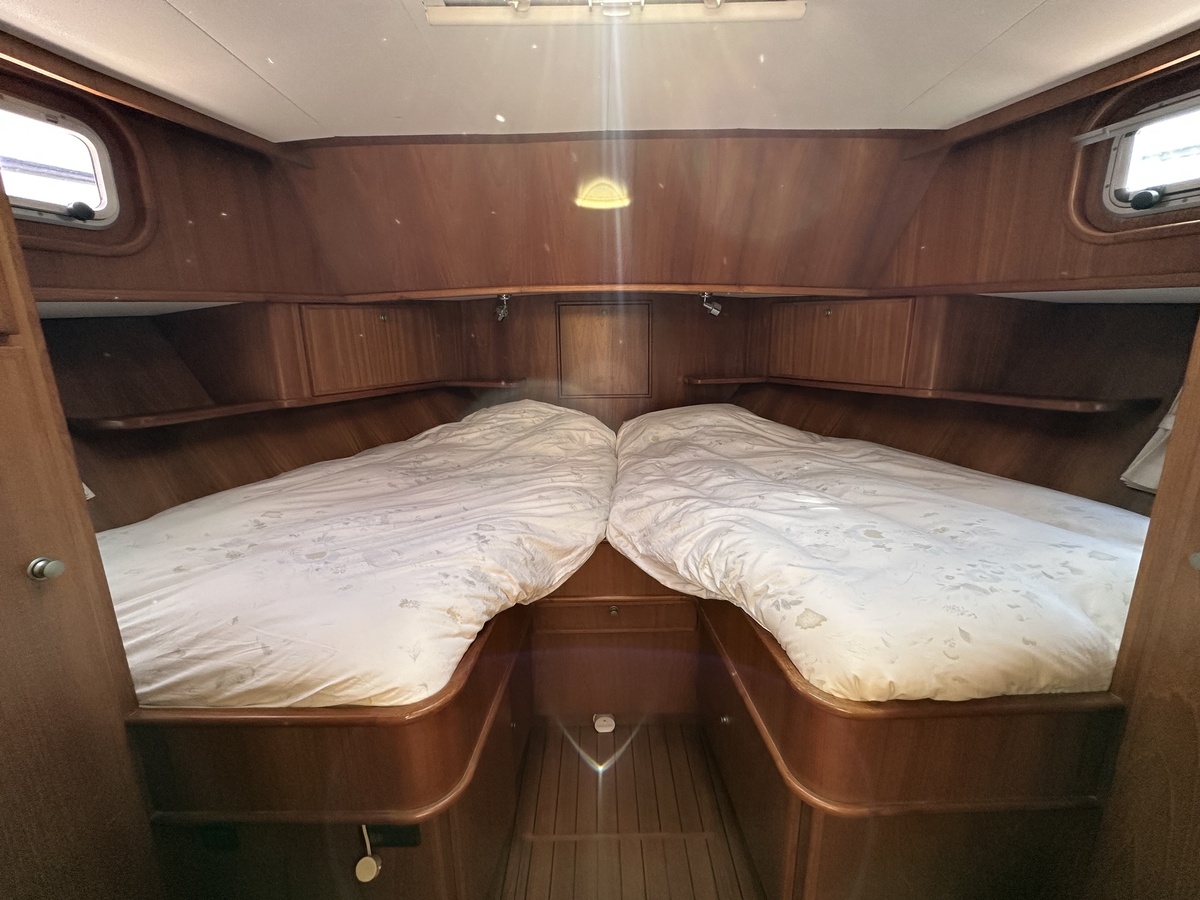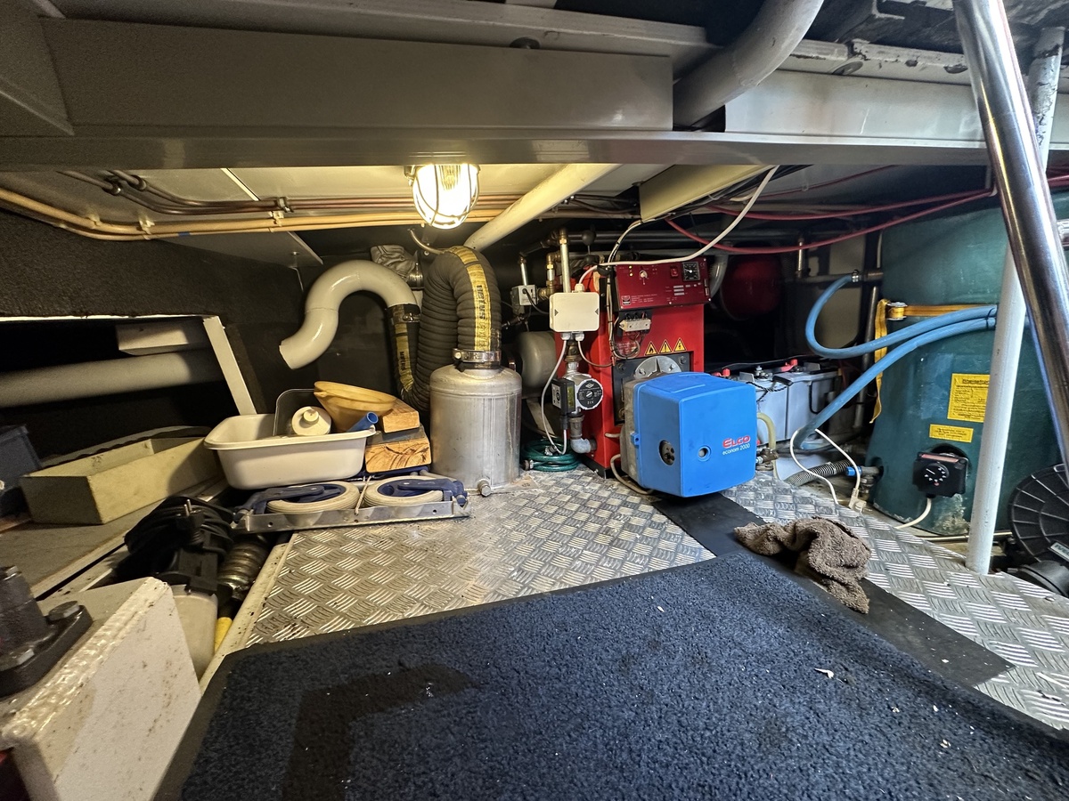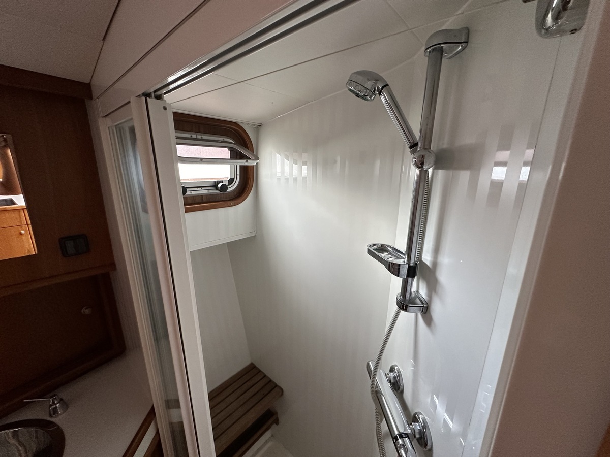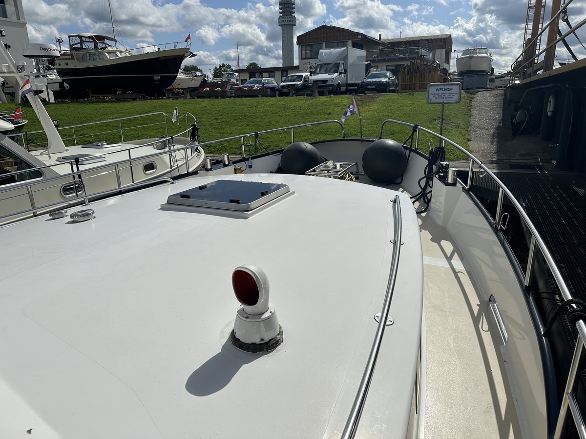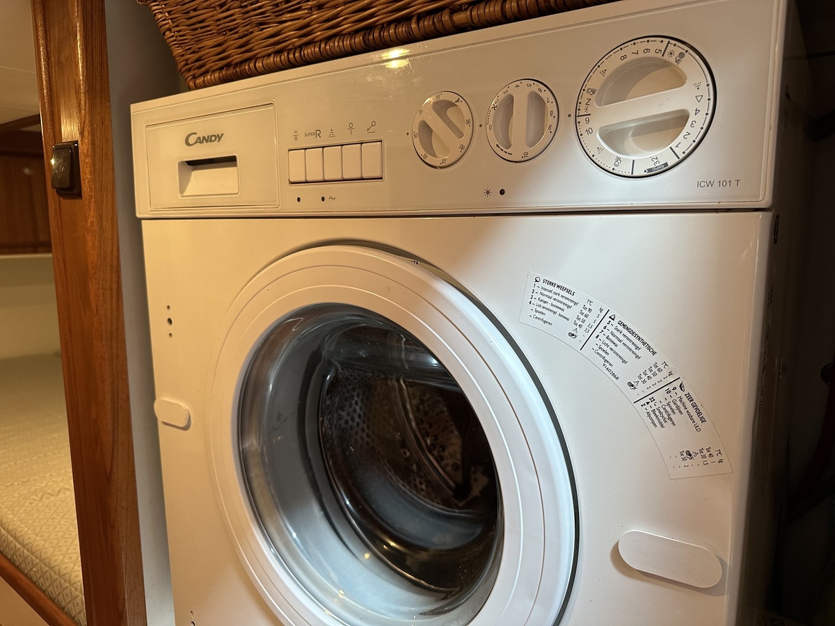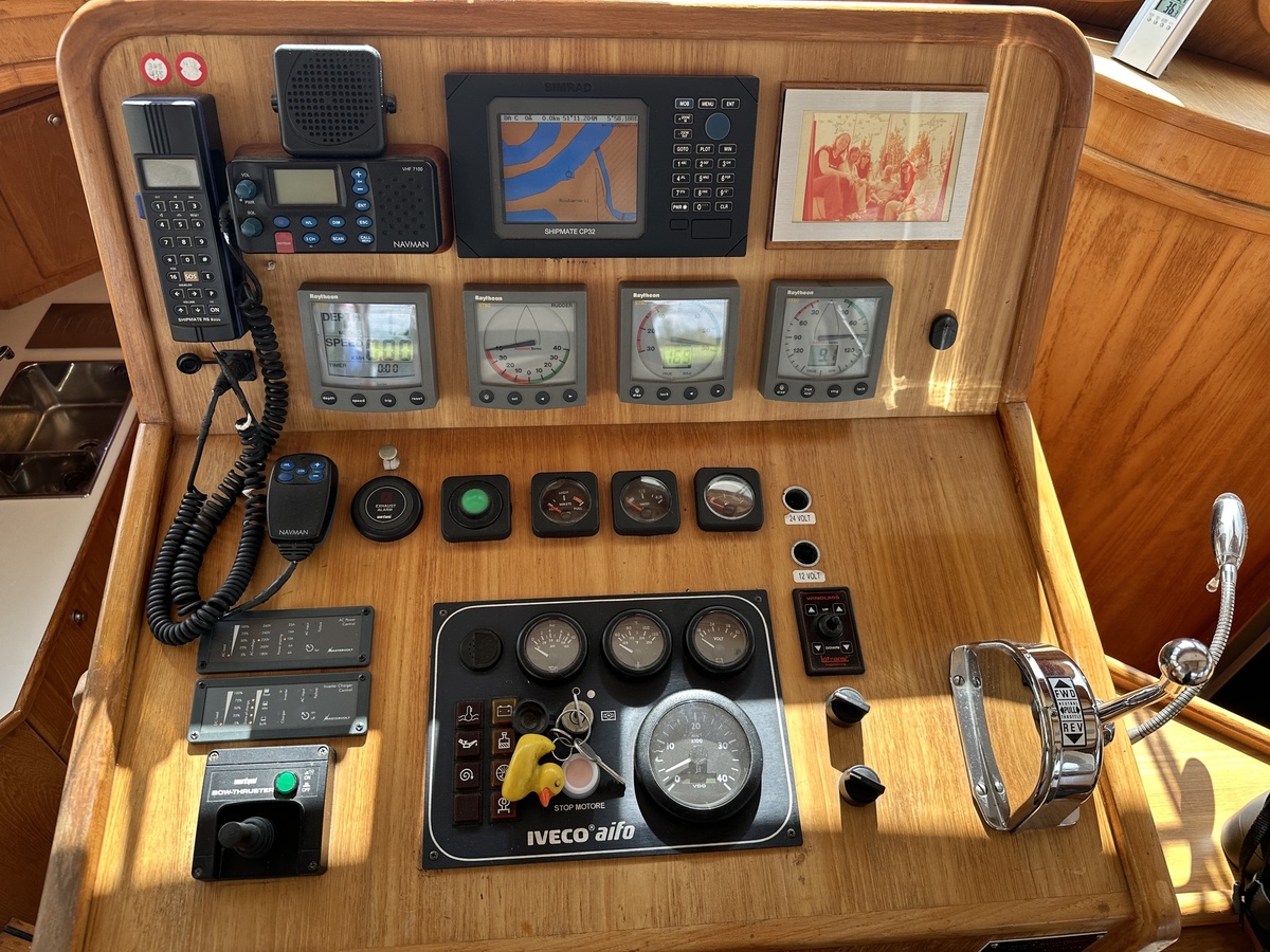 Stuurwiel HydraulischRuime Spiegelkotter ideaal om langere tijd op te verblijven vanwege de warm water verwarming en dubbele beglazing. Door de speciale ligging van de motor zijn drie ruime hutten ontstaan. Het schip wordt verkocht door de eerste eigenaar.