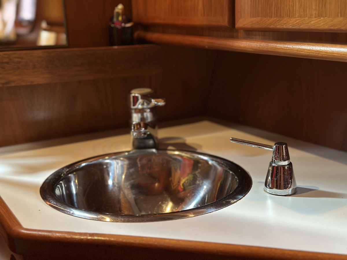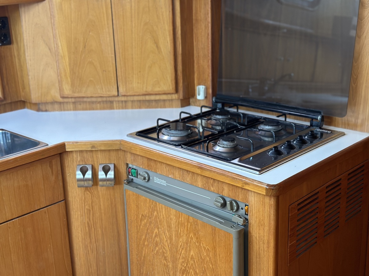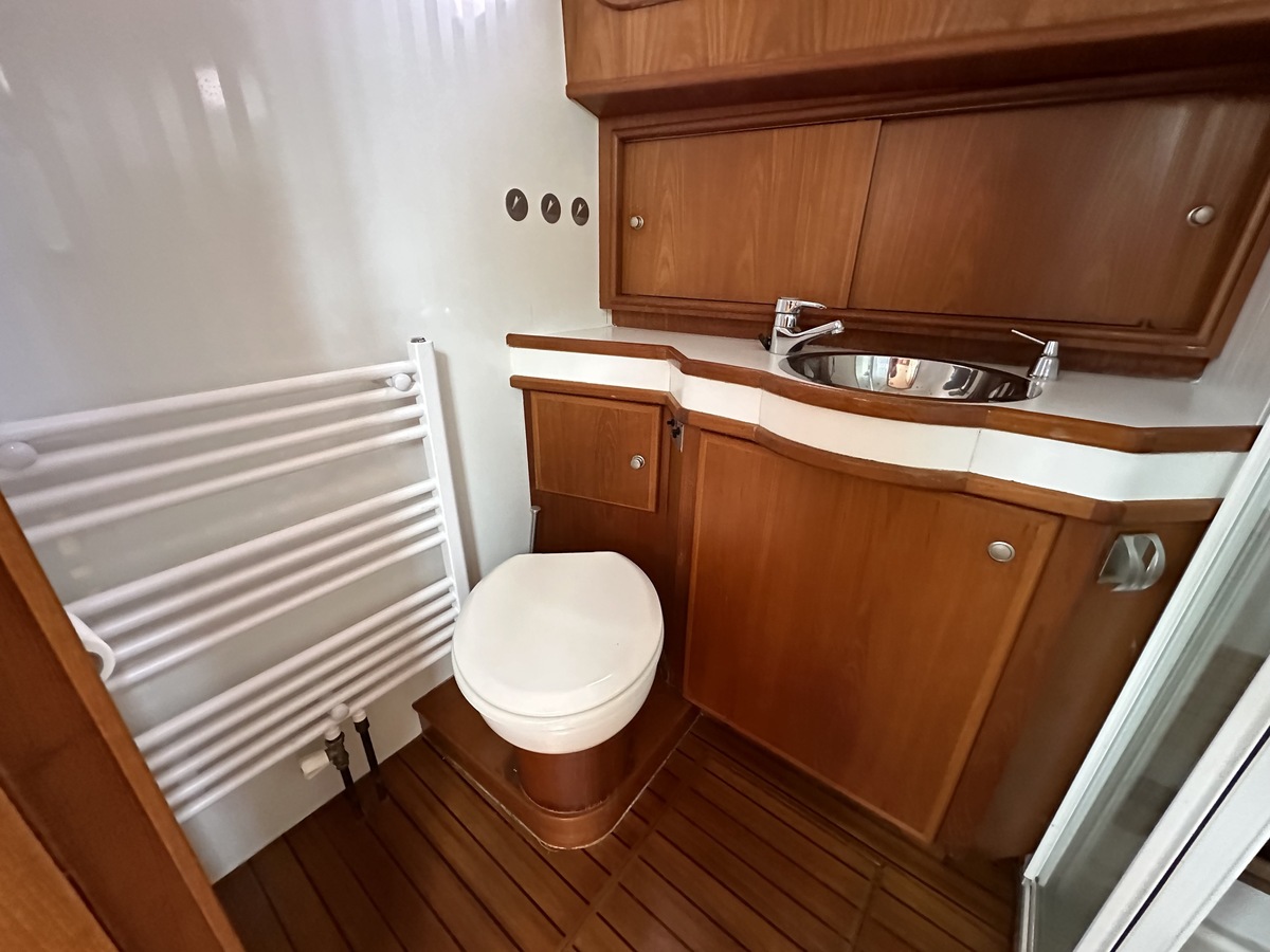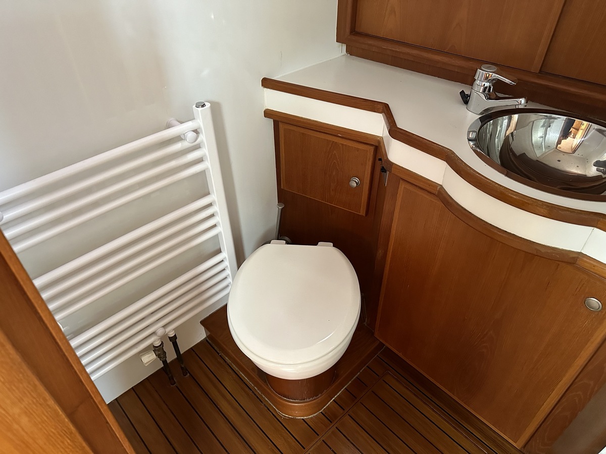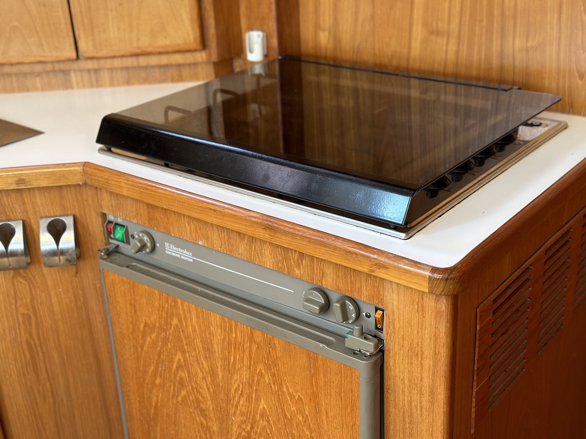 Stuurwiel HydraulischRuime Spiegelkotter ideaal om langere tijd op te verblijven vanwege de warm water verwarming en dubbele beglazing. Door de speciale ligging van de motor zijn drie ruime hutten ontstaan. Het schip wordt verkocht door de eerste eigenaar.