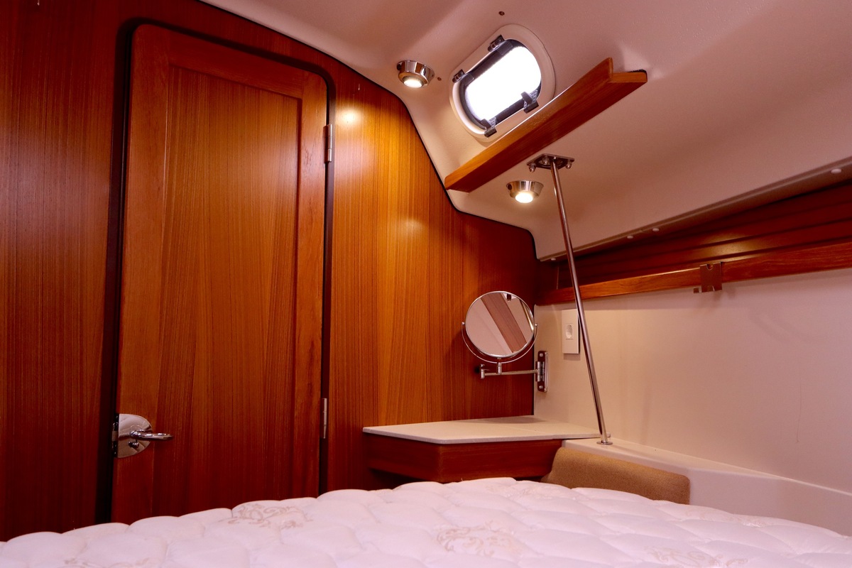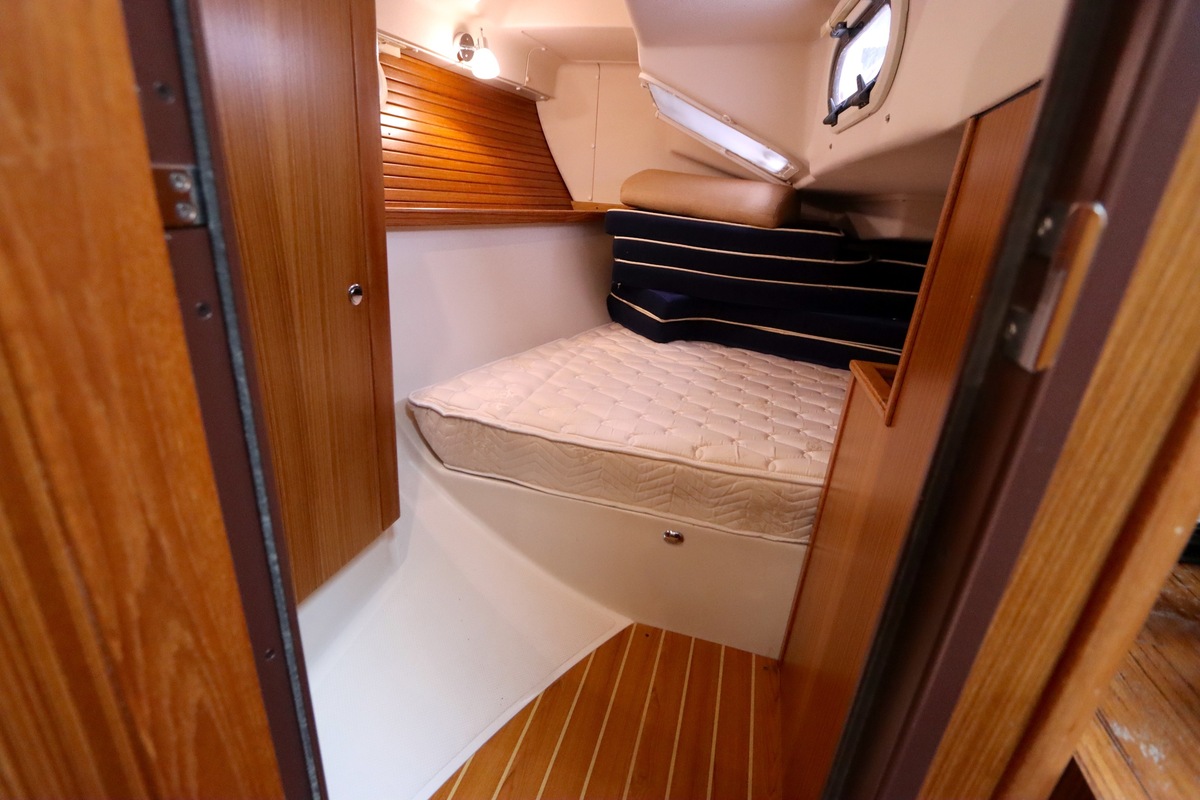 Lengte van de bedden in voorkajuit zijn 1.94m