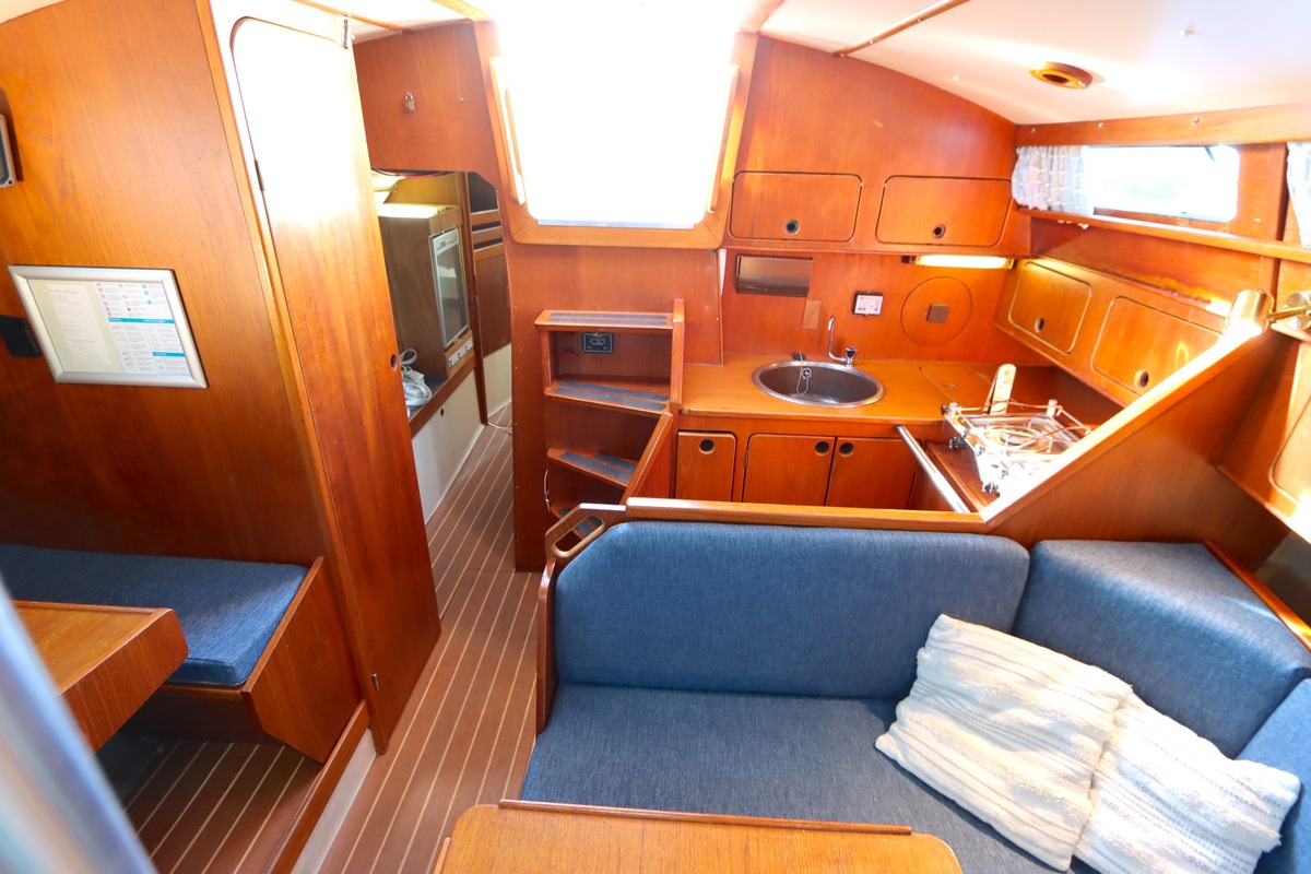 De Compromis 909 is een degelijk gebouwd Nederlands kajuitzeiljacht, ontworpen door Frans Maas en geproduceerd door Zaadnoordijk Yachtbuilders. Met een lengte van 9,35 meter biedt het schip een comfortabele ruimte voor zowel korte als lange zeiltochten. Het interieur is ruim voor een jacht van deze lengte, met een slimme indeling die slaapplekken biedt voor vier tot vijf personen, een functionele kombuis, en een gezellige salon. Bekend om zijn stabiliteit en zeewaardigheid, is de Compromis 909 geschikt voor kustwateren en met haar doorvaarthoogte van 12m kan ze ook onder de Stichtse, Hollandse, Zeeland en Haringvlietbrug door waadoor er ook vrij gevaren kan worden op de Randmeren en Zeeuwse Delta.