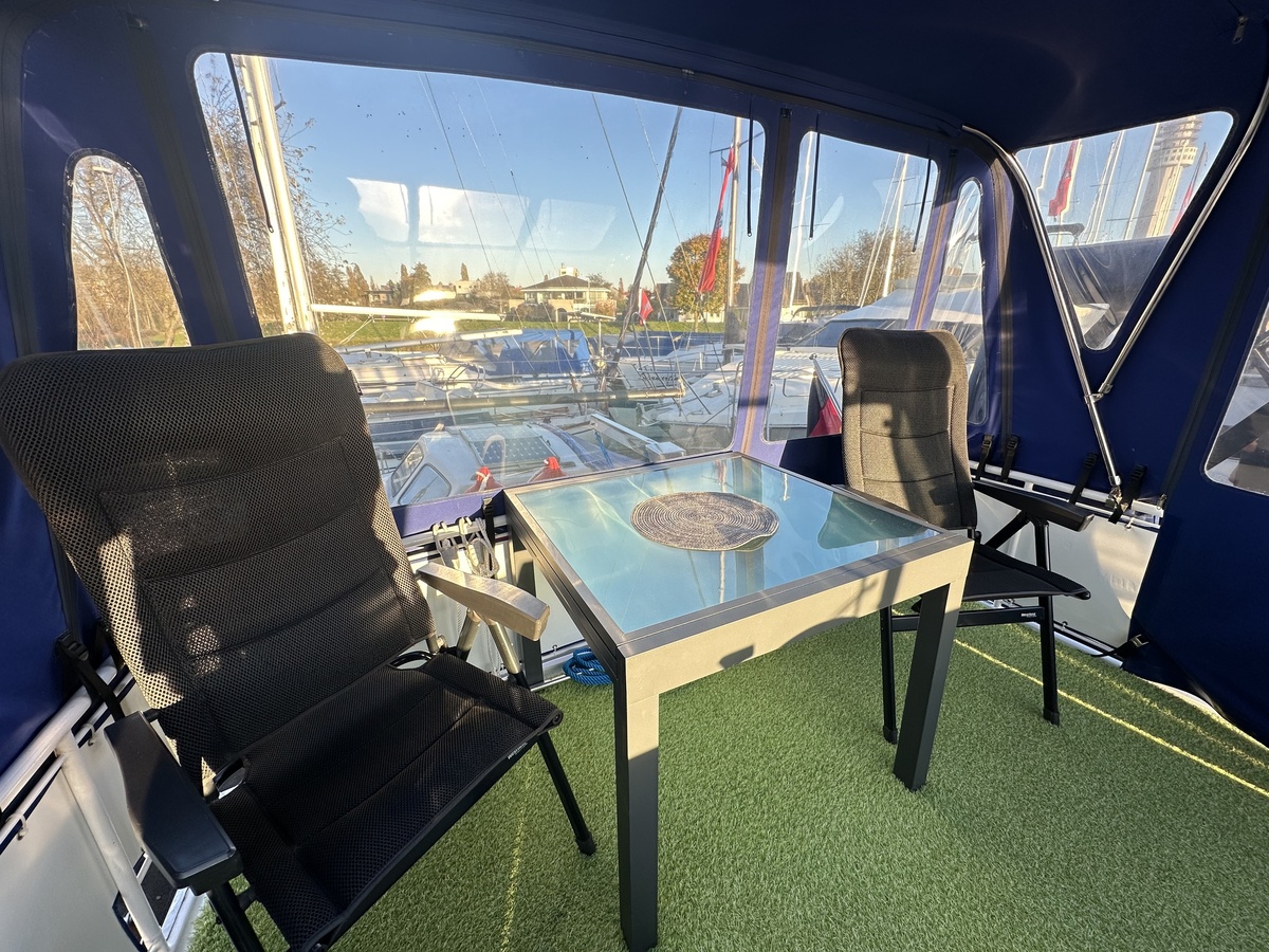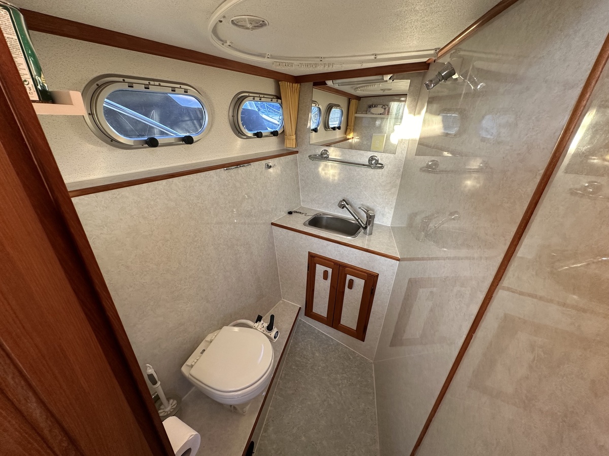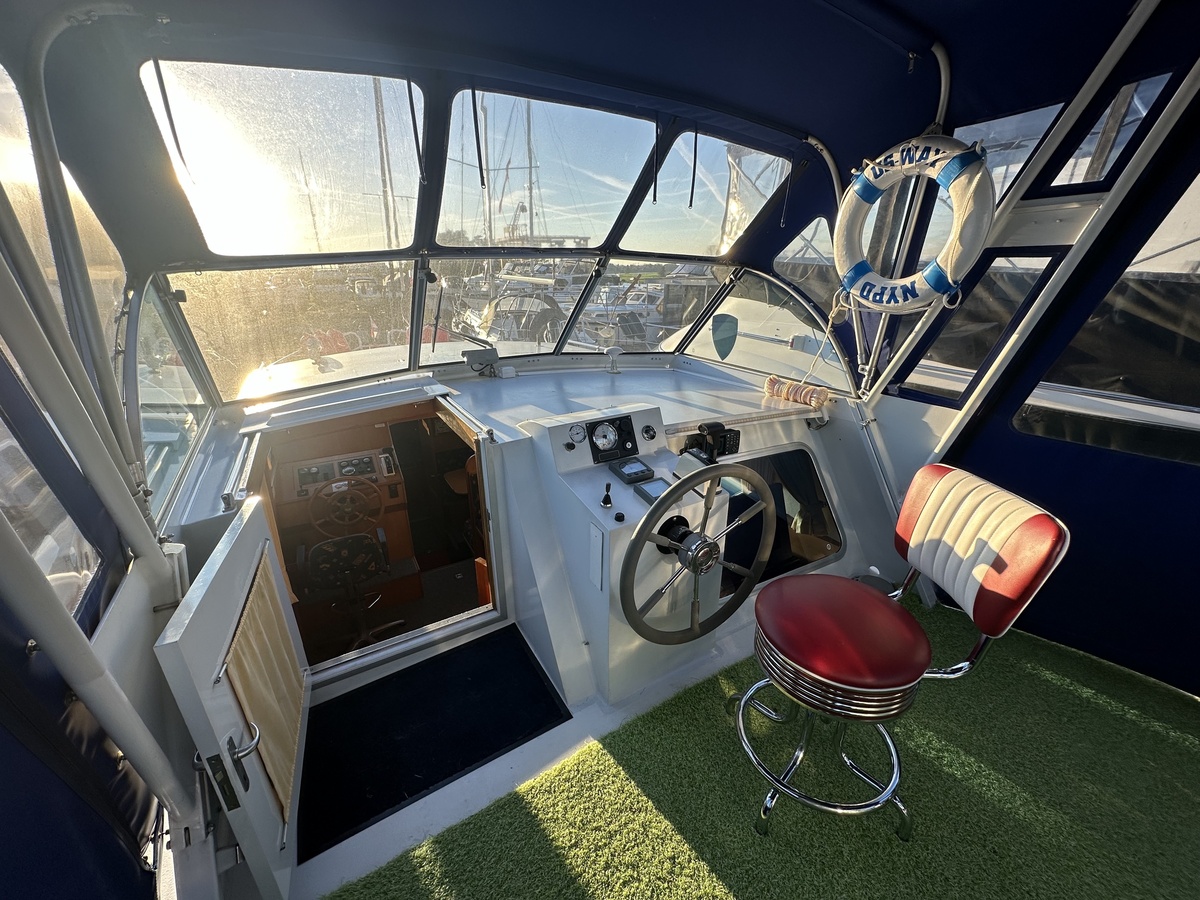 Pedro Skirion met twee hutten, toilet met douche, boegschroef, vuilwatertank, verwarming, binnen en buiten stuurstand