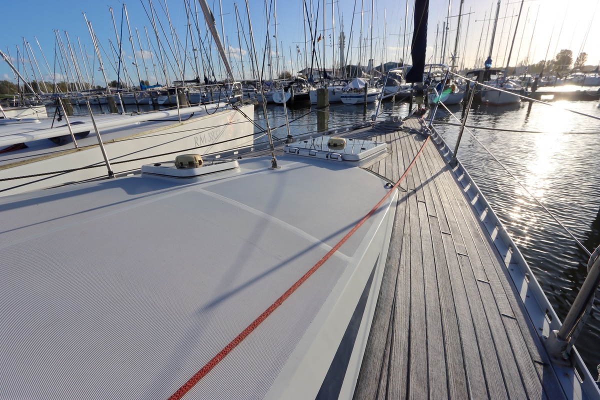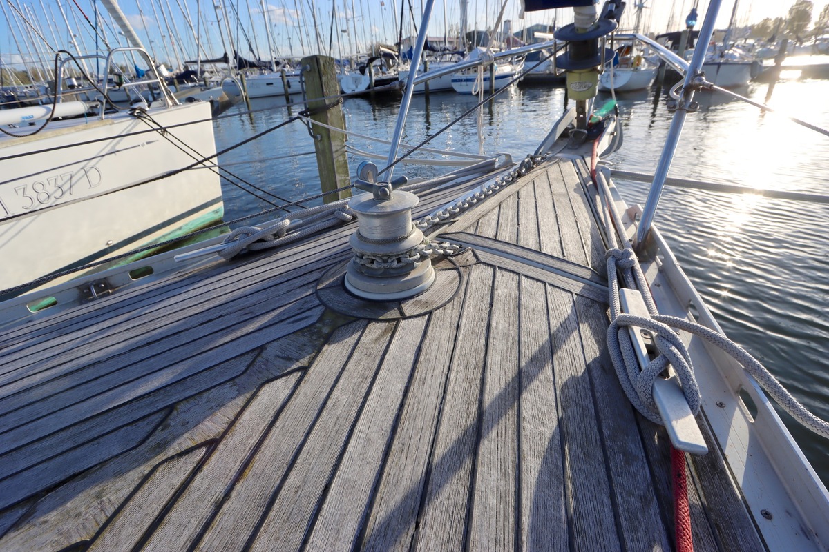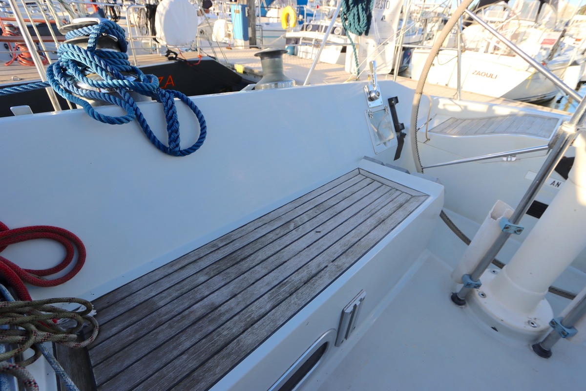 Teakdek matig, sommige plekken slecht.