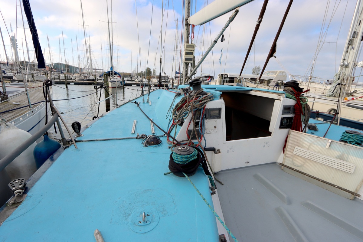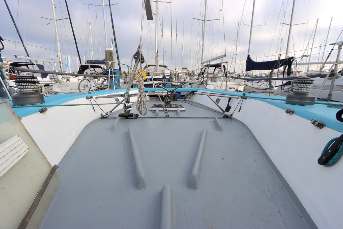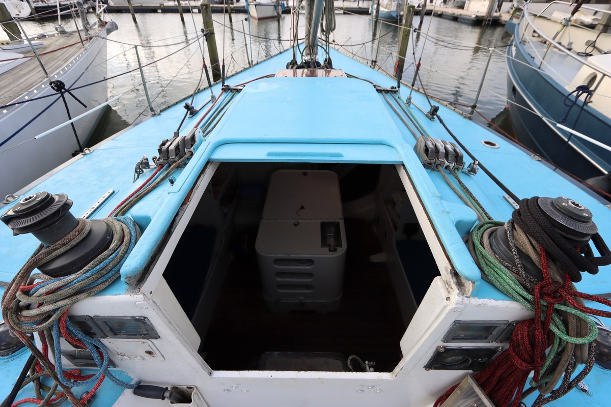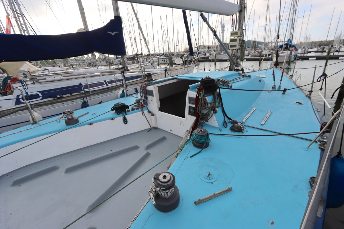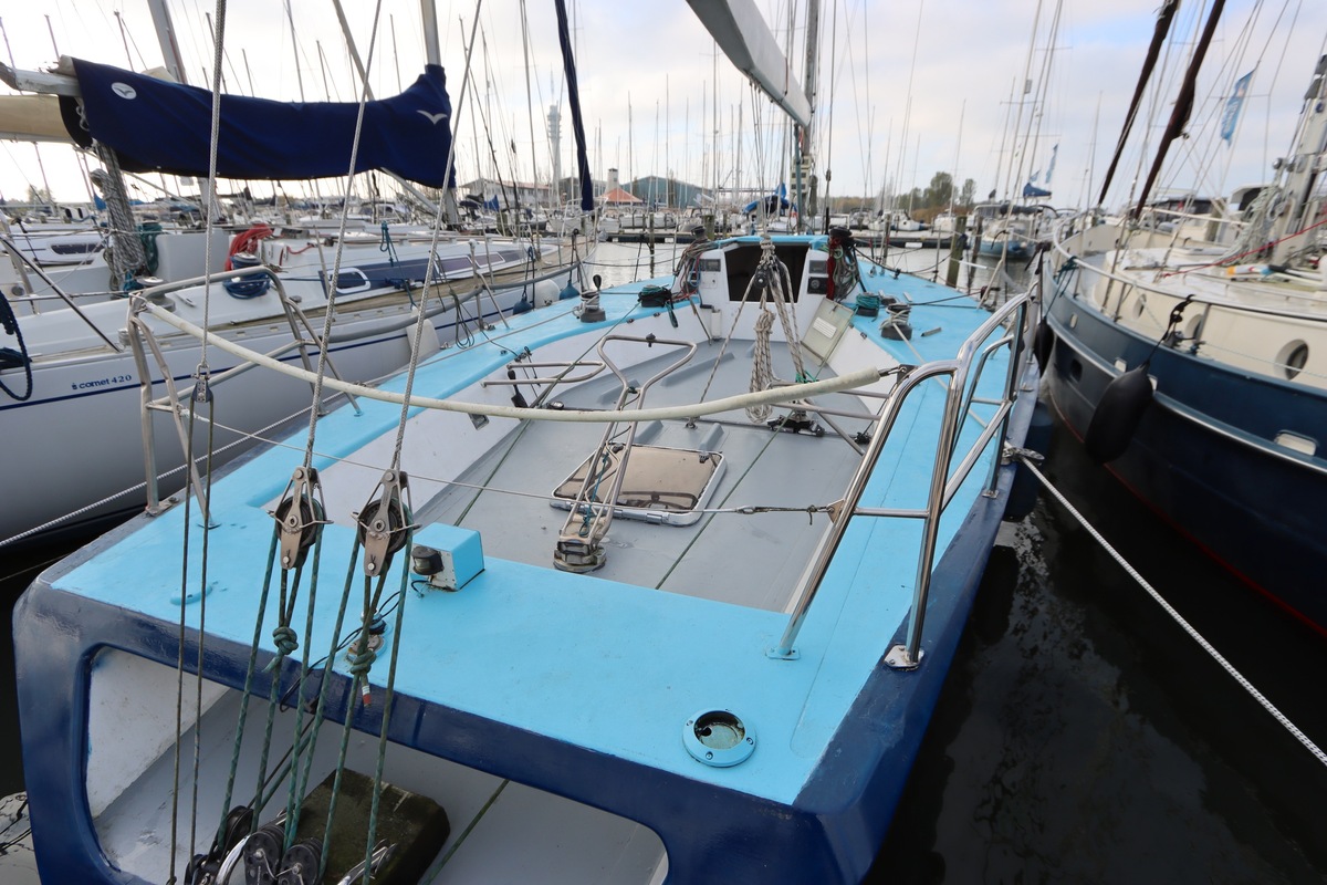 A furling was added in 2019 to make the boat more practical for smaller crews. The engine was replaced by a refurbished Volvo Penta MD 2040 with a folding prop (2018). Three hatches were installed for more licht in the bow, the cabin, and aft (also as an escape hatch aft). The rod-rigging was replaced in 2022. The deck was repainted this summer.