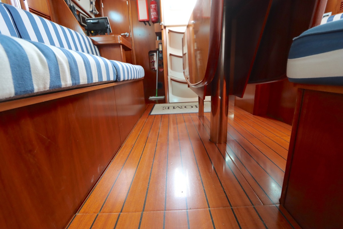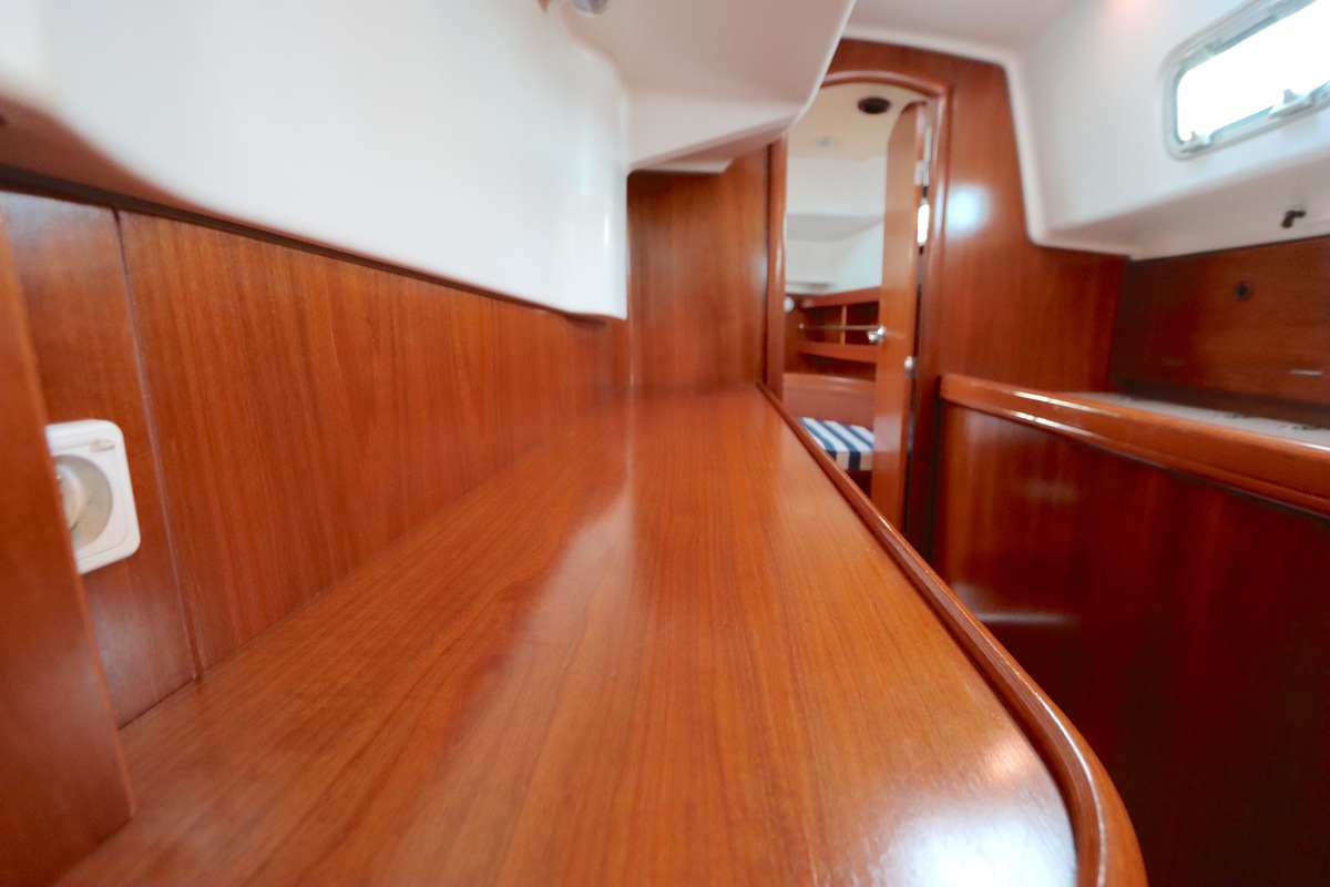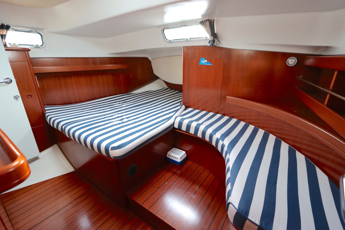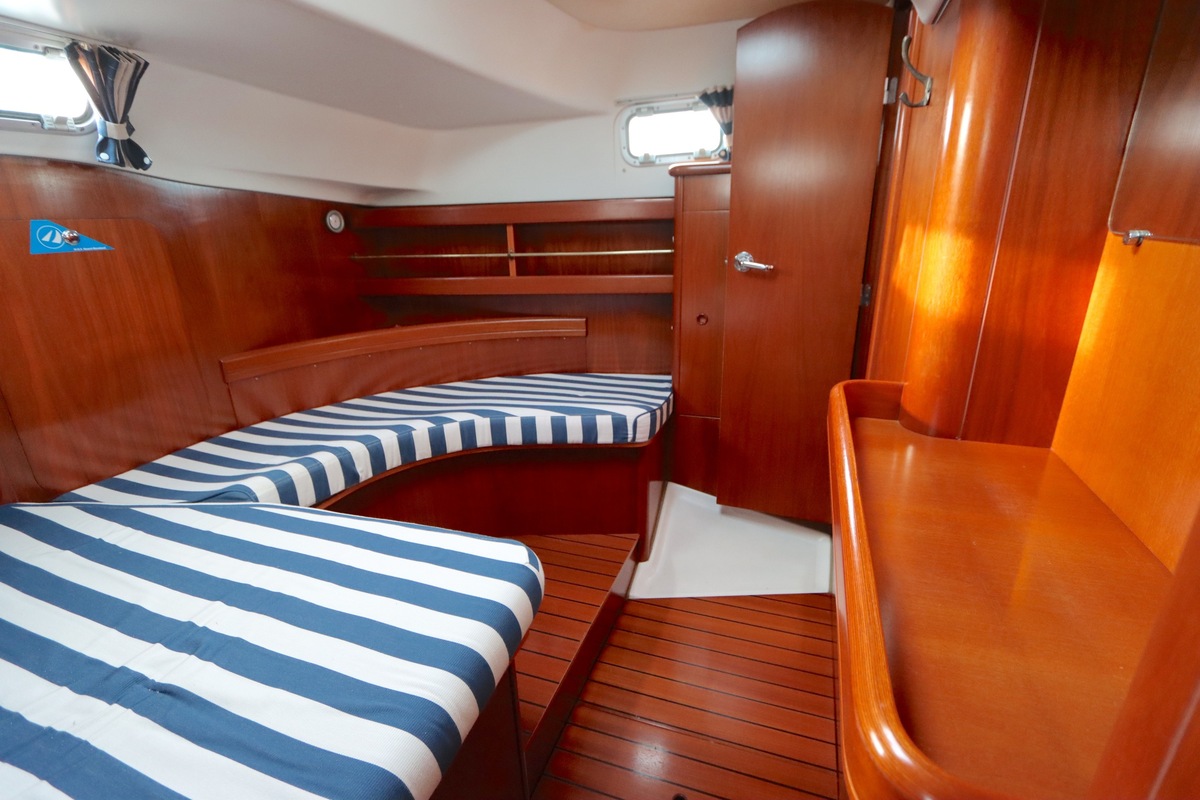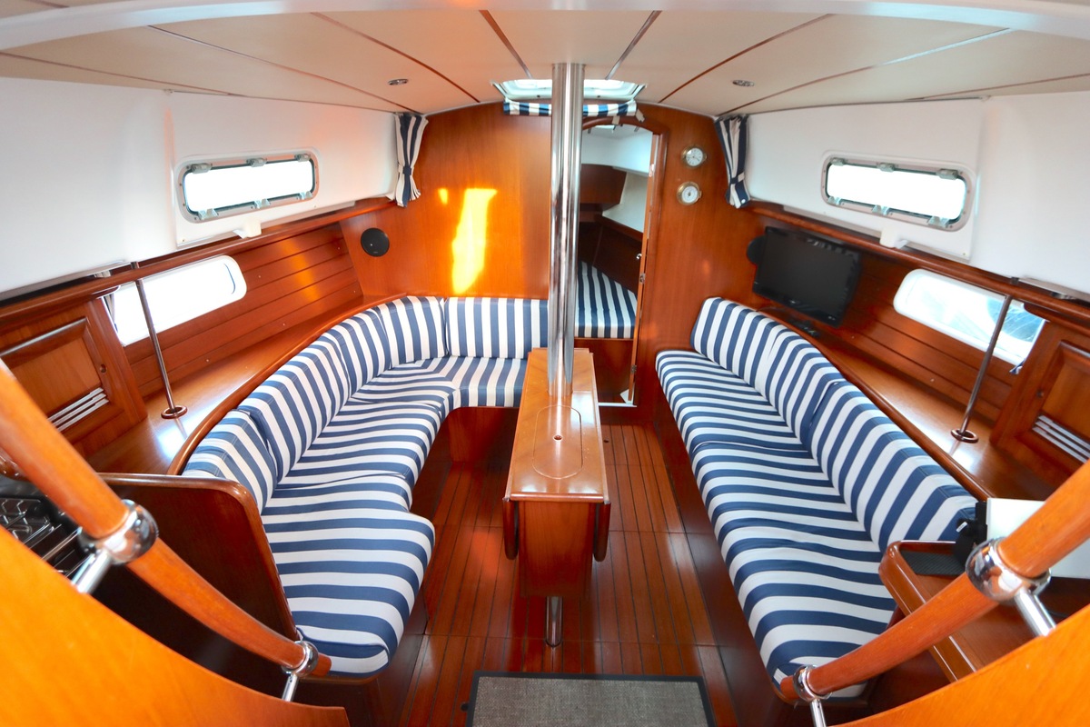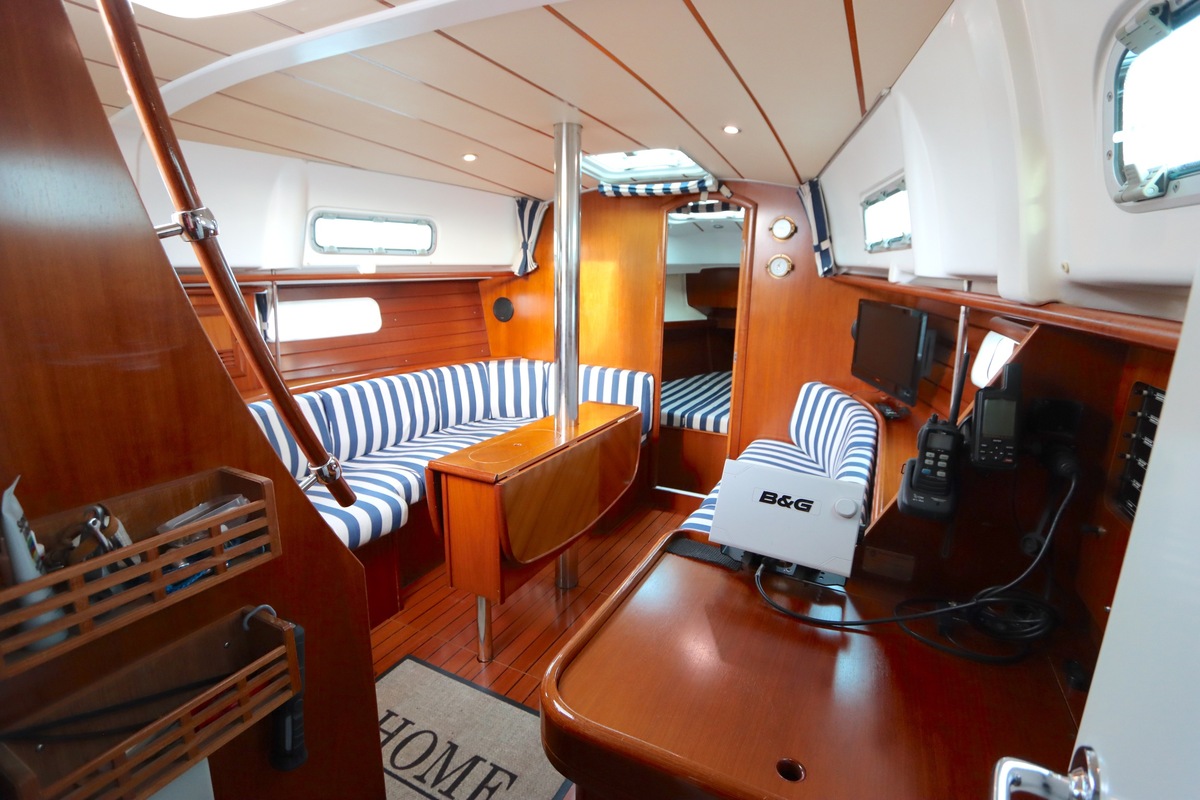 Het interieur is licht en ruim, met een gezellige salon, een goed uitgeruste kombuis en een luxe eigenaarshut achterin met een vrijstaand tweepersoonsbed. De vaareigenschappen zijn ideaal voor zowel lange tochten als kustzeilen.