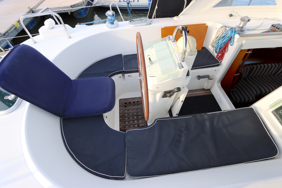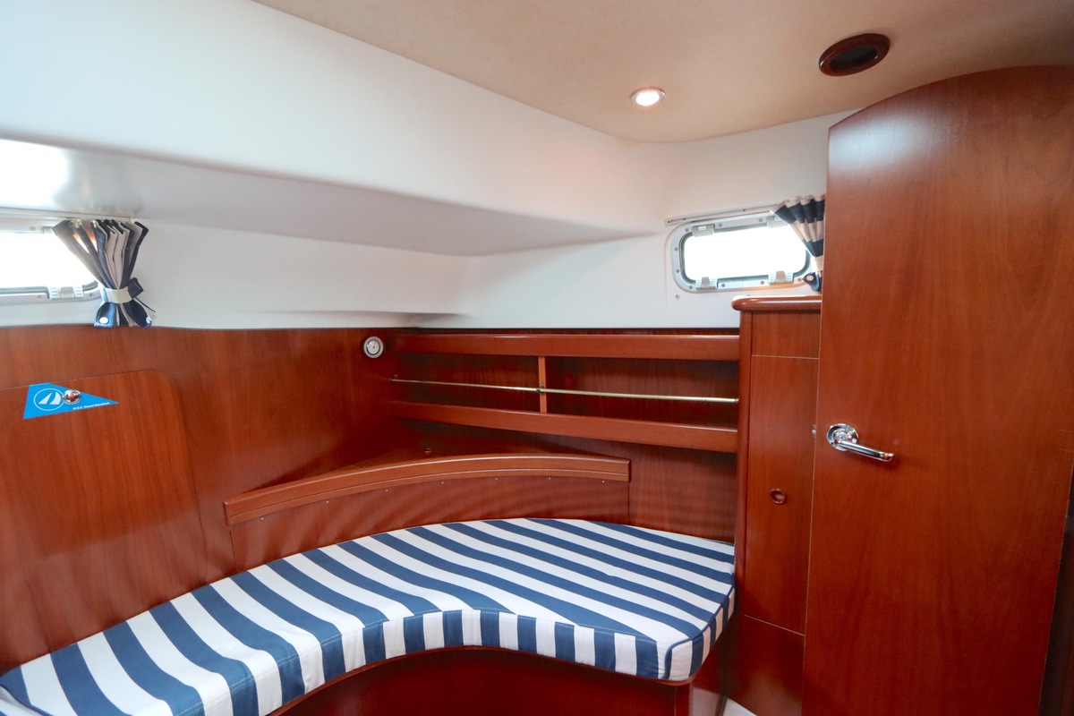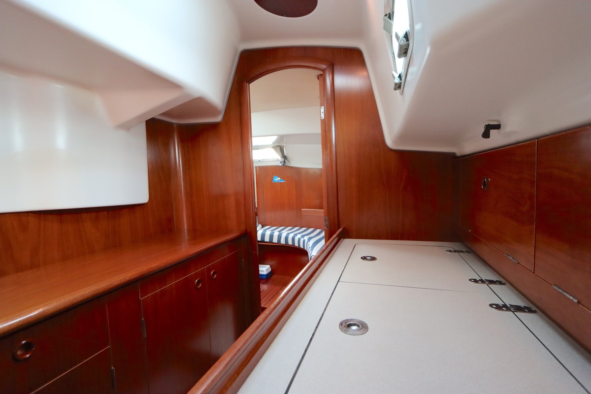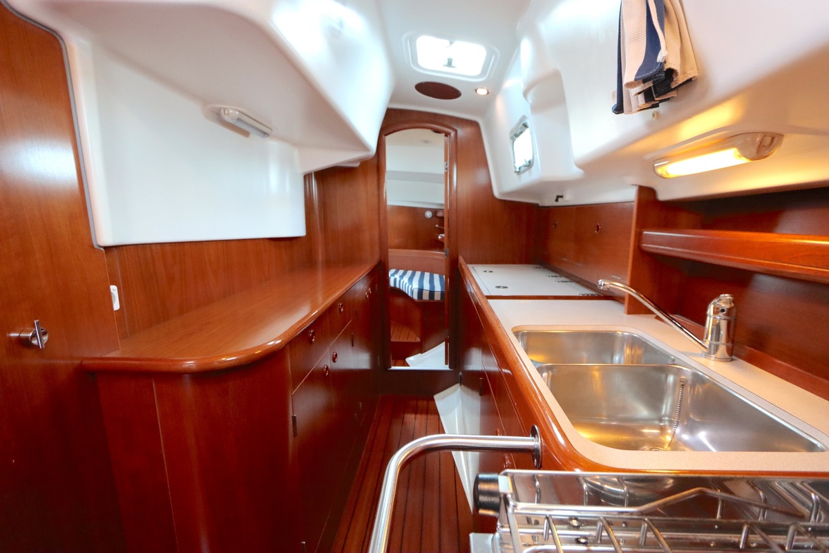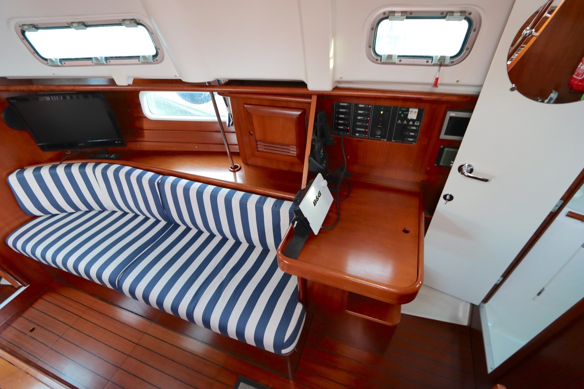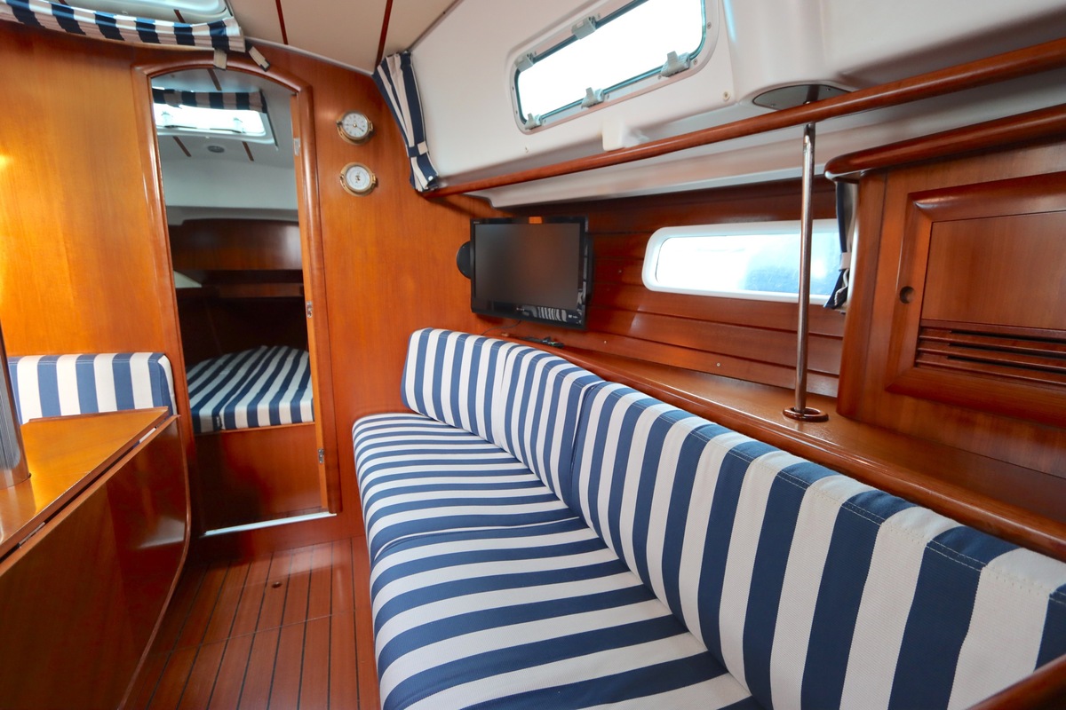 Het interieur is licht en ruim, met een gezellige salon, een goed uitgeruste kombuis en een luxe eigenaarshut achterin met een vrijstaand tweepersoonsbed. De vaareigenschappen zijn ideaal voor zowel lange tochten als kustzeilen.