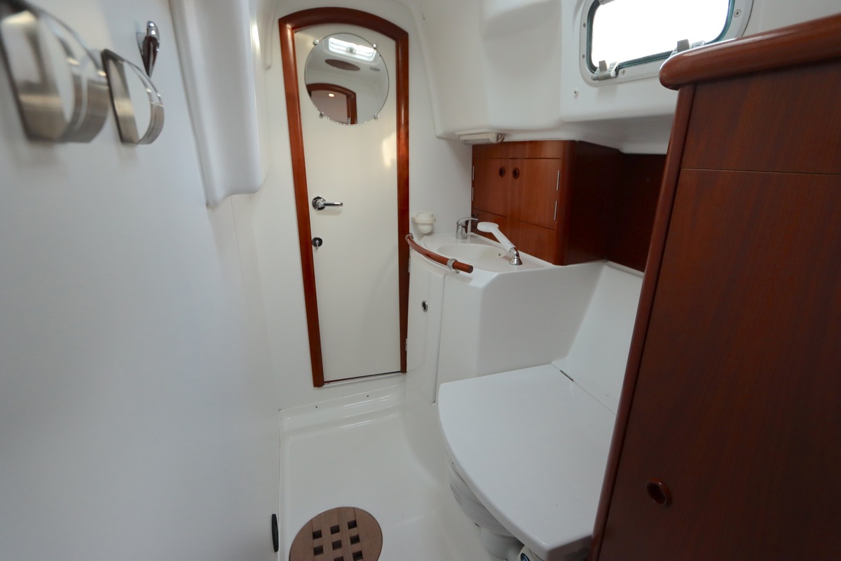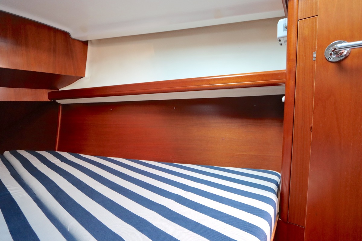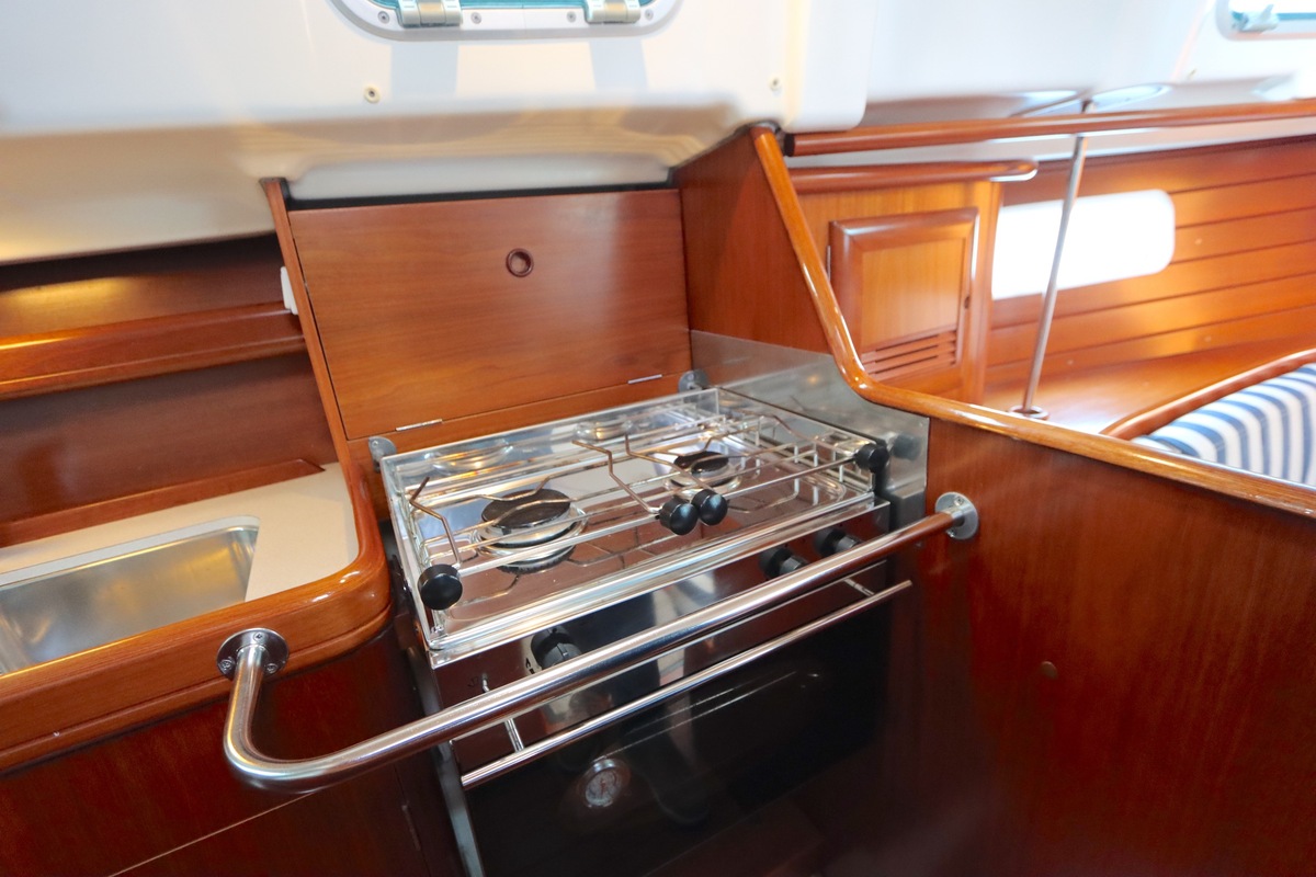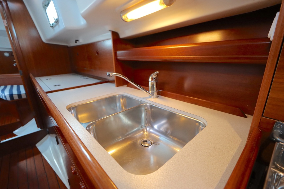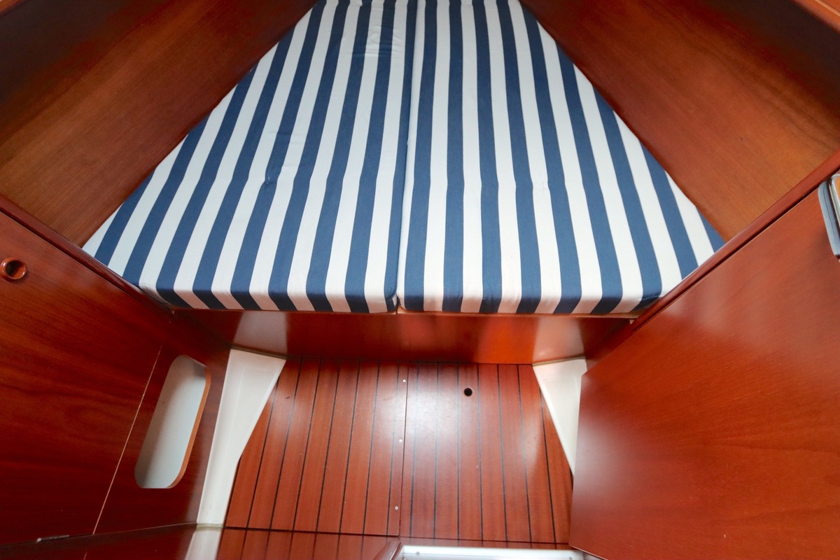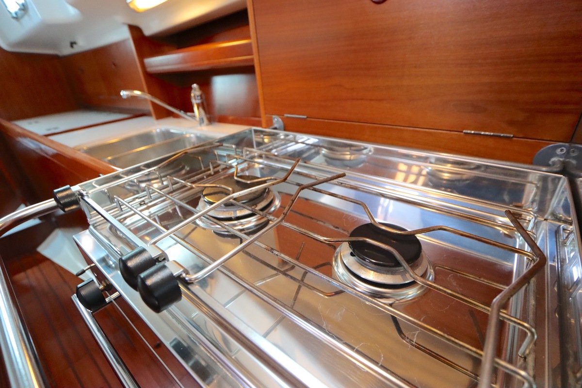 Het interieur is licht en ruim, met een gezellige salon, een goed uitgeruste kombuis en een luxe eigenaarshut achterin met een vrijstaand tweepersoonsbed. De vaareigenschappen zijn ideaal voor zowel lange tochten als kustzeilen.