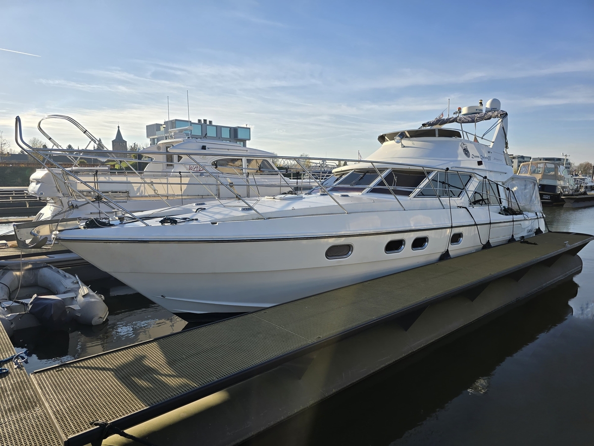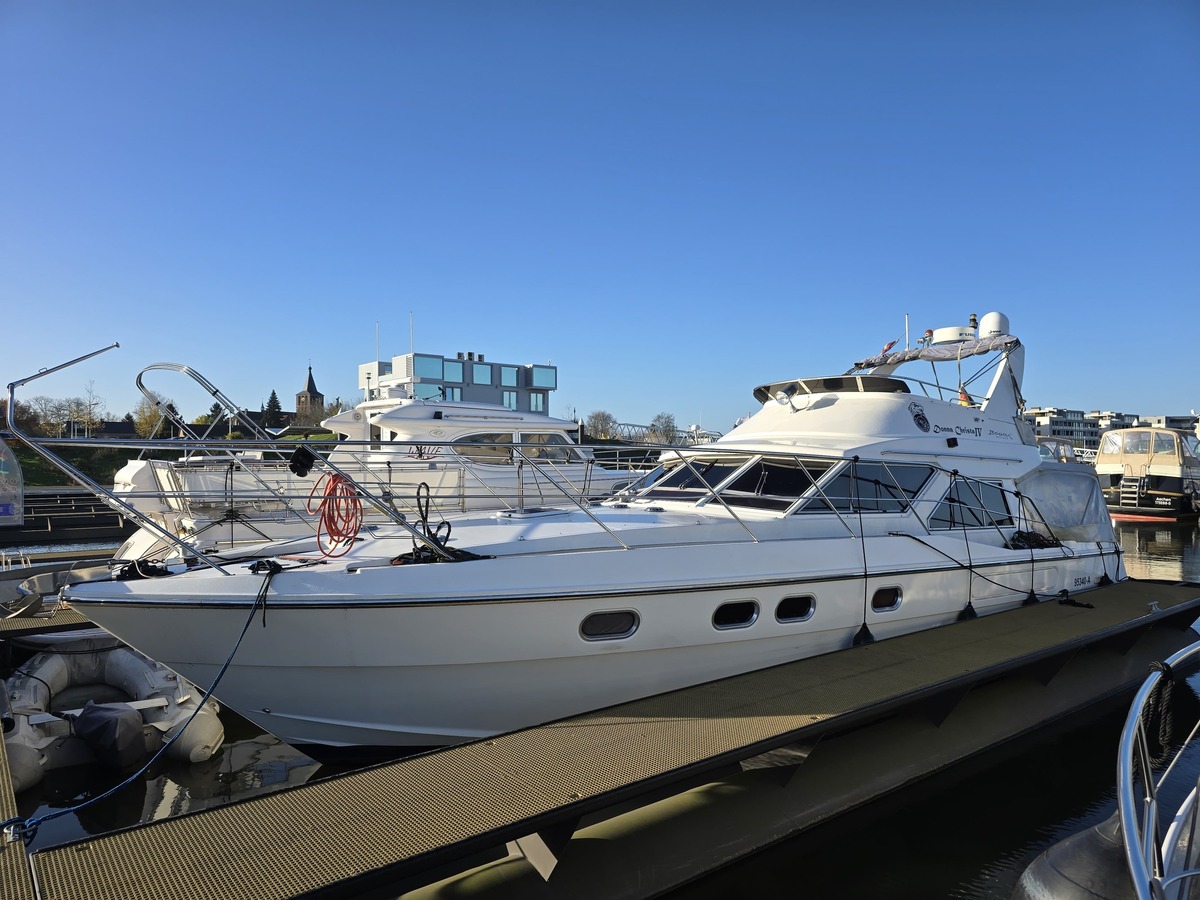Ruim jacht met flybridge en voorzien van alle gemakken, geschikt voor vakanties op het water, generator, 2 badkamers, 3 hutten, teak achterdek