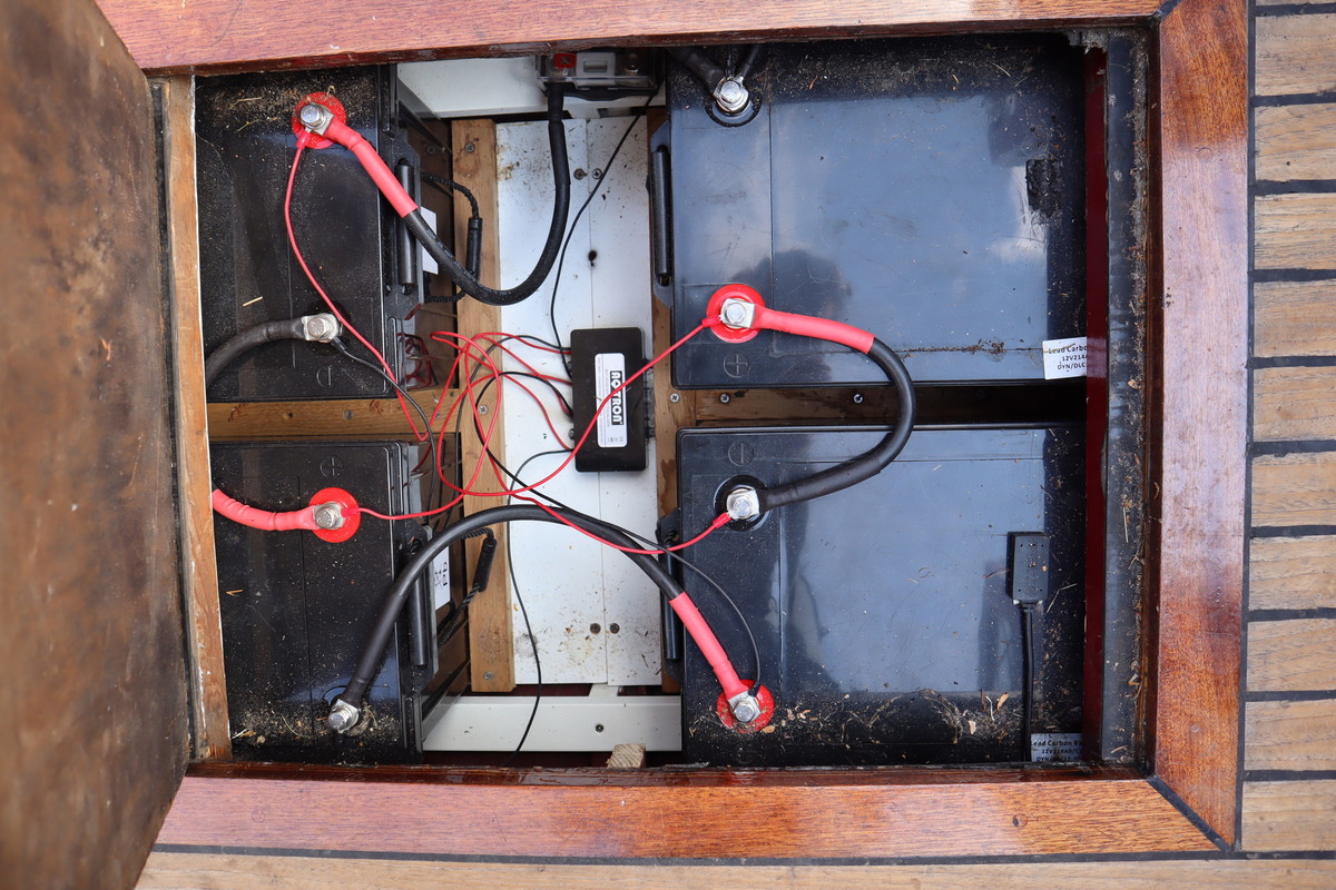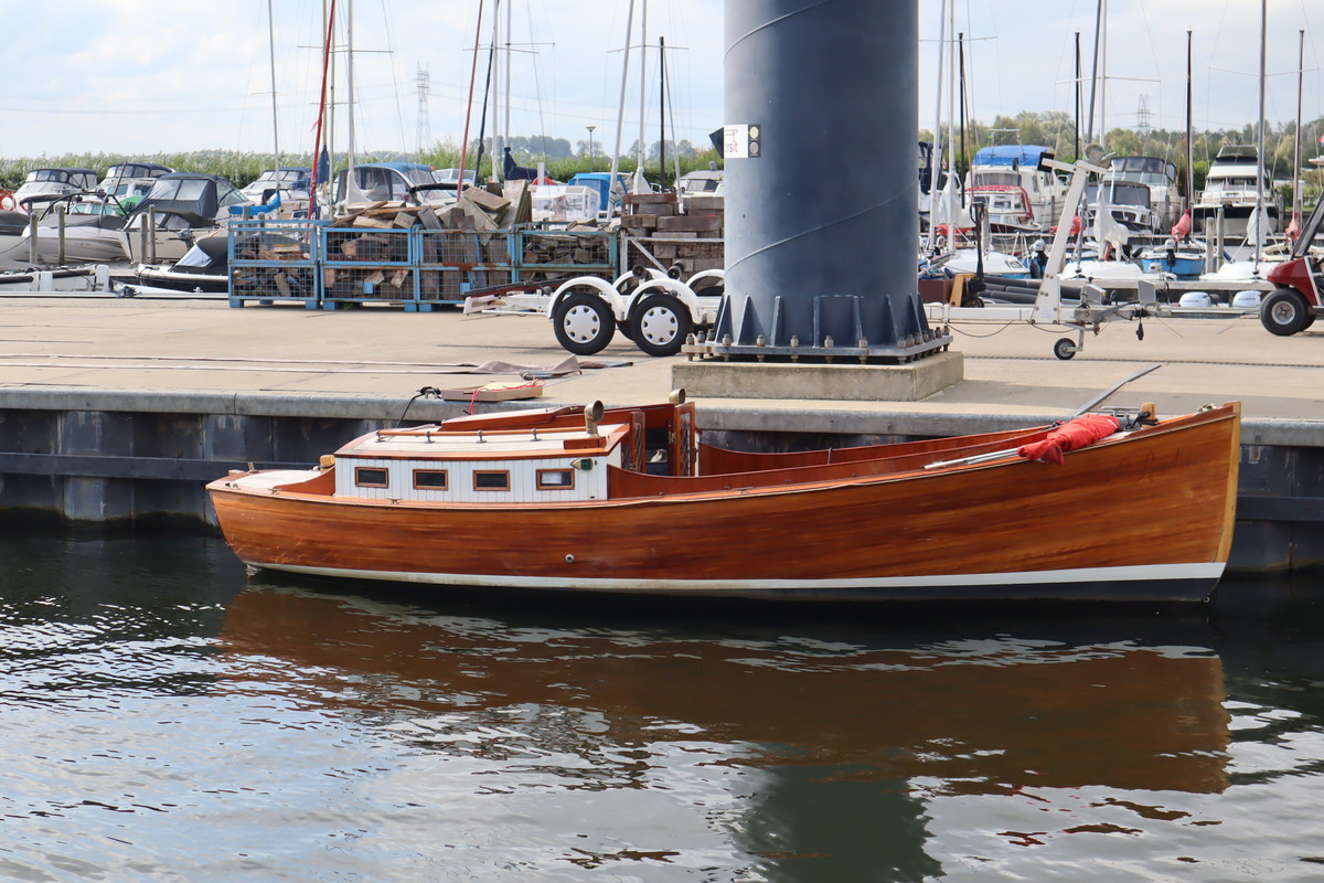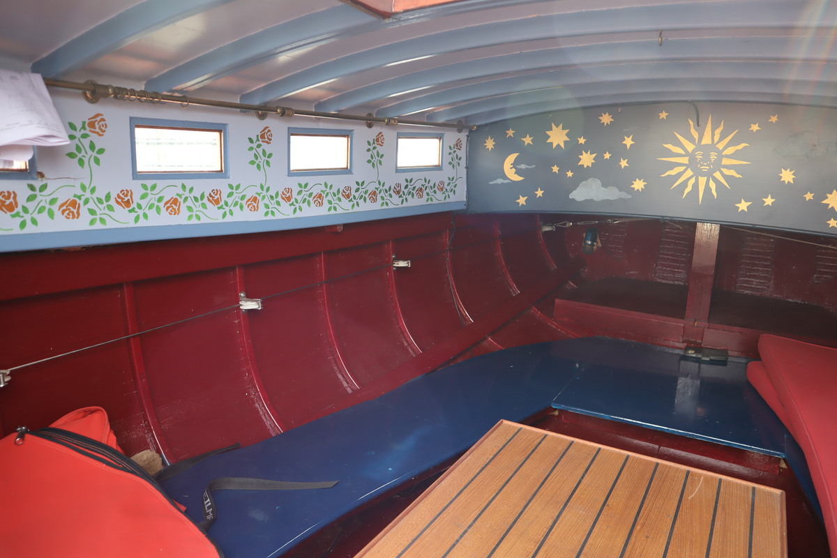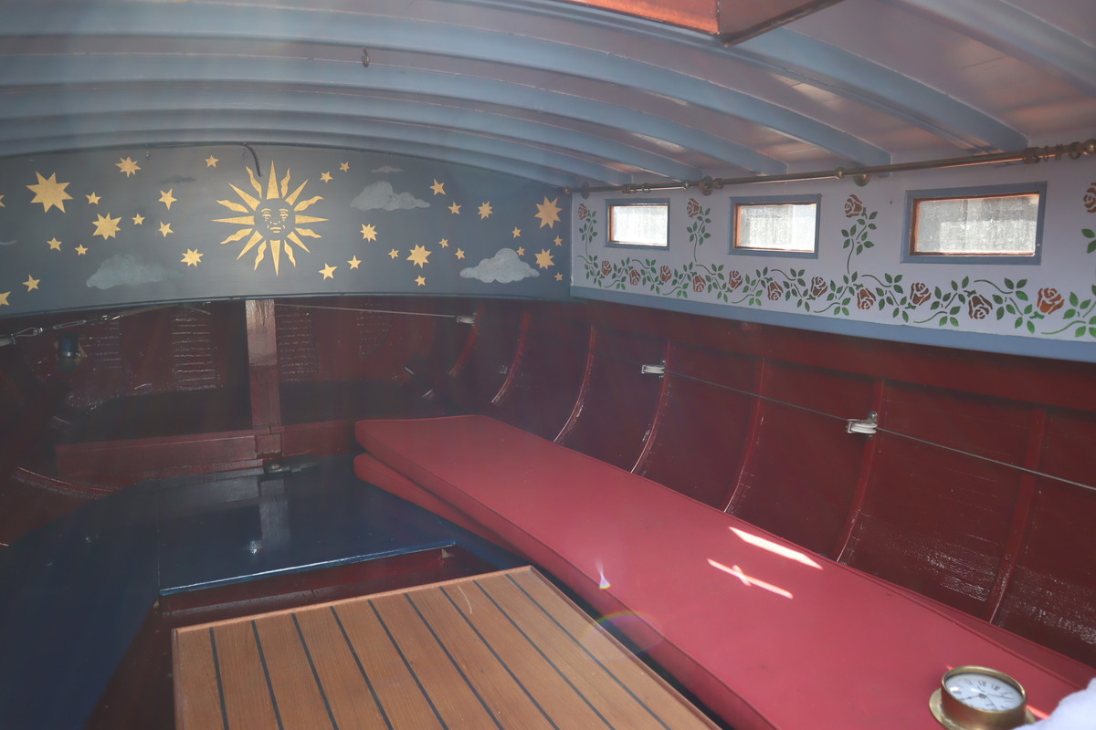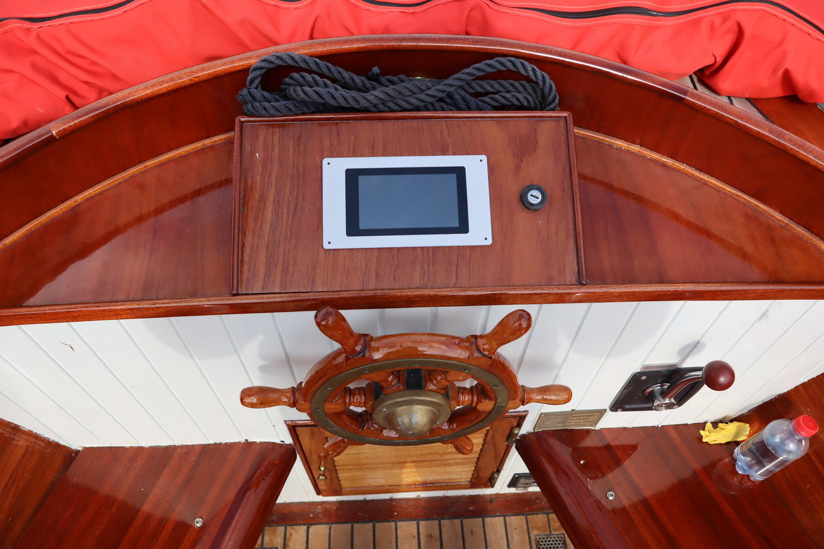 De sloep vaart geruisloos en door de 4 accu’s vaar je tot wel 12 uur aan een stuk. De houten romp is door de huidige eigenaar helemaal opgeknapt. De bodem staat tot net boven de waterlijn in de Epoxy.