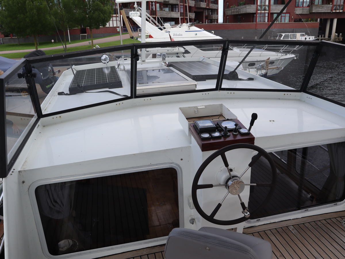 De "Kendo V" is uitgerust met de nodige navigatiemiddelen, waaronder een dieptemeter, roerstandaanwijzer en een marifoon, zodat u altijd veilig en geïnformeerd vaart. Manoeuvreren wordt kinderspel dankzij de elektrische boeg- en hekschroef, die zelfs in krappe havens uitkomst bieden. Daarnaast beschikt het schip over walstroom, een omvormer van 1000W en zonnepanelen, waardoor u optimaal van uw tijd op het water kunt genieten zonder zorgen over stroom.