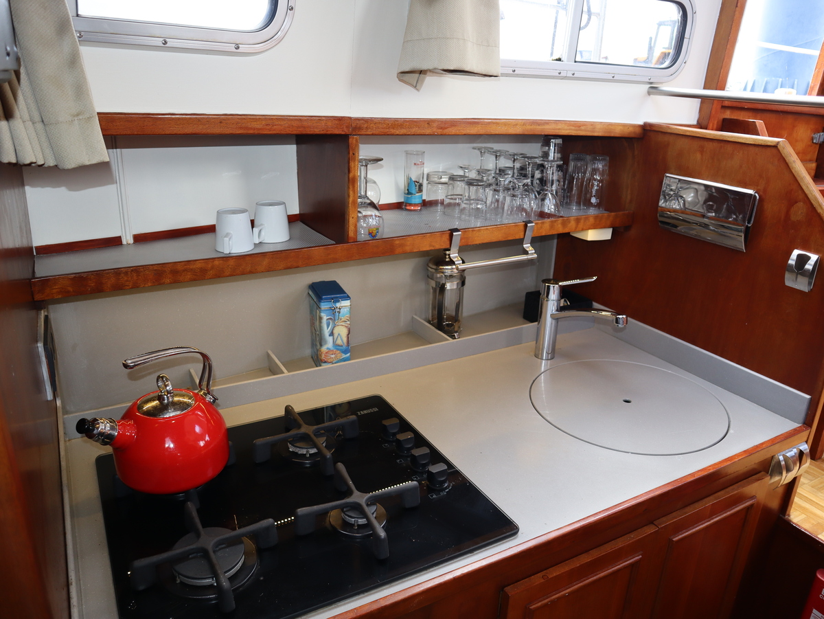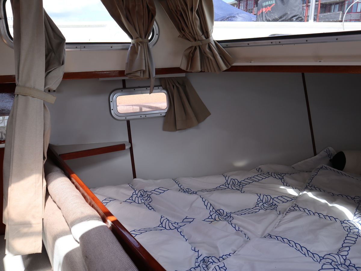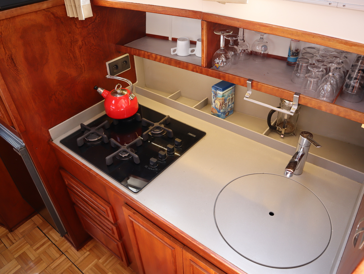 Stap aan boord en laat u verrassen door de stahoogte van maar liefst 200 cm. De "Kendo V" is voorzien van een comfortabele hut, een gezellige salon en een compleet uitgeruste kombuis. Hier vindt u alles wat u nodig heeft voor heerlijke maaltijden aan boord een 4-pits gasfornuis, een oven/magnetron combi en een koelkast met vriesvak. En na een dag op het water? Dan frist u zich op in de douche in de badkamer.