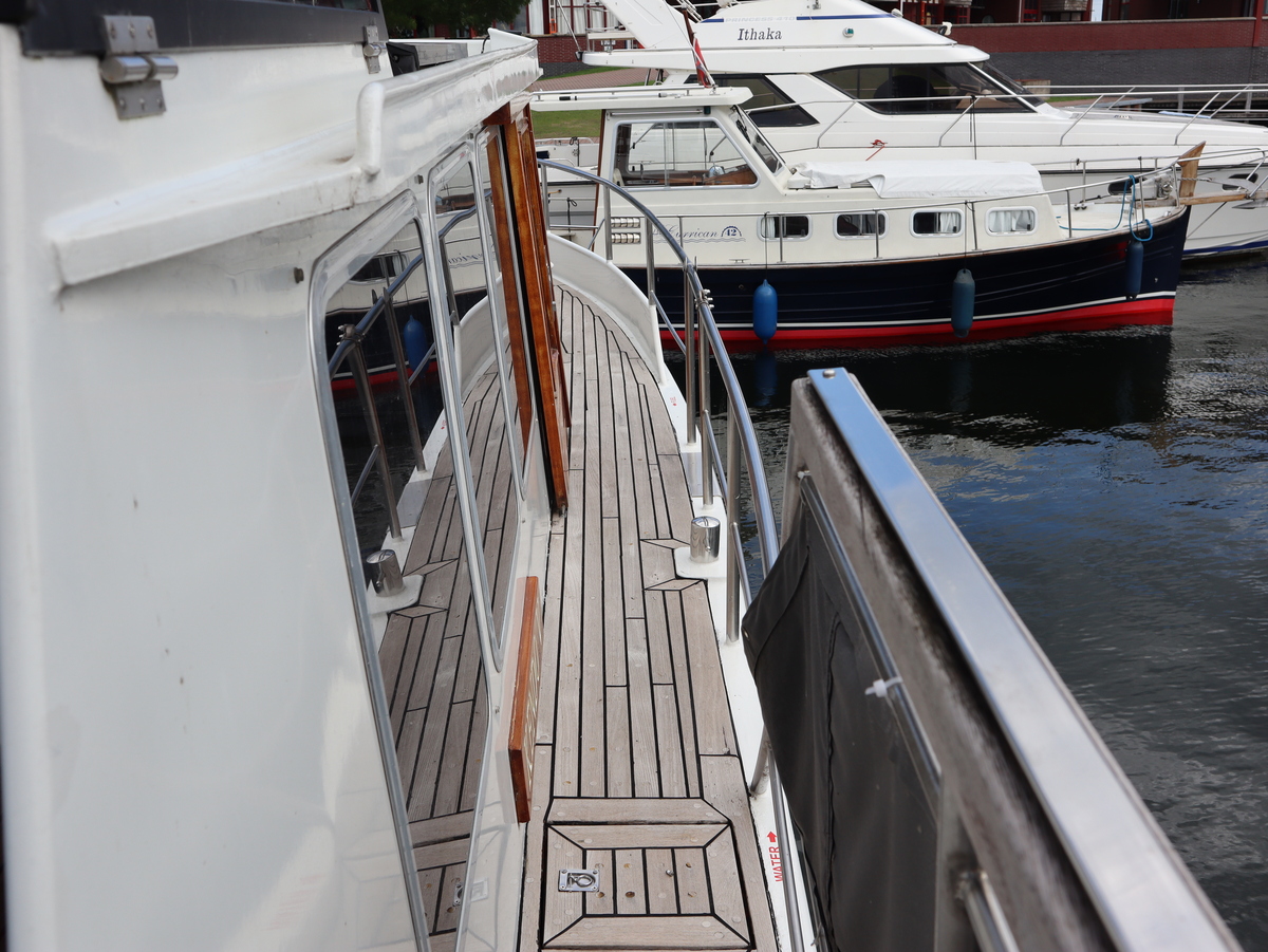 Dit schip is compleet uitgerust met een zwemplatform, een bijboot met 2 pk buitenboordmotor en davits. De elektrische ankerlier, dekwaspomp en het dekzeil voor de kuip dragen bij aan het vaarcomfort en gemak. De "Kendo V" is een degelijk schip met karakter, perfect voor de liefhebber van klassieke lijnen en bewezen betrouwbaarheid.