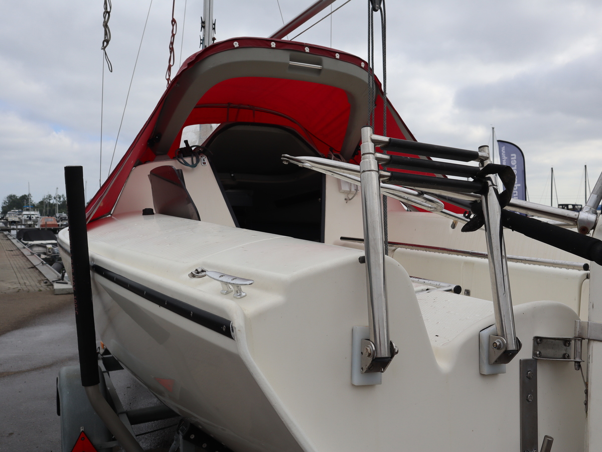 Deze modern ogende Dehler 18 uit 1995, met gloednieuwe zeilen uit 2024, is jouw ticket naar vrijheid. Licht, wendbaar en verrassend ruim voor haar formaat. Dankzij de bijbehorende trailer neem je "Roodkapje" eenvoudig mee, waar het avontuur ook roept. Door de ophaalbare kiel is bijna elke plek bereikbaar. De nieuwe zeilen maken de boot snel en in combinatie met de gennaker ook geschikt voor wedstrijden.
