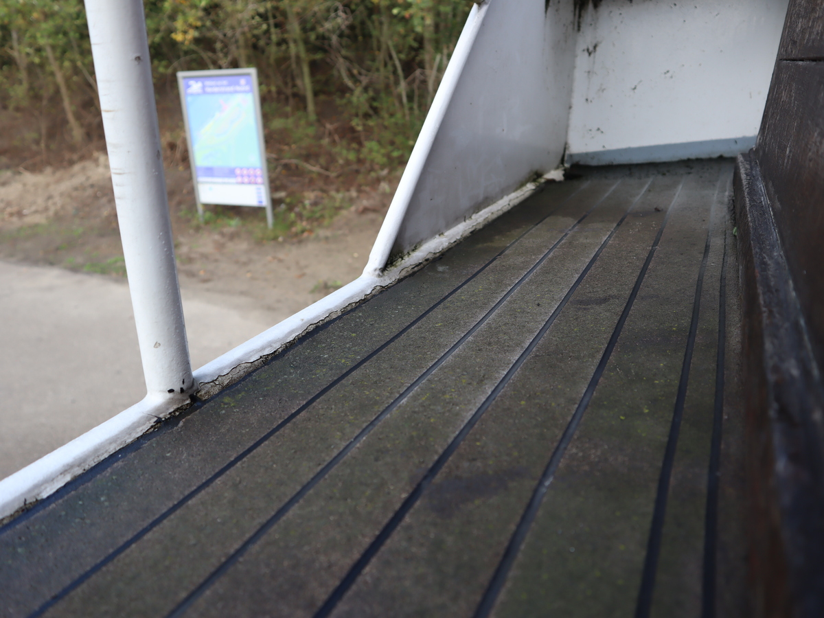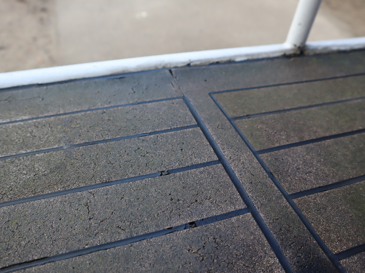 De buitenkant heeft kurkteak inleg wat voor het mooi vervangen zou mogen worden, maar ook zeker nog jaren mee zou kunnen.