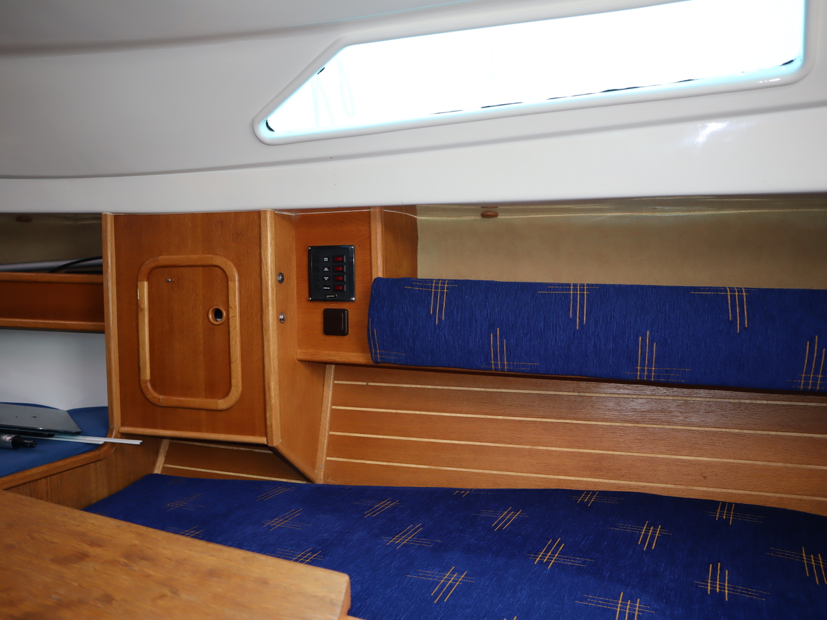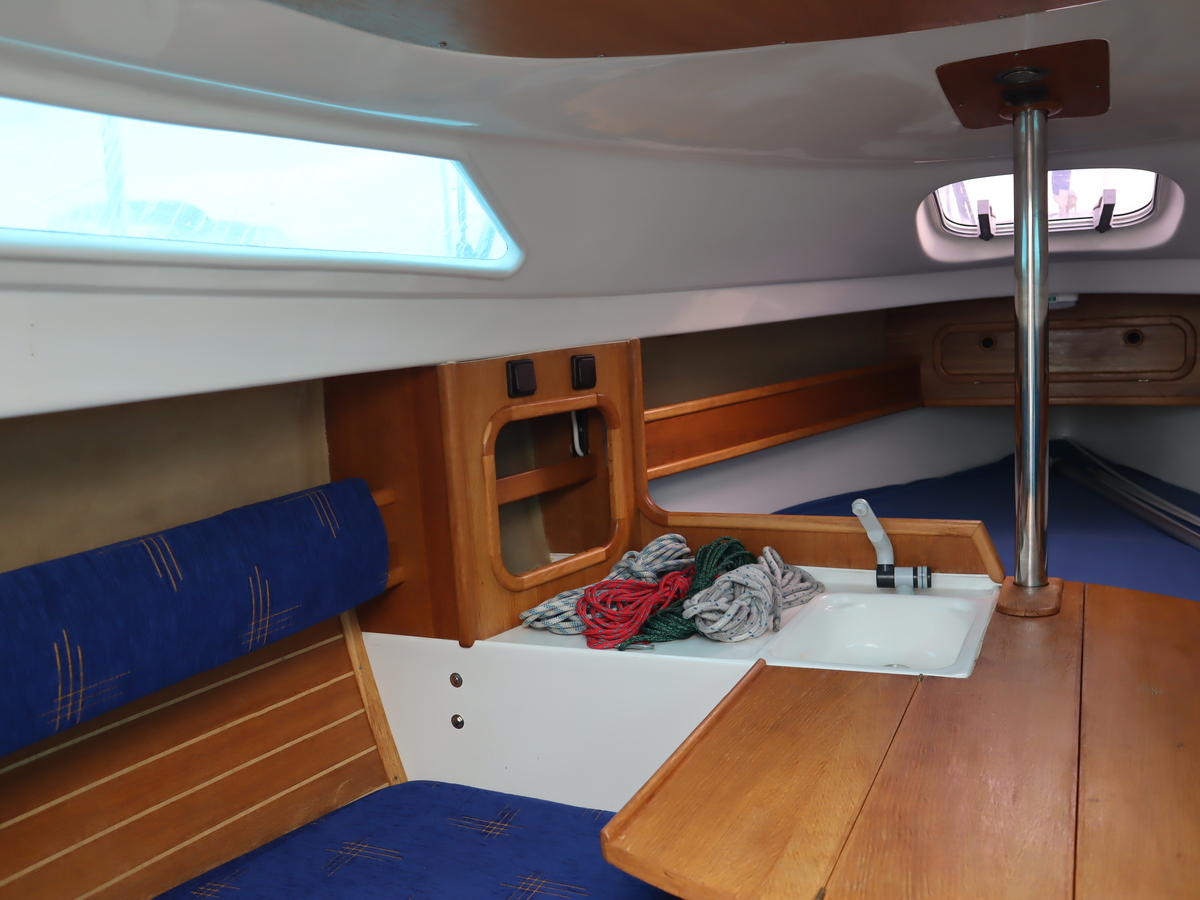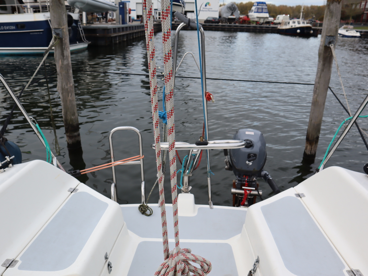 Deze sportieve tourzeiler biedt het beste van twee werelden comfortabele tochten en vlotte prestaties onder zeil. Dankzij de ophaalbare kiel (0,25-1,30) kun je moeiteloos droogvallen of ondiepe gebieden verkennen. Als singlehanded zeiler kun je alles vanuit de kuip bedienen. De boot is compleet uitgerust met alle benodigde zeilen rolfok, lazybag, spinnaker en gennaker. Daardoor klaar voor elk weertype en elke koers.