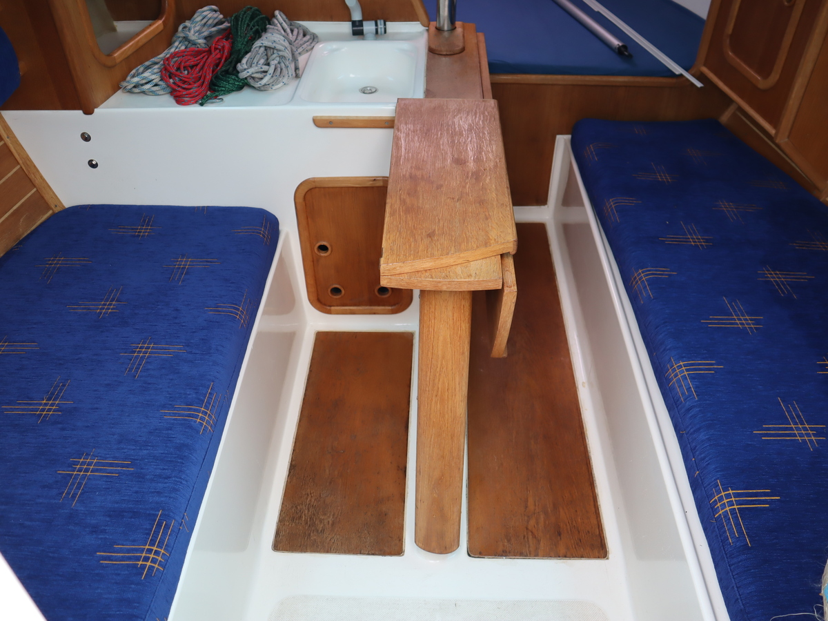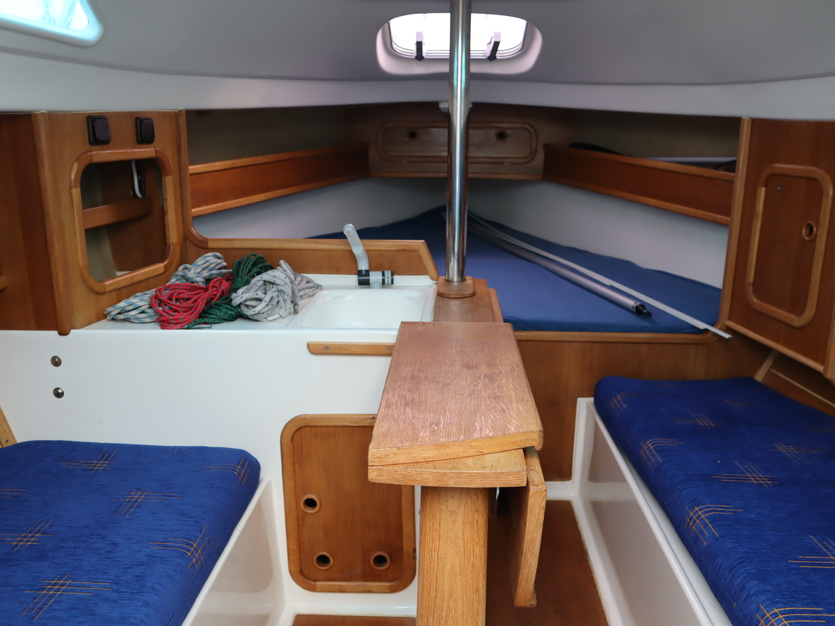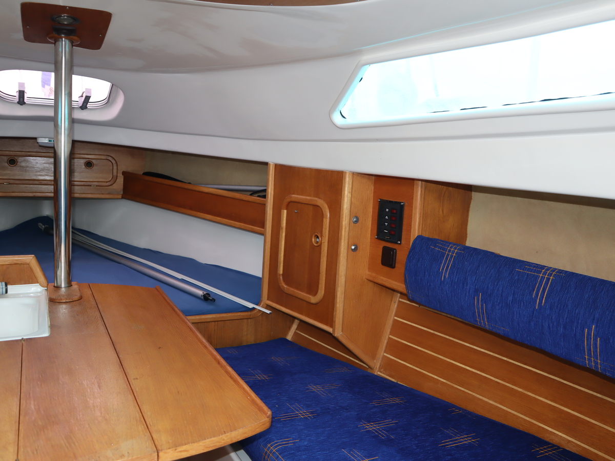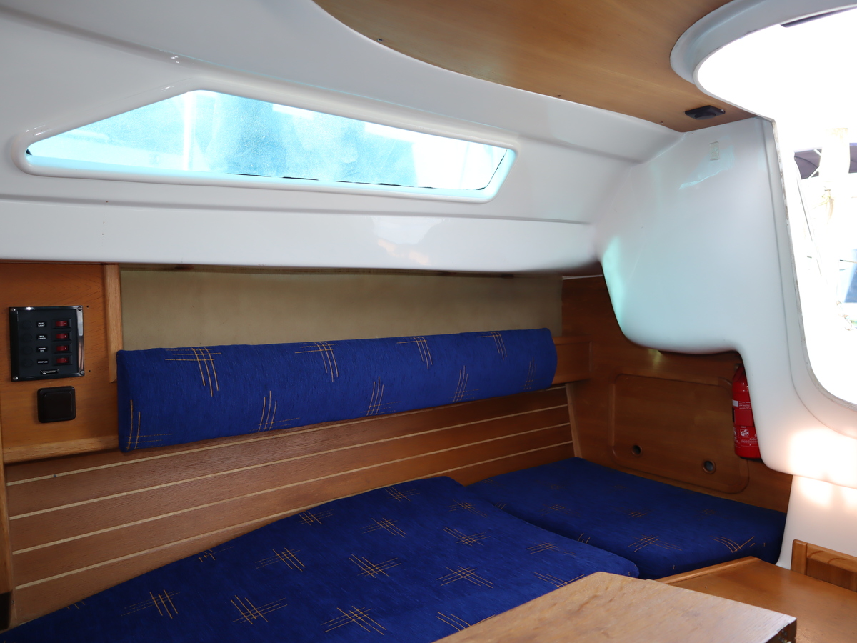 Deze sportieve tourzeiler biedt het beste van twee werelden comfortabele tochten en vlotte prestaties onder zeil. Dankzij de ophaalbare kiel (0,25-1,30) kun je moeiteloos droogvallen of ondiepe gebieden verkennen. Als singlehanded zeiler kun je alles vanuit de kuip bedienen. De boot is compleet uitgerust met alle benodigde zeilen rolfok, lazybag, spinnaker en gennaker. Daardoor klaar voor elk weertype en elke koers.