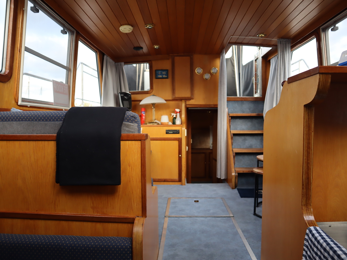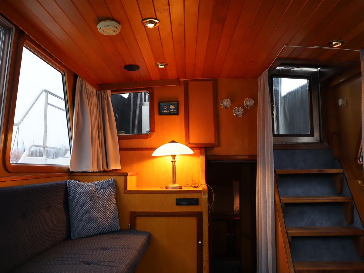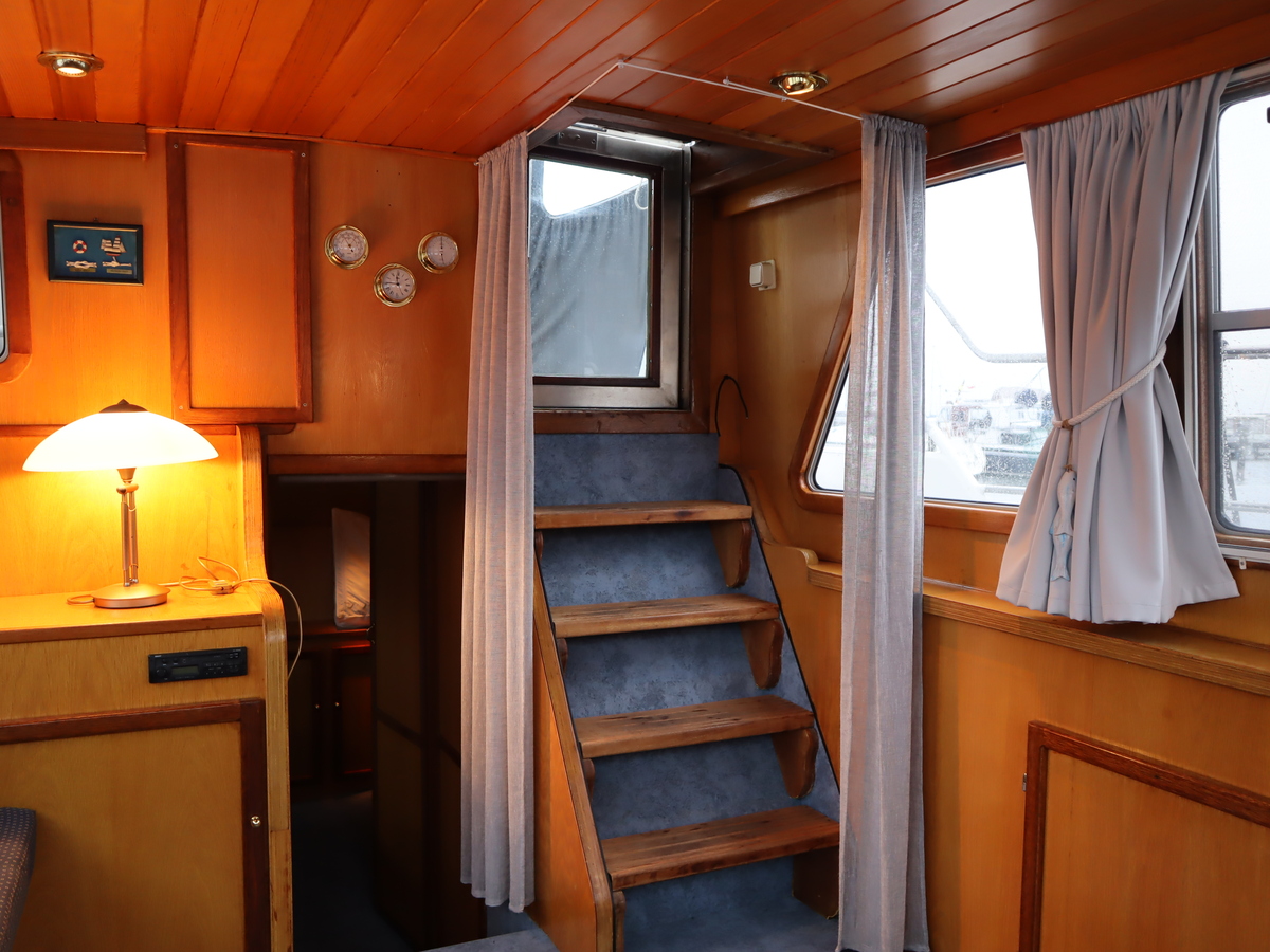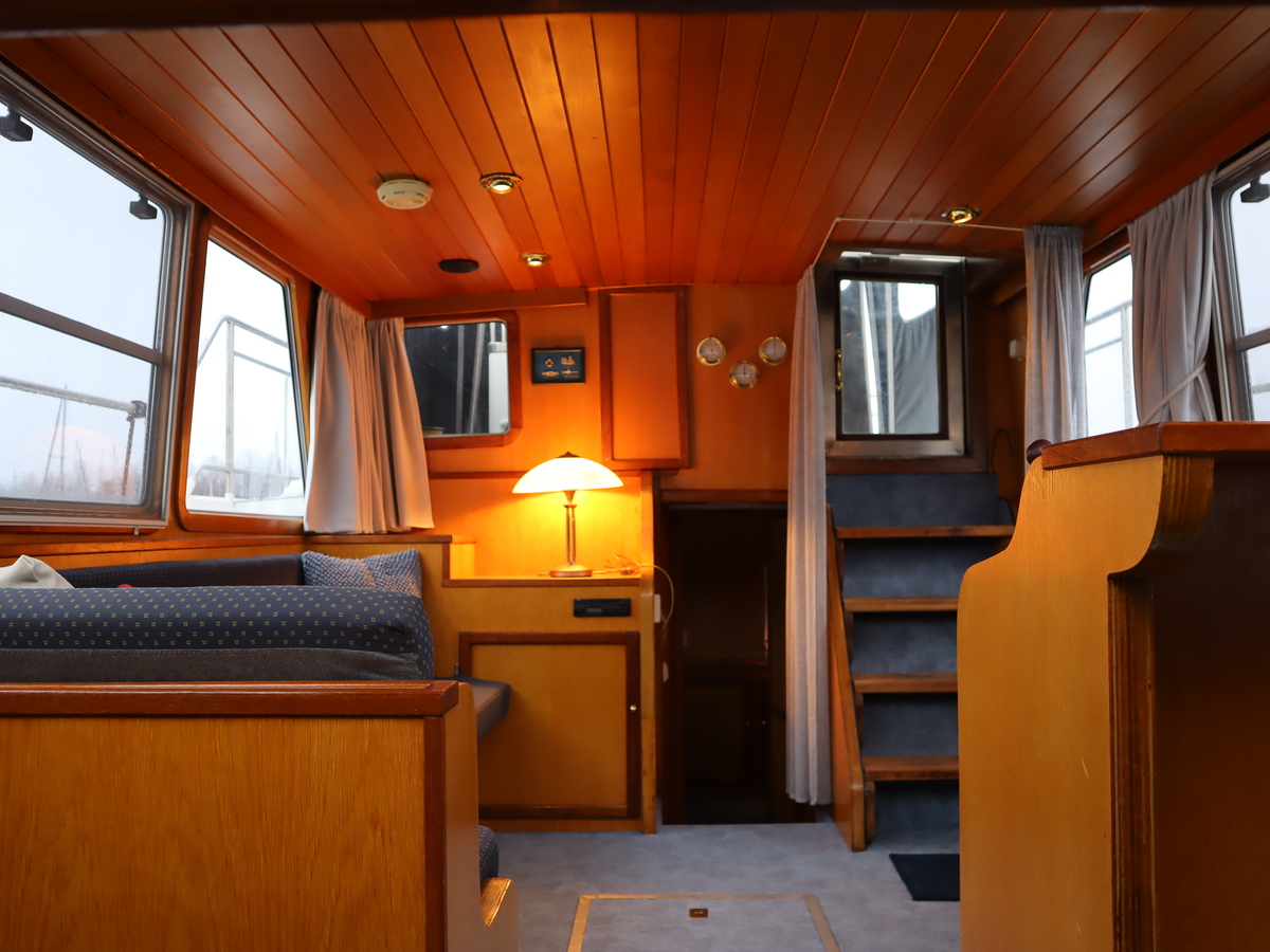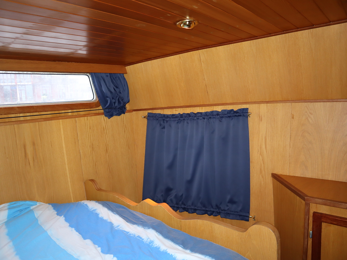 Deze robuust gebouwde stalen kruiser, is ideaal voor degene die zoekt naar een stoere én charmante boot. De boot is stevig gebouwd en dit is meteen merkbaar bij het aan boord stappen. De stahoogte is vrijwel overal 1,90m, met uitzondering van de achterkajuit die 1,80m betreft. Met deze boot kun je heerlijke weekenden weg. Maar ook het wonen op de boot is een optie. De boot is onder andere voorzien van 4 slaapplaatsen, keuken, salon, douche, toilet, verwarming, een mechanisch anker en bovendien een boegschroef.