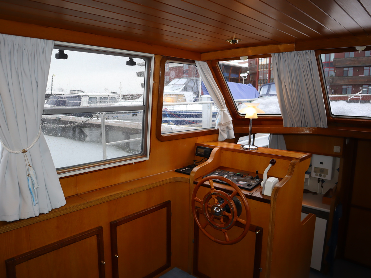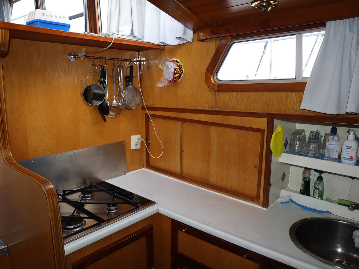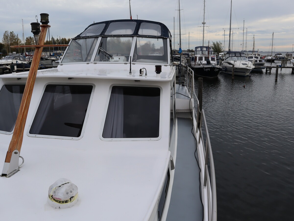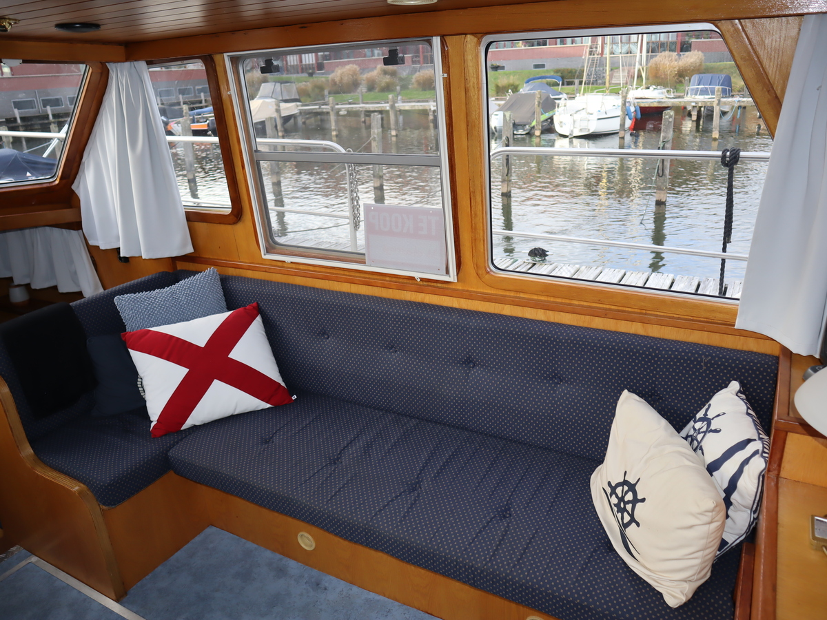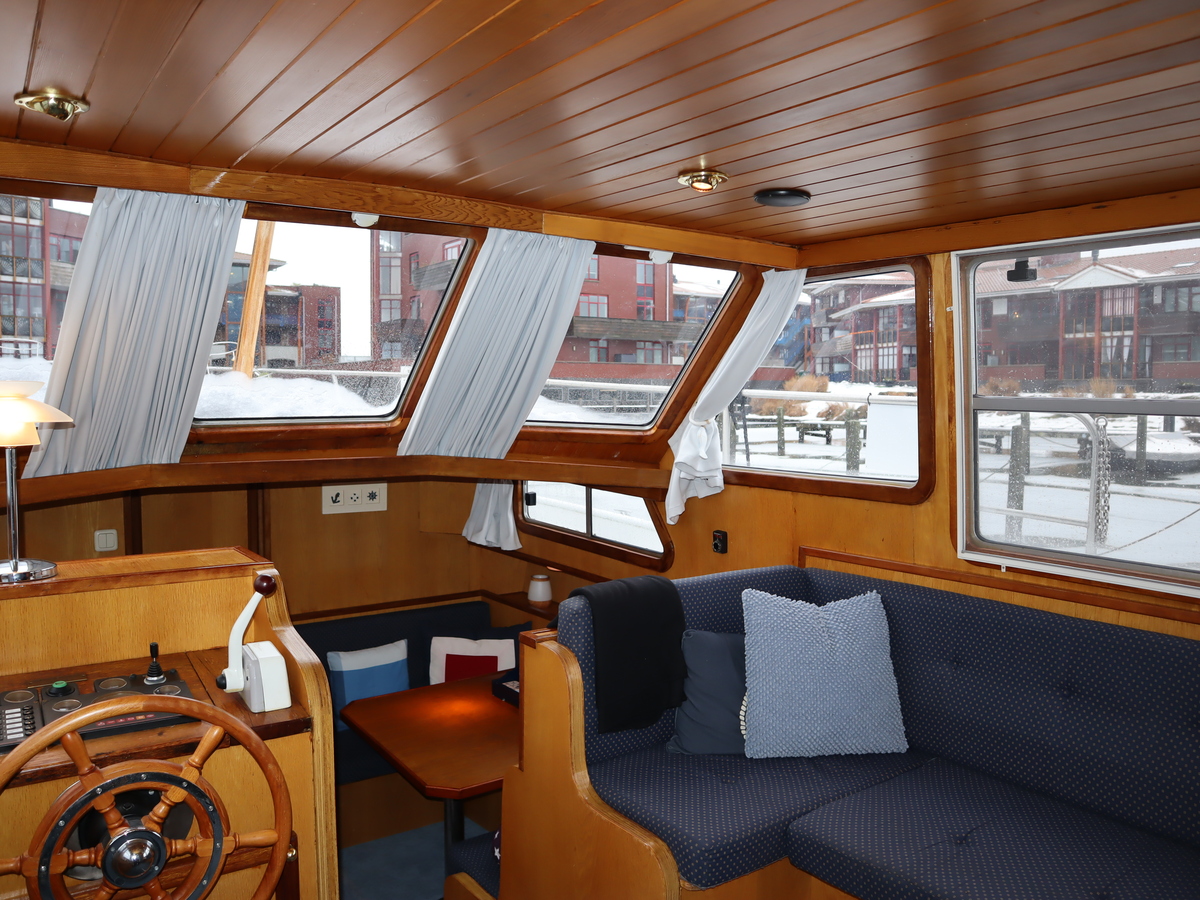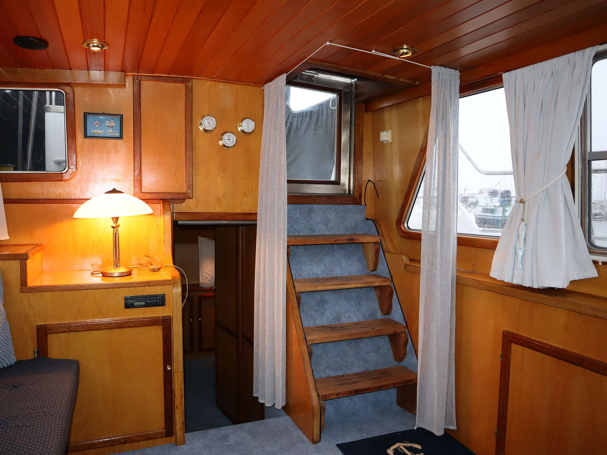 Deze robuust gebouwde stalen kruiser, is ideaal voor degene die zoekt naar een stoere én charmante boot. De boot is stevig gebouwd en dit is meteen merkbaar bij het aan boord stappen. De stahoogte is vrijwel overal 1,90m, met uitzondering van de achterkajuit die 1,80m betreft. Met deze boot kun je heerlijke weekenden weg. Maar ook het wonen op de boot is een optie. De boot is onder andere voorzien van 4 slaapplaatsen, keuken, salon, douche, toilet, verwarming, een mechanisch anker en bovendien een boegschroef.