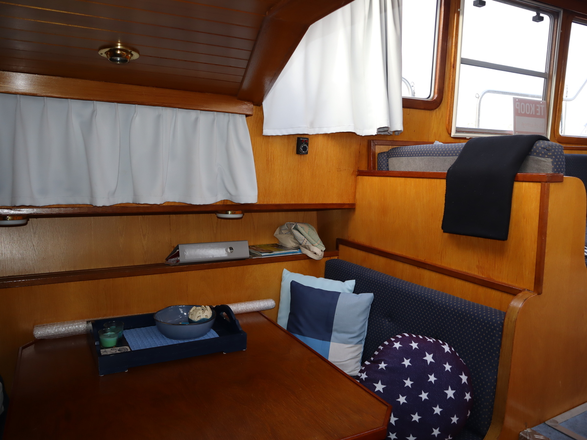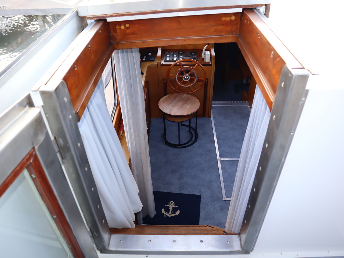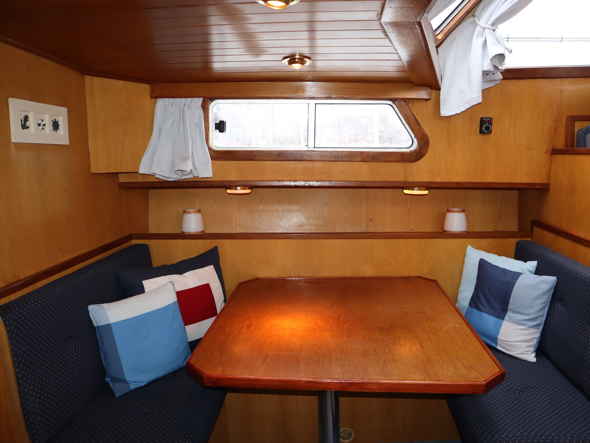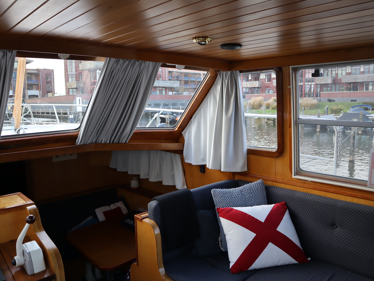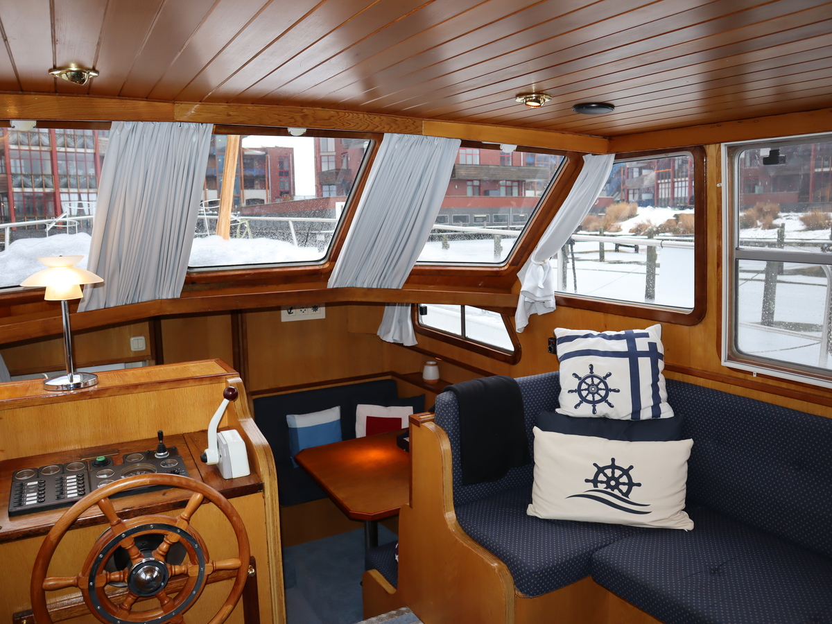 Deze robuust gebouwde stalen kruiser, is ideaal voor degene die zoekt naar een stoere én charmante boot. De boot is stevig gebouwd en dit is meteen merkbaar bij het aan boord stappen. De stahoogte is vrijwel overal 1,90m, met uitzondering van de achterkajuit die 1,80m betreft. Met deze boot kun je heerlijke weekenden weg. Maar ook het wonen op de boot is een optie. De boot is onder andere voorzien van 4 slaapplaatsen, keuken, salon, douche, toilet, verwarming, een mechanisch anker en bovendien een boegschroef.