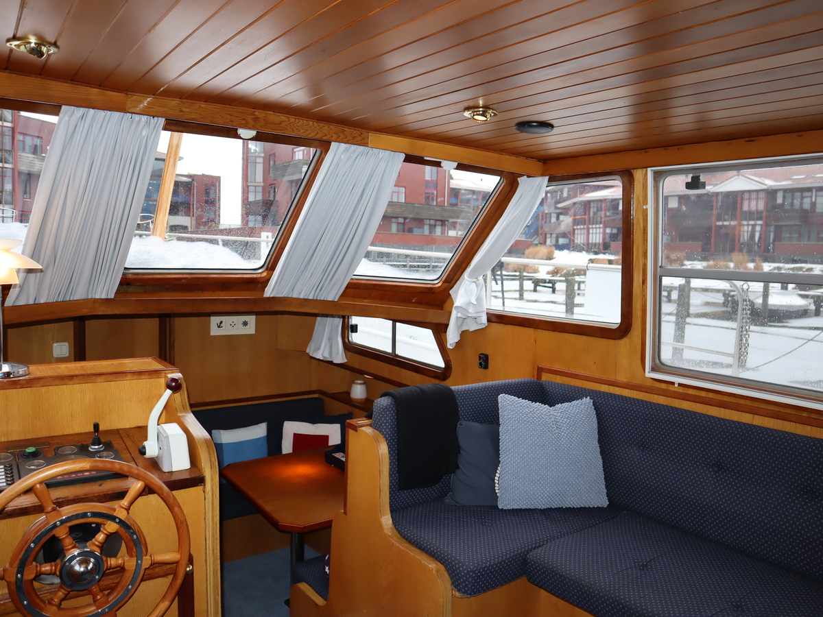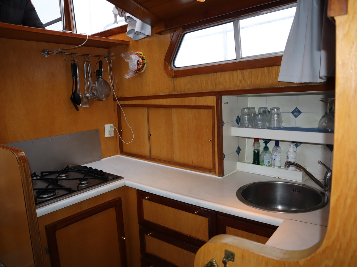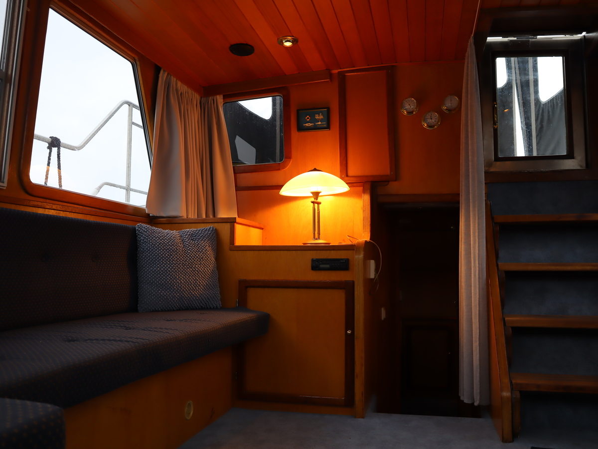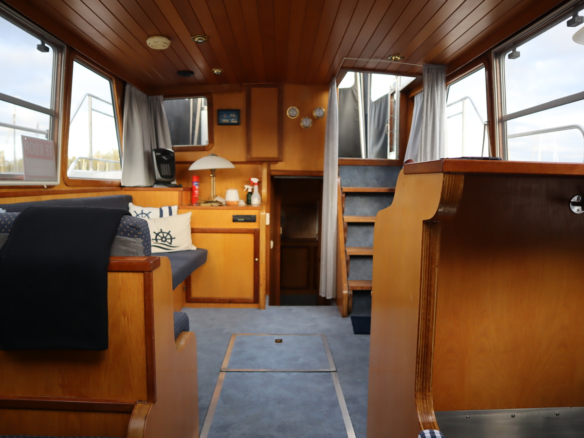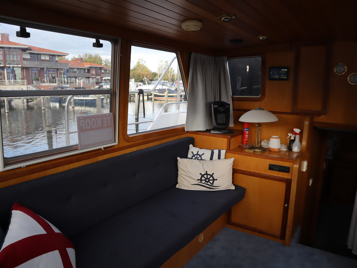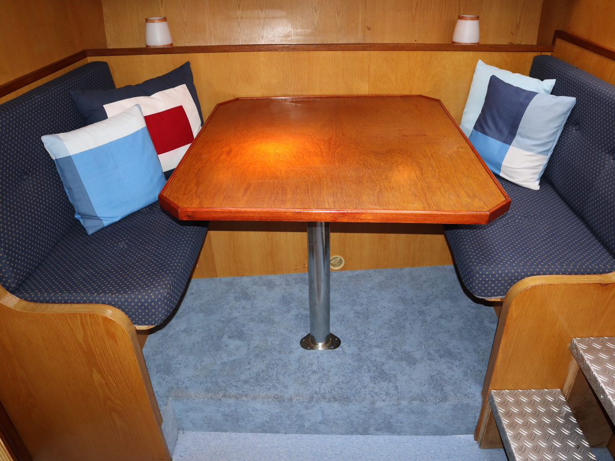Deze robuust gebouwde stalen kruiser, is ideaal voor degene die zoekt naar een stoere én charmante boot. De boot is stevig gebouwd en dit is meteen merkbaar bij het aan boord stappen. De stahoogte is vrijwel overal 1,90m, met uitzondering van de achterkajuit die 1,80m betreft. Met deze boot kun je heerlijke weekenden weg. Maar ook het wonen op de boot is een optie. De boot is onder andere voorzien van 4 slaapplaatsen, keuken, salon, douche, toilet, verwarming, een mechanisch anker en bovendien een boegschroef.