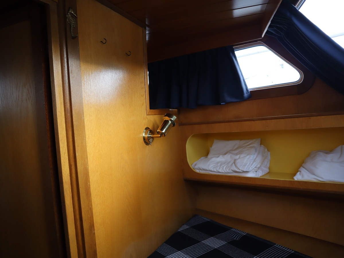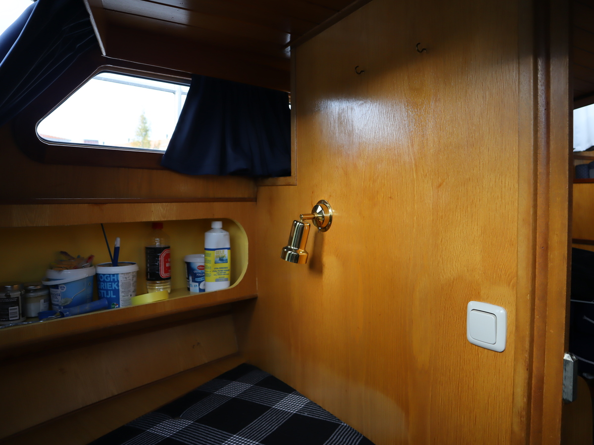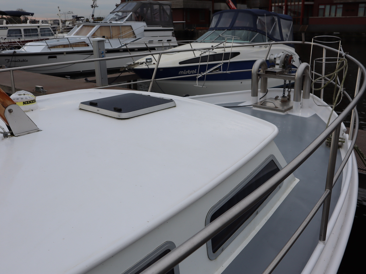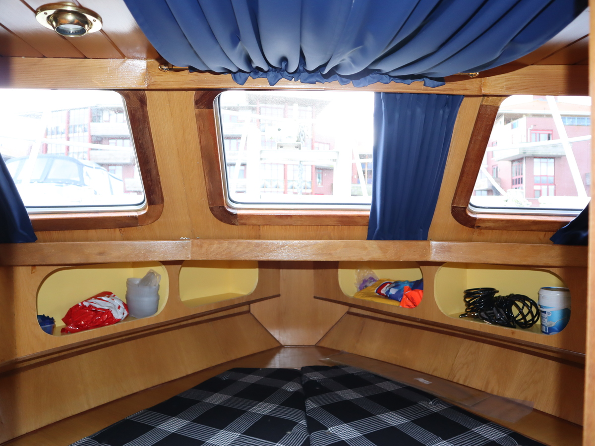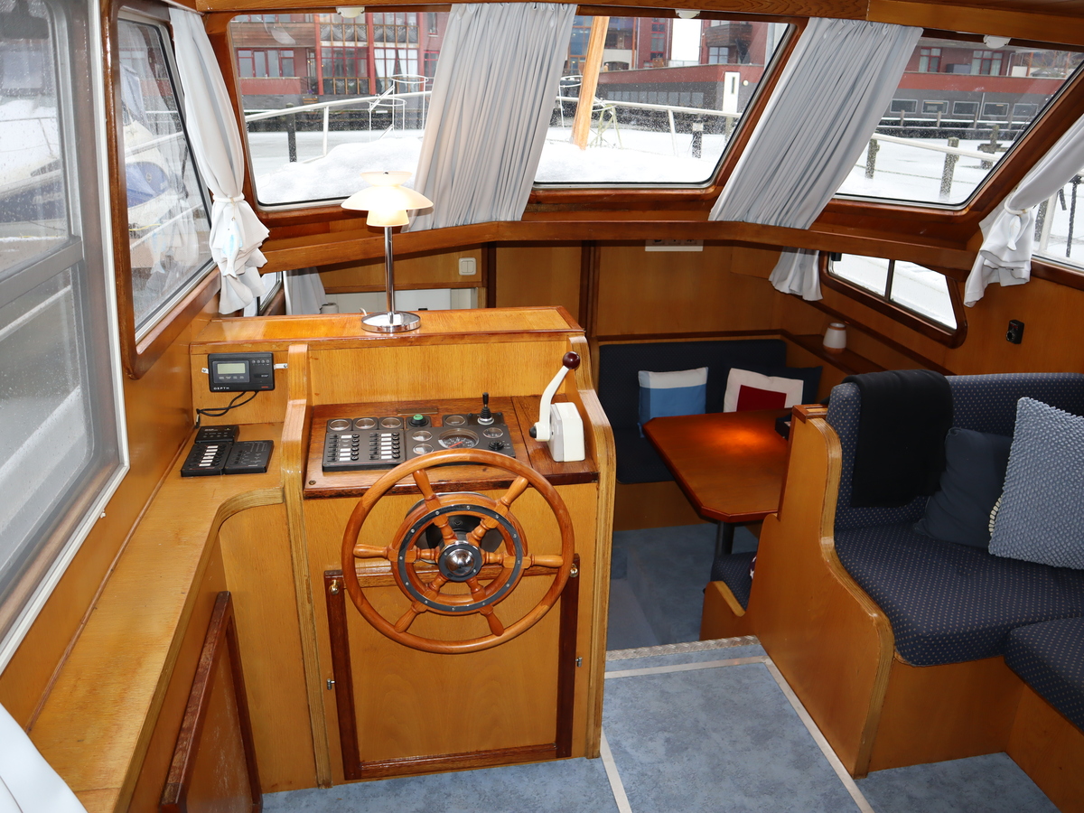 Deze robuust gebouwde stalen kruiser, is ideaal voor degene die zoekt naar een stoere én charmante boot. De boot is stevig gebouwd en dit is meteen merkbaar bij het aan boord stappen. De stahoogte is vrijwel overal 1,90m, met uitzondering van de achterkajuit die 1,80m betreft. Met deze boot kun je heerlijke weekenden weg. Maar ook het wonen op de boot is een optie. De boot is onder andere voorzien van 4 slaapplaatsen, keuken, salon, douche, toilet, verwarming, een mechanisch anker en bovendien een boegschroef.