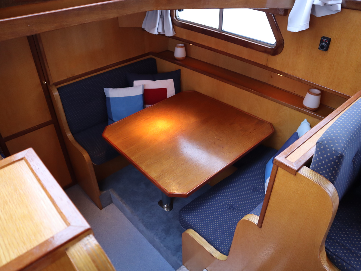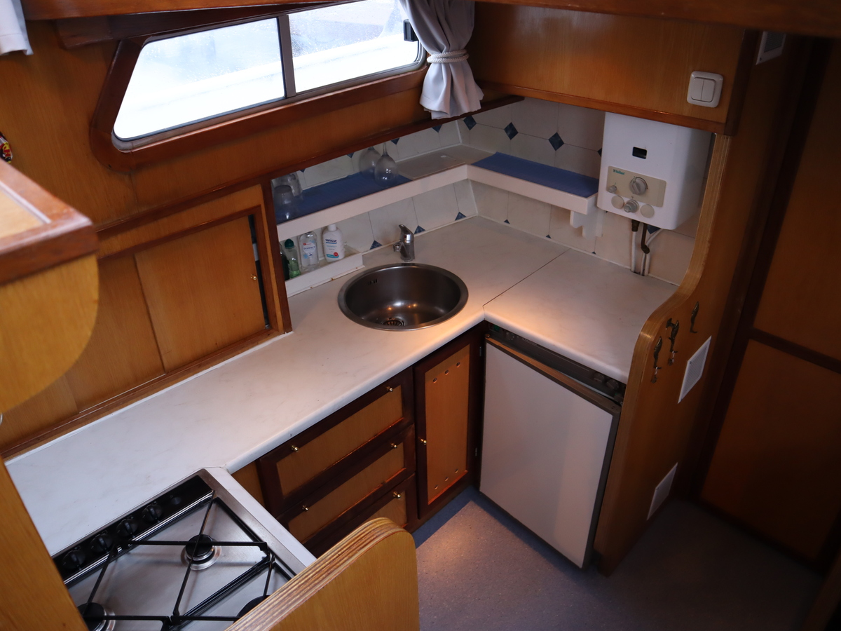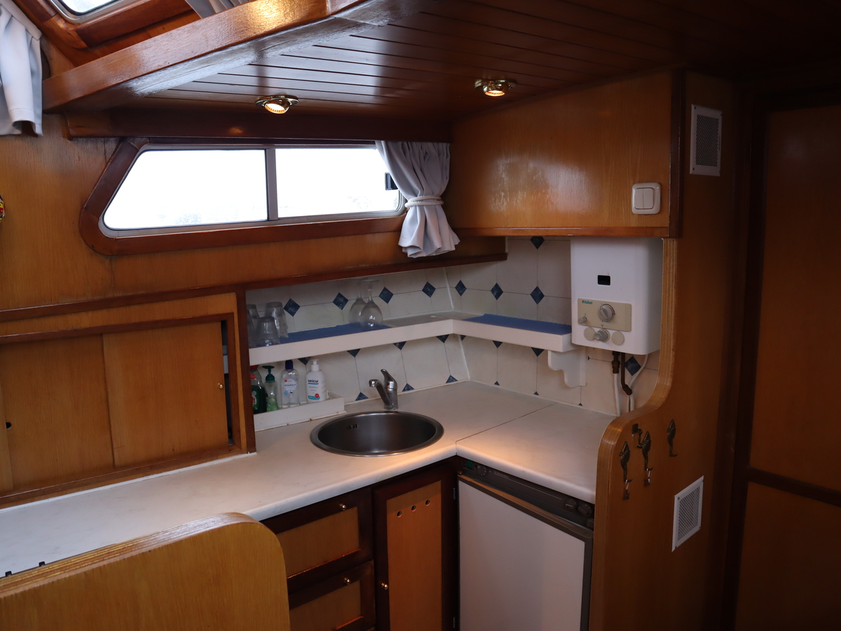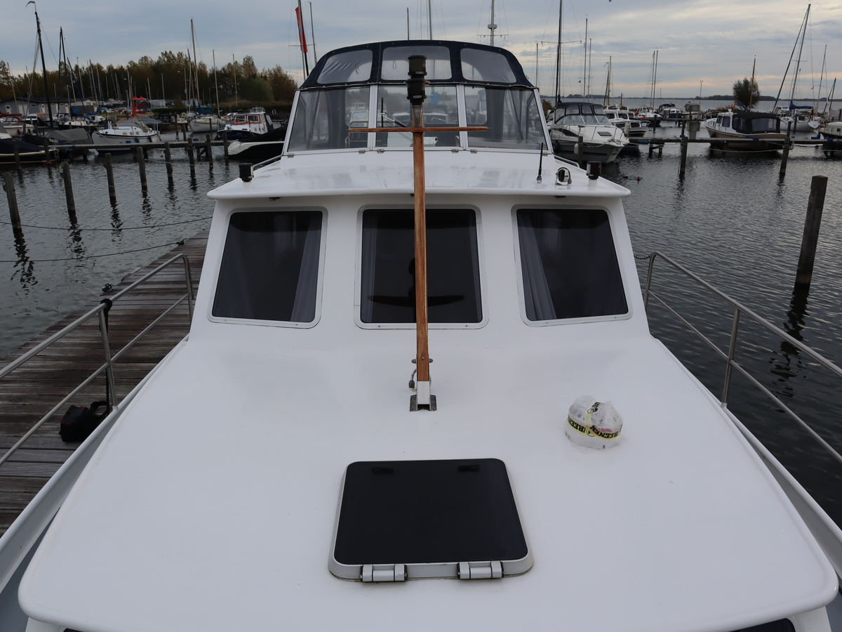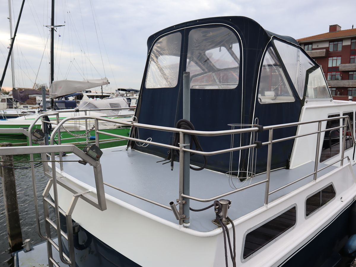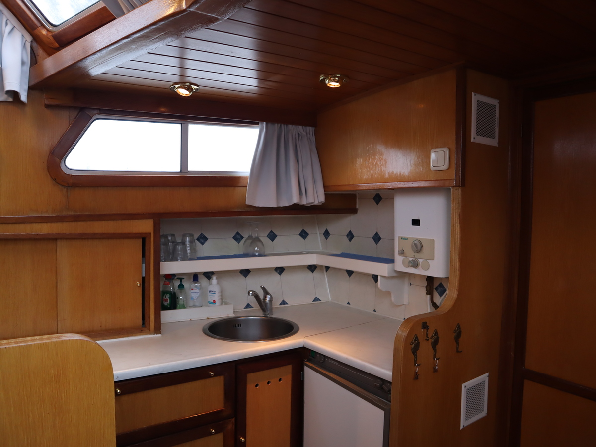 Deze robuust gebouwde stalen kruiser, is ideaal voor degene die zoekt naar een stoere én charmante boot. De boot is stevig gebouwd en dit is meteen merkbaar bij het aan boord stappen. De stahoogte is vrijwel overal 1,90m, met uitzondering van de achterkajuit die 1,80m betreft. Met deze boot kun je heerlijke weekenden weg. Maar ook het wonen op de boot is een optie. De boot is onder andere voorzien van 4 slaapplaatsen, keuken, salon, douche, toilet, verwarming, een mechanisch anker en bovendien een boegschroef.