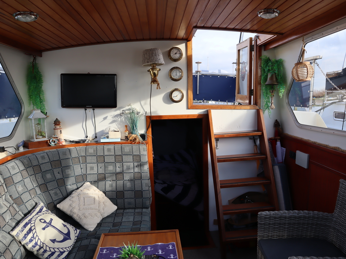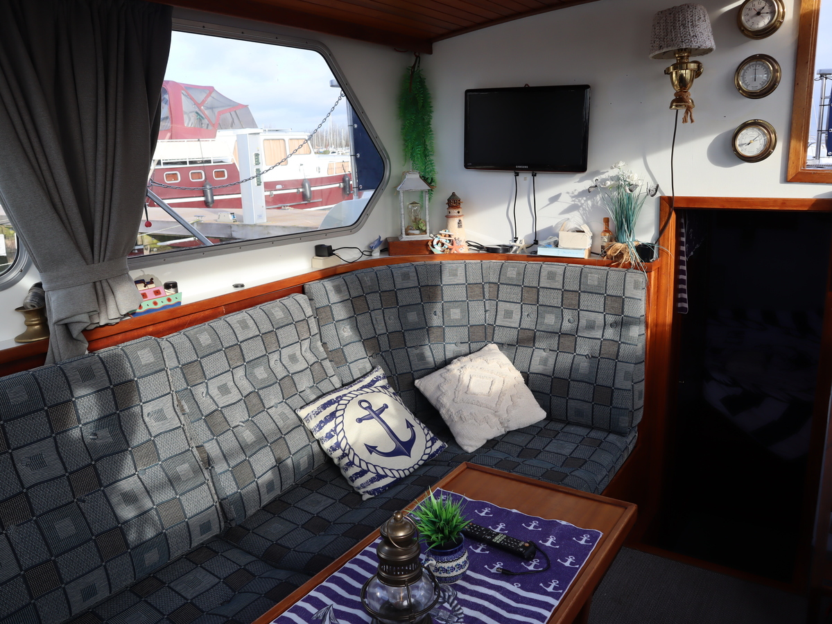 De indeling is praktisch en comfortabel en de boot is onder andere voorzien van 4 slaapplaatsen, een keuken, een gezellige salon, douche, toilet en verwarming. De betrouwbare DAF 575 dieselmotor staat bekend om zijn degelijkheid en eenvoud en zorgt voor ontspannen en zorgeloze vaartochten. Daarnaast beschikt de boot over een mechanisch anker en een boegschroef, wat het manoeuvreren eenvoudig maakt.