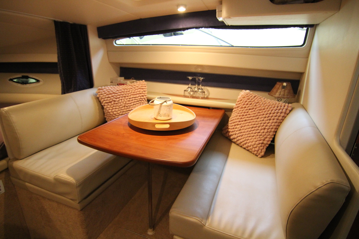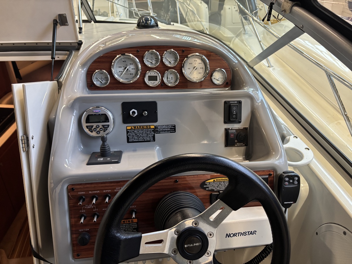 De Bayliner 285 staat bekend om zijn slimme indeling en verrassend veel leefruimte. De ruime kuip met comfortabele zithoeken nodigt uit tot gezelligheid aan boord, terwijl de overzichtelijke stuurstand zorgt voor een ontspannen en veilige vaart. Beneden vindt u een sfeervolle cabine met complete kombuis, ruime dinette en twee volwaardige slaapruimtes. Perfect voor weekendjes weg of langere vakanties op het water.